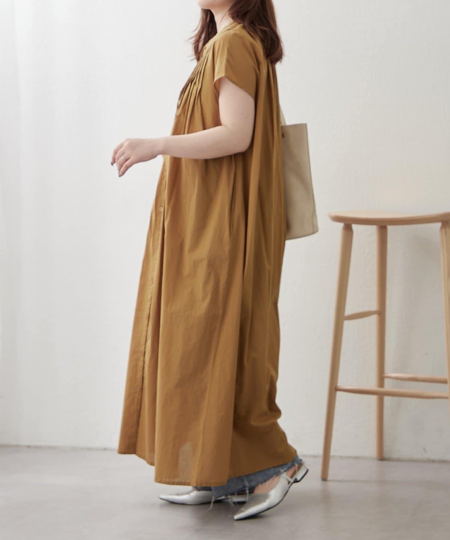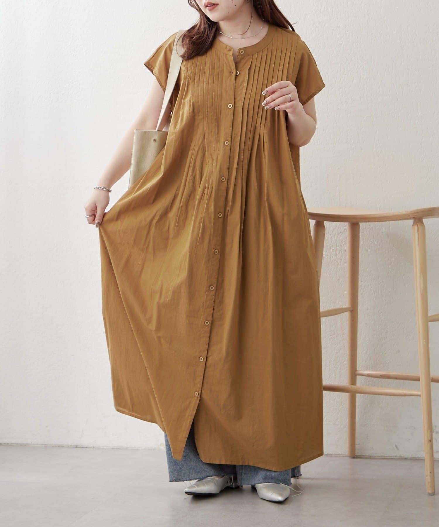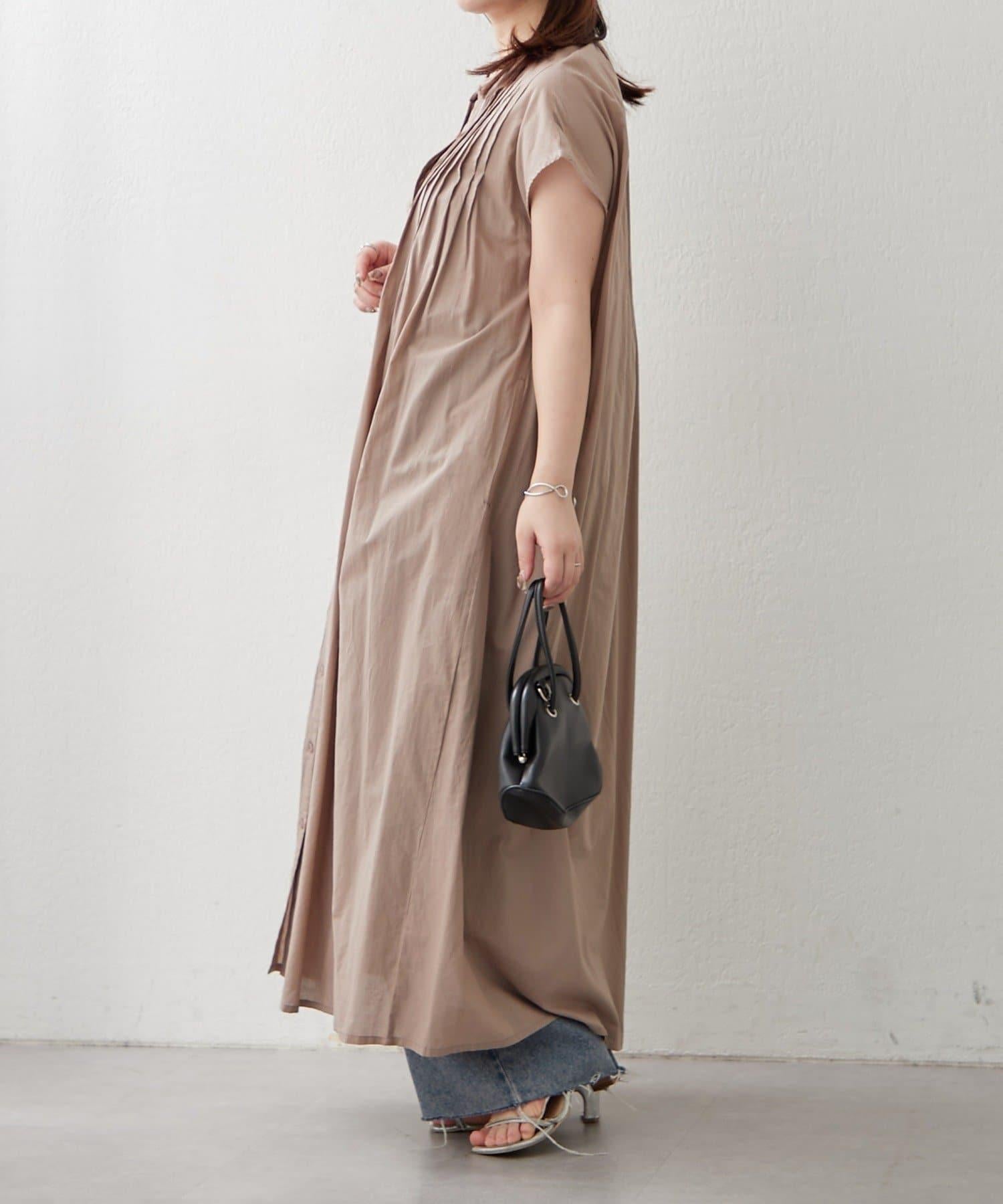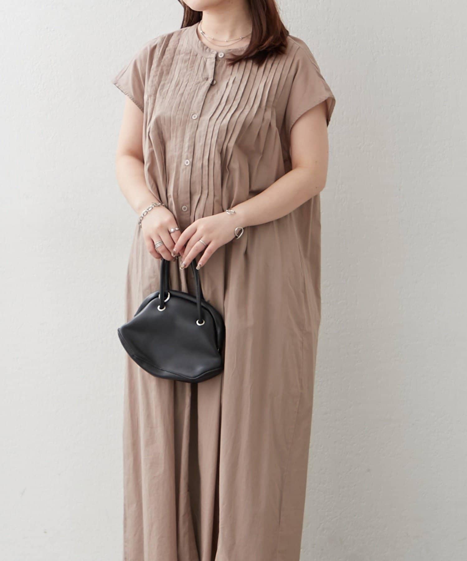 這款無袖連衣裙的前襟採用優雅的細褶襉設計。