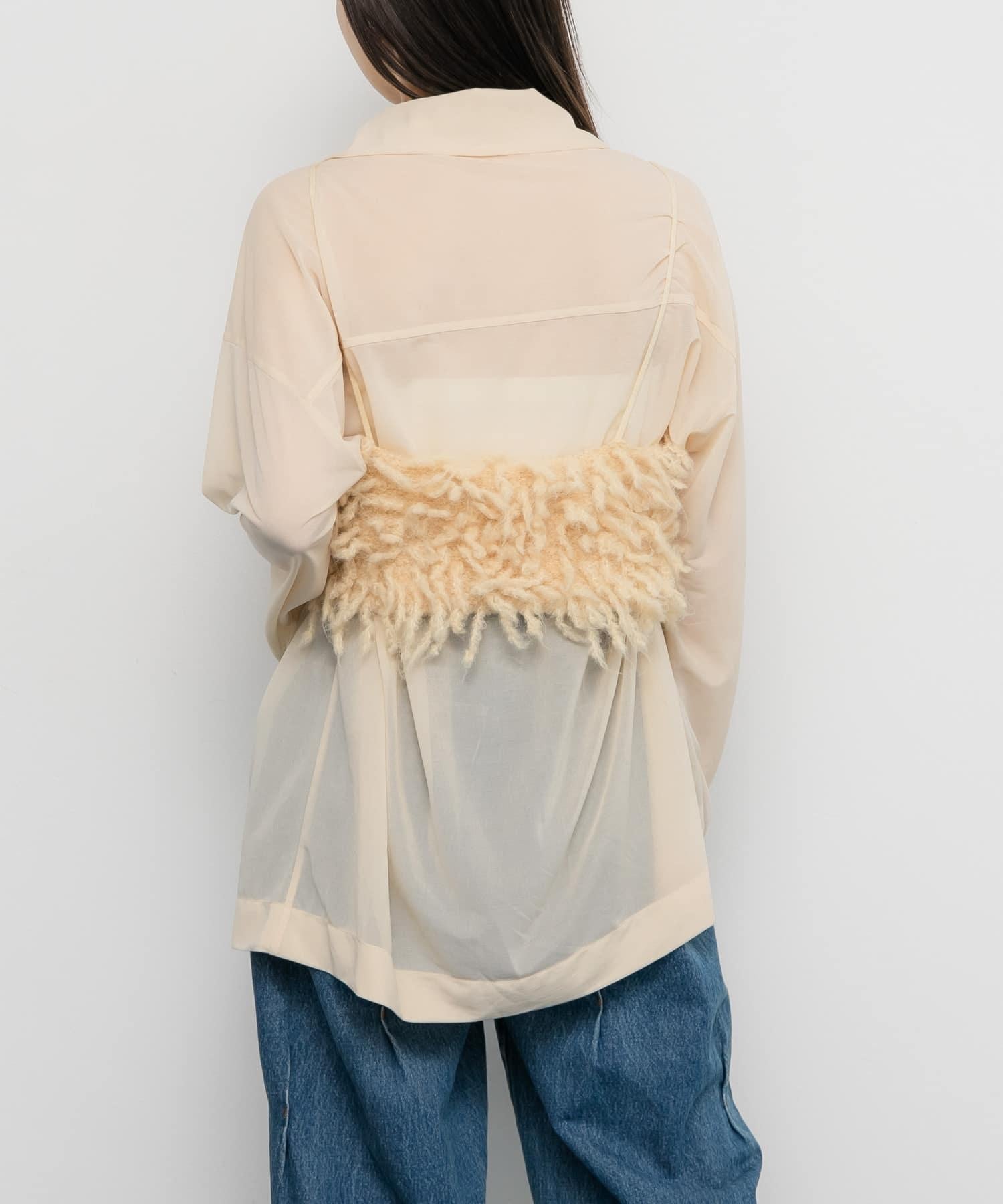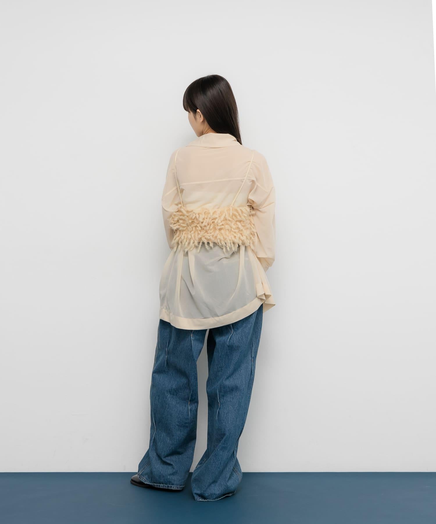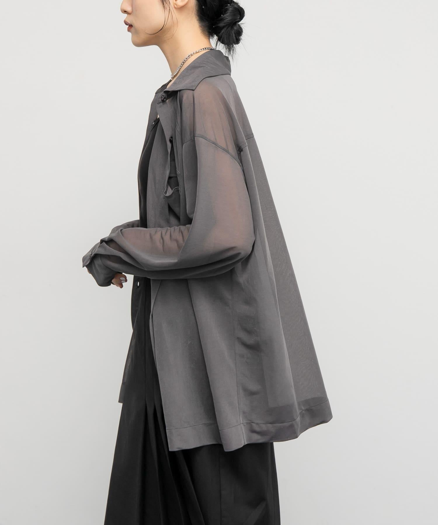 這款襯衫由透視棉製成,質地緊實成熟。獨特的透視剪裁和縫製垂感是其一大亮點。因為薄,所以很容易搭配在馬甲或 T 恤裡面,因為輕便小巧,所以可以放在包裡,還能起到防曬和防空調的作用。它是必備單品,具有出色的耐磨性。