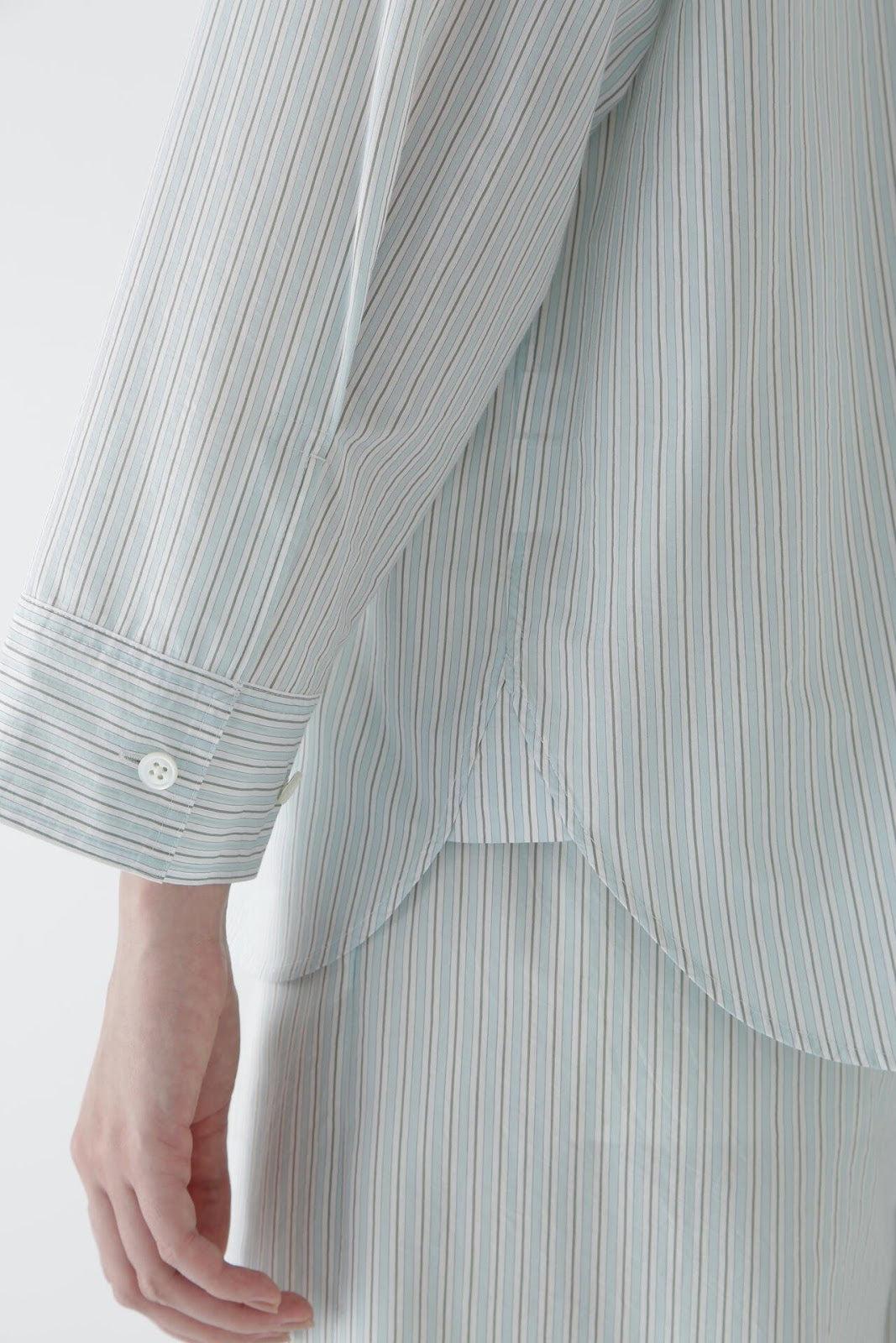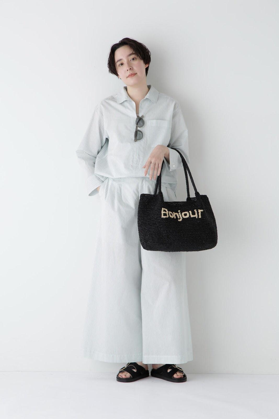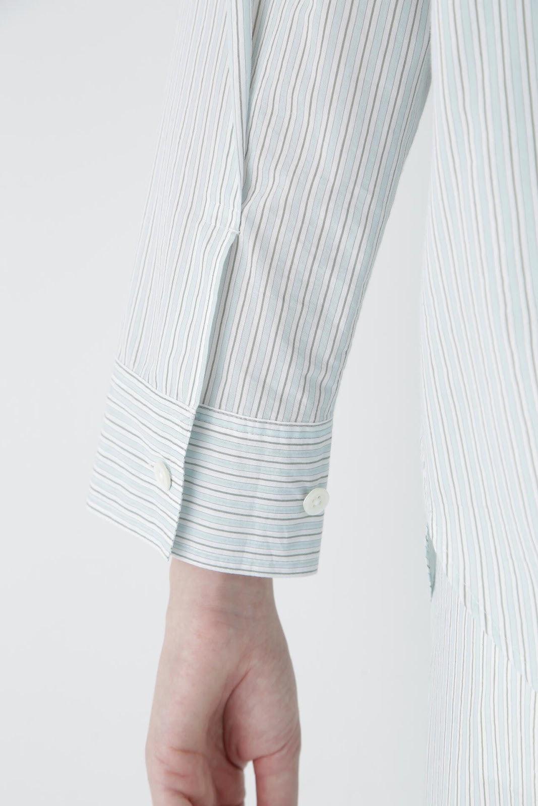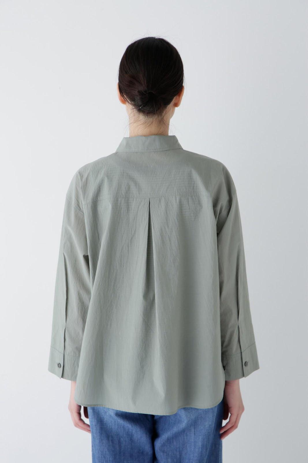 清爽寬鬆的船長襯衫 [設計要點] 這款套頭衫採用了類似船長襯衫的方形剪裁。袖口可通過袖釦調節大小。面料為棉尼龍面料,手感輕盈飄逸,具有襯衫的彈性。有三種顏色可供選擇:藍色條紋、薄荷綠素色和卡其色素色。建議搭配】建議搭配牛仔褲等休閒下裝。也可與同材質的長褲搭配作為套裝穿著。