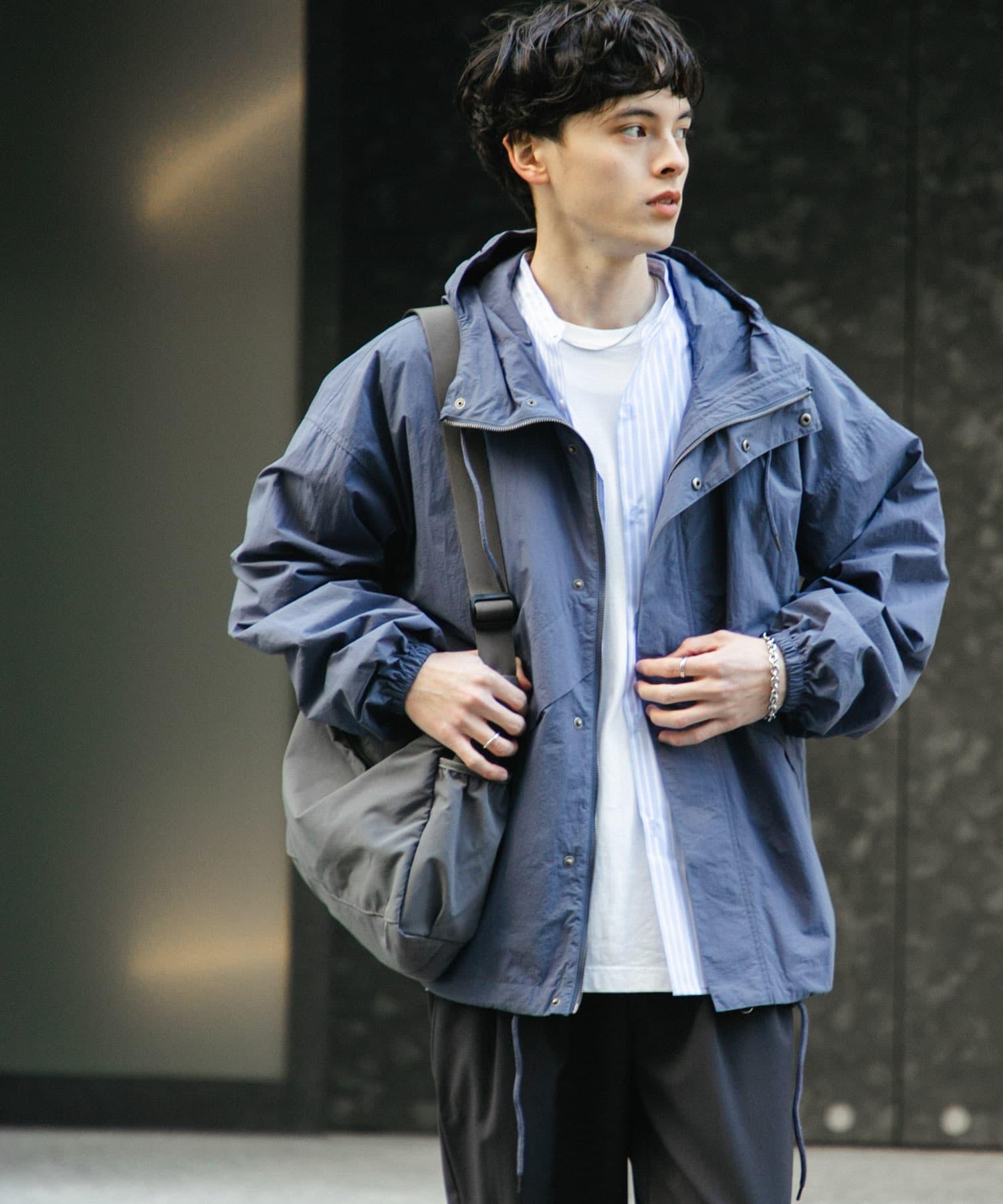 由於它以戶外服裝為基礎,因此不僅可以搭配休閒下裝和內搭,還推薦與乾淨的休閒褲和皮鞋搭配,打造簡潔的混搭風格。