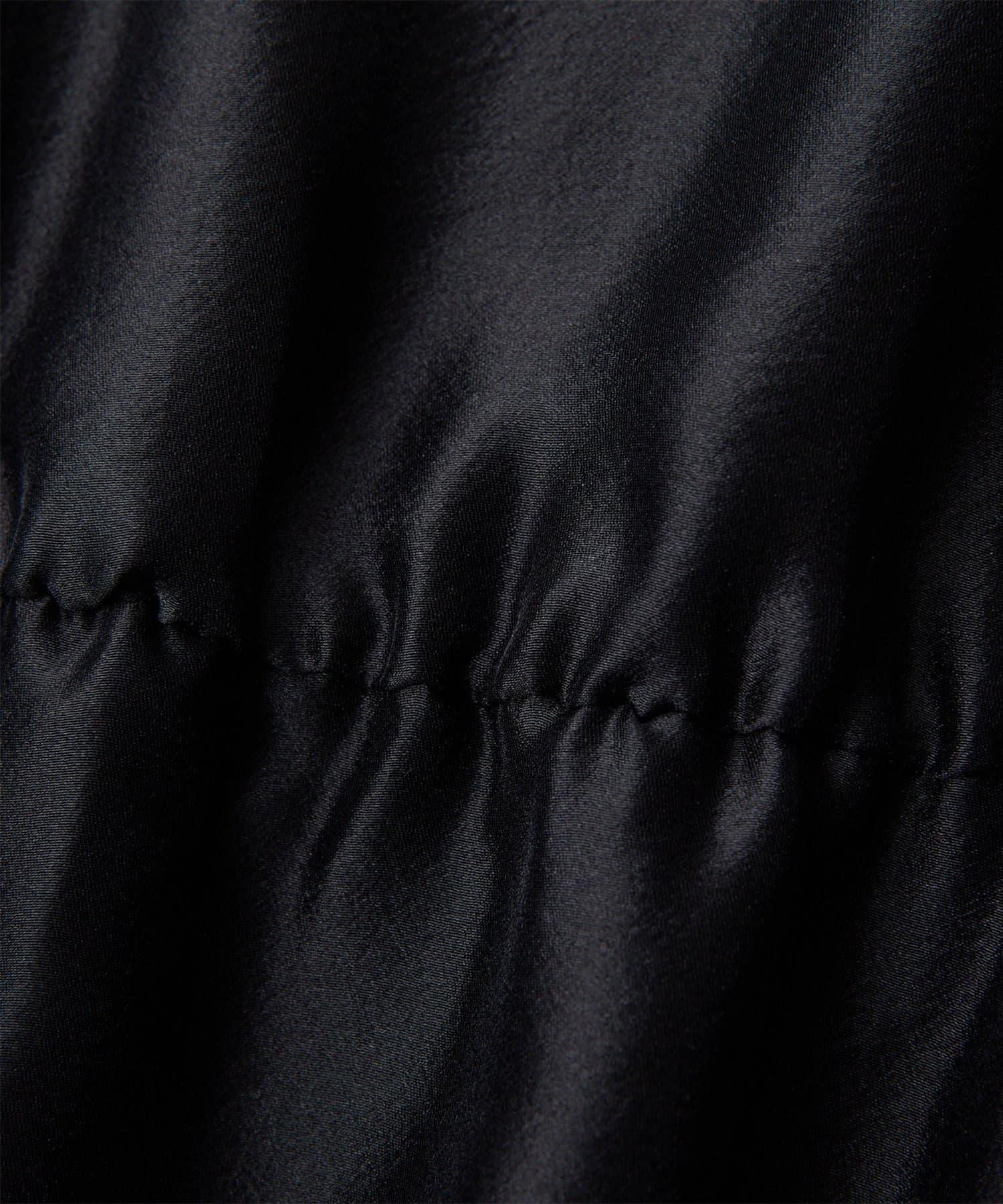 該面料具有類似真絲歐根紗的張力和光澤,外觀和手感獨特,給人一種不張揚的氛圍。