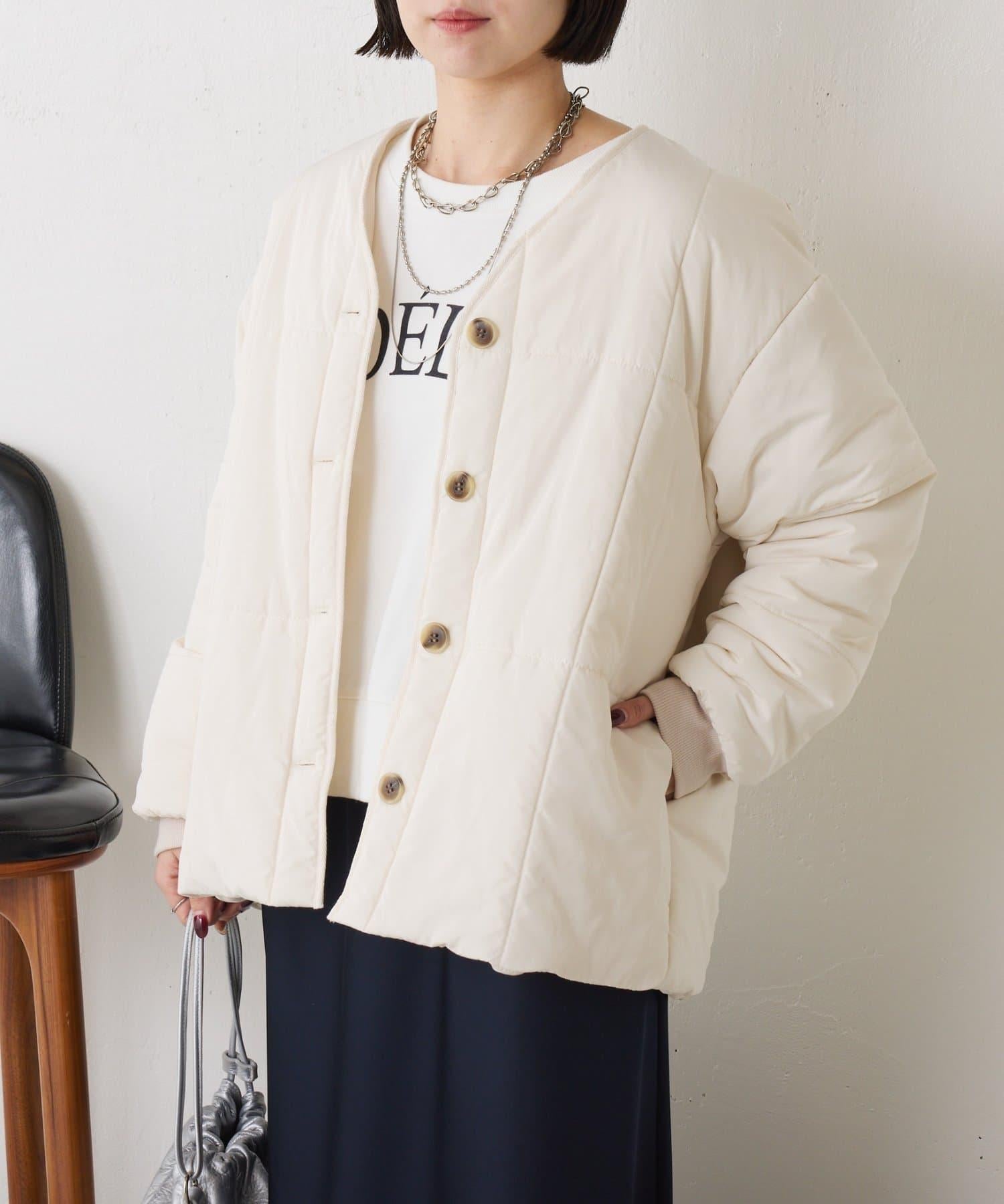 無領設計的夾克,給人以舒適感。給人簡約而精緻印象的夾克,適合各種風格。