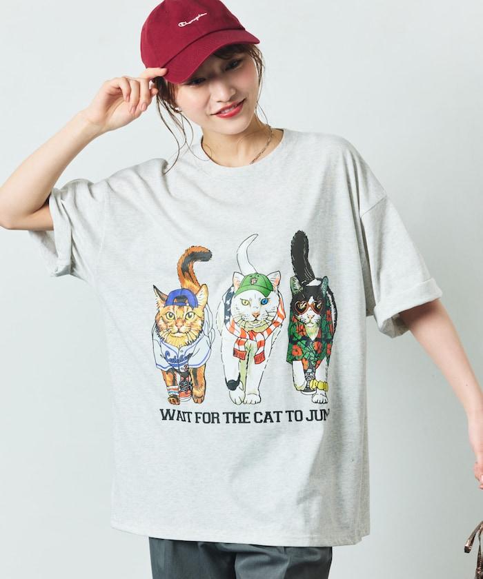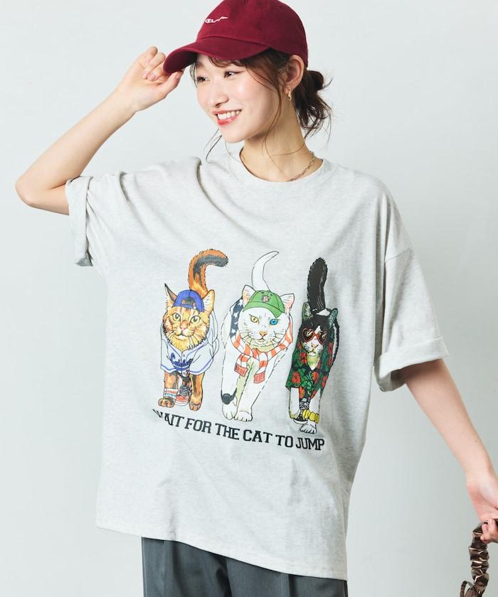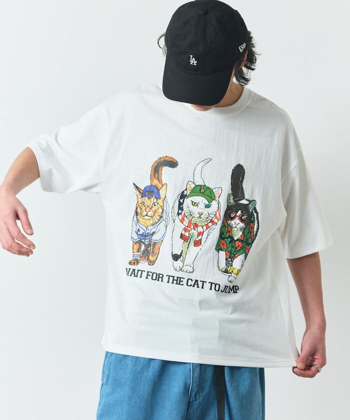 輕鬆休閒合身雙面印花圓領T恤 / 三隻貓