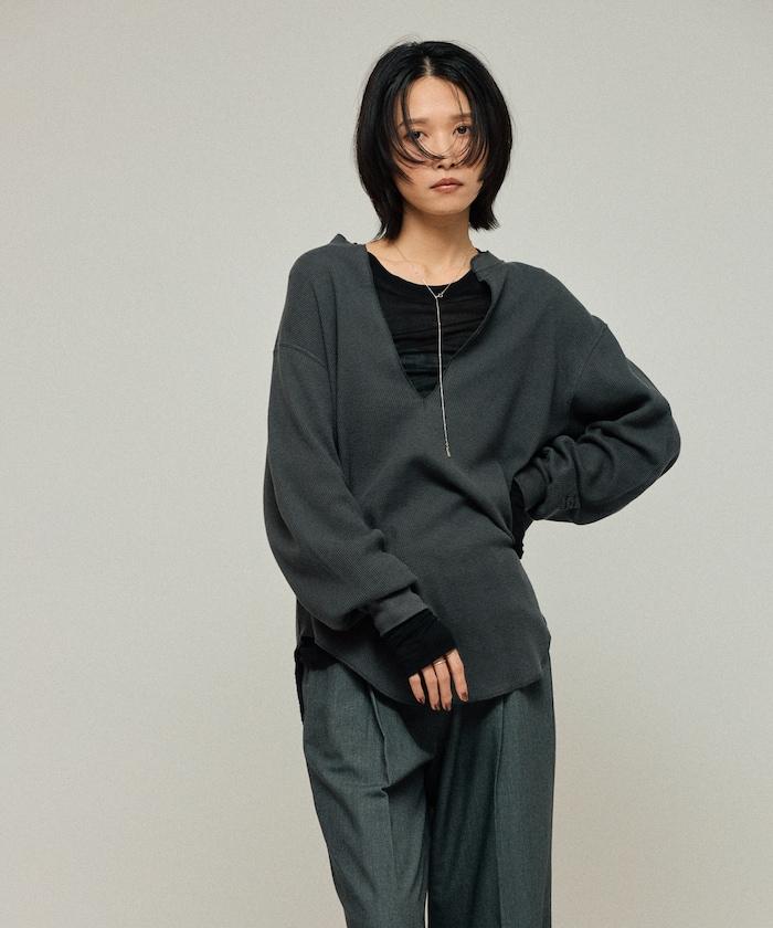 長度隱藏了腰部,側面有開衩,前後長短不一,無論是下襬內收還是腰部外露,都能穿出很好的平衡感。
