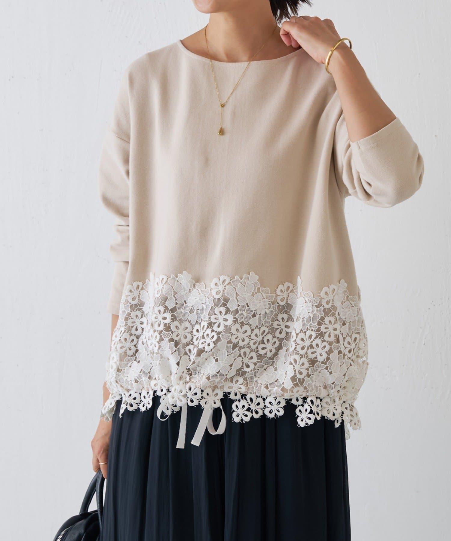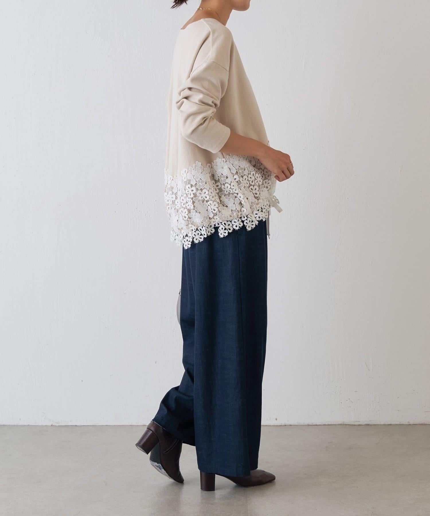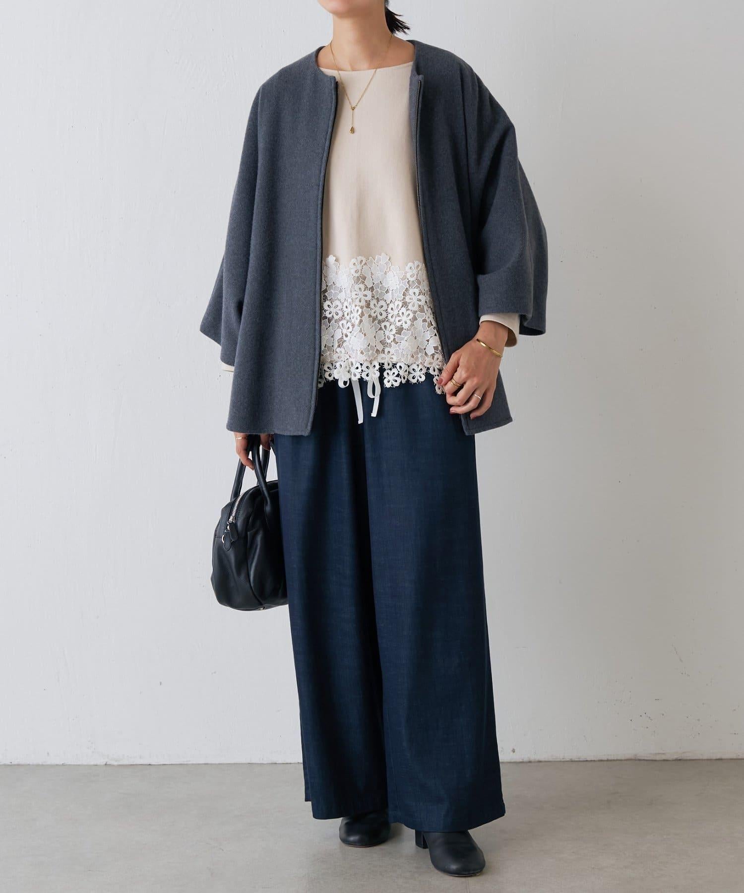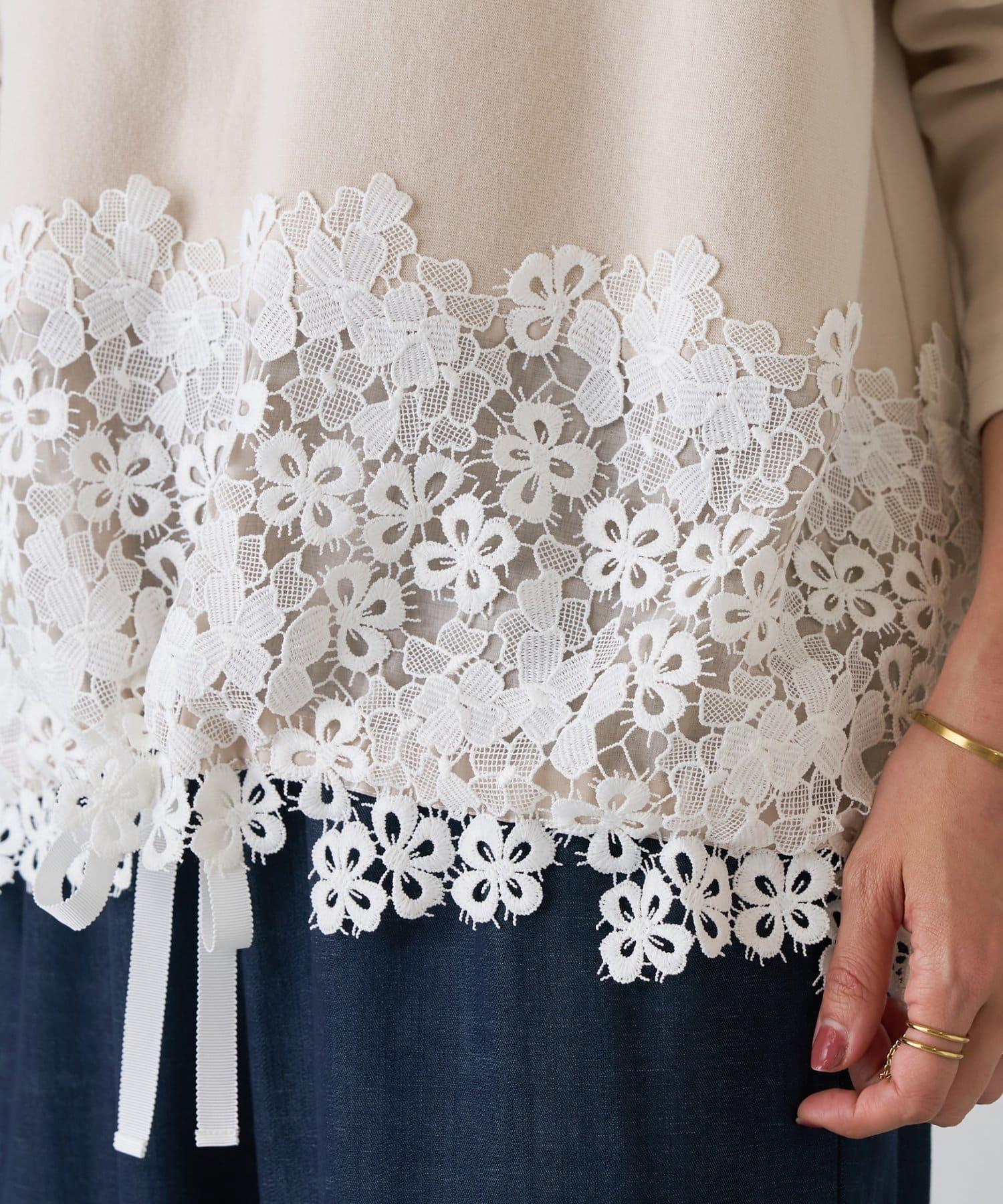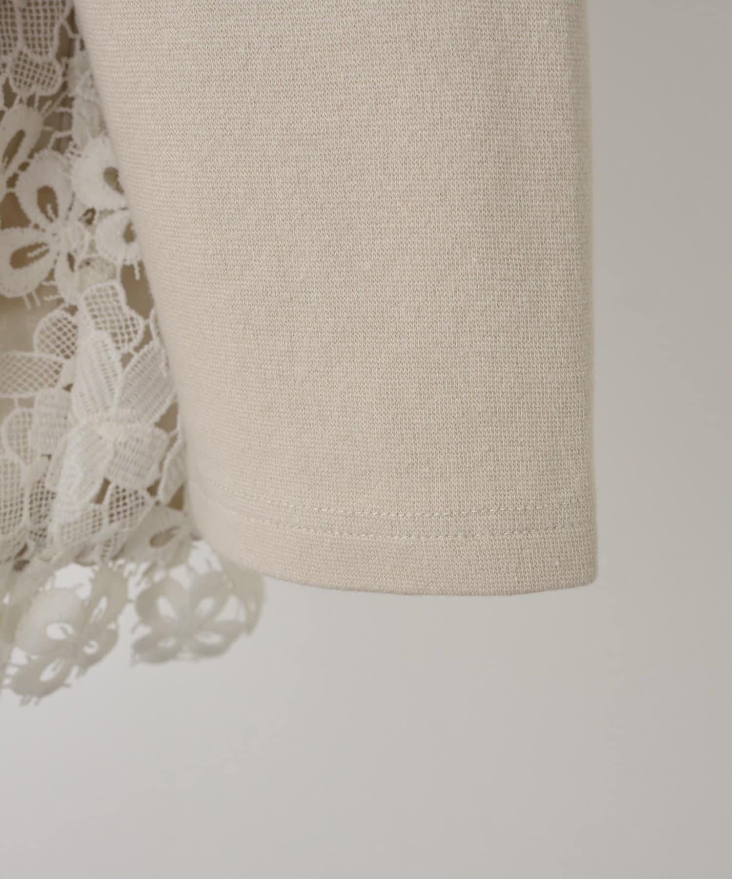 衣身部分採用剪裁縫製的面料,優雅的蕾絲與面料的休閒感巧妙結合,打造出👍的單品。