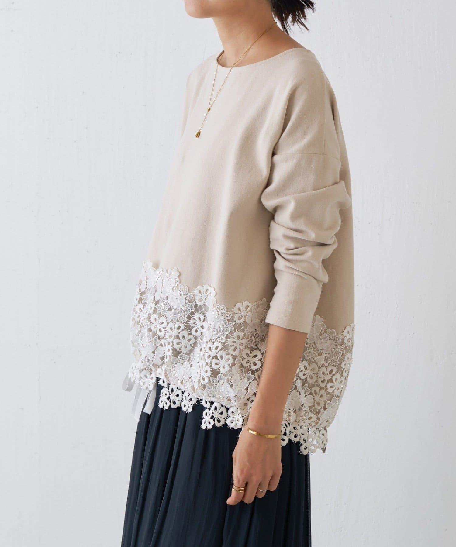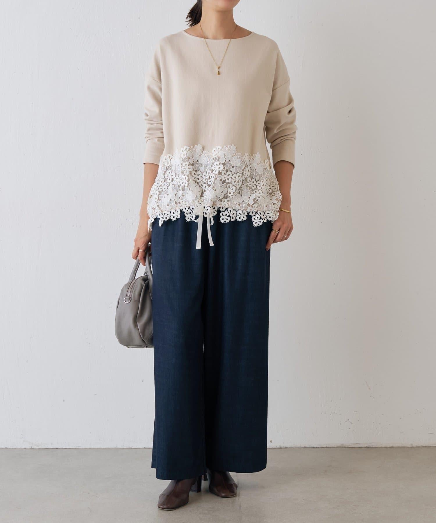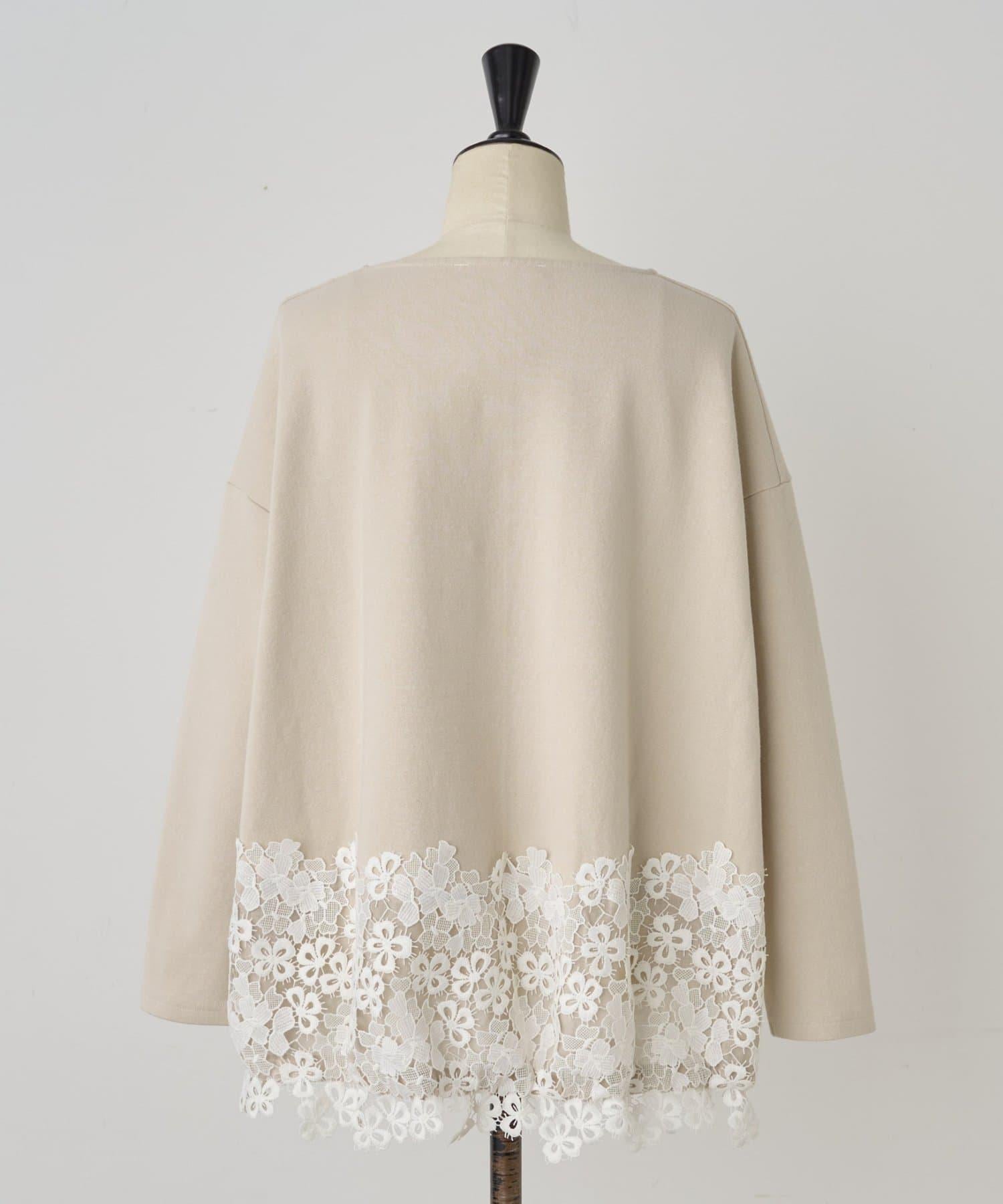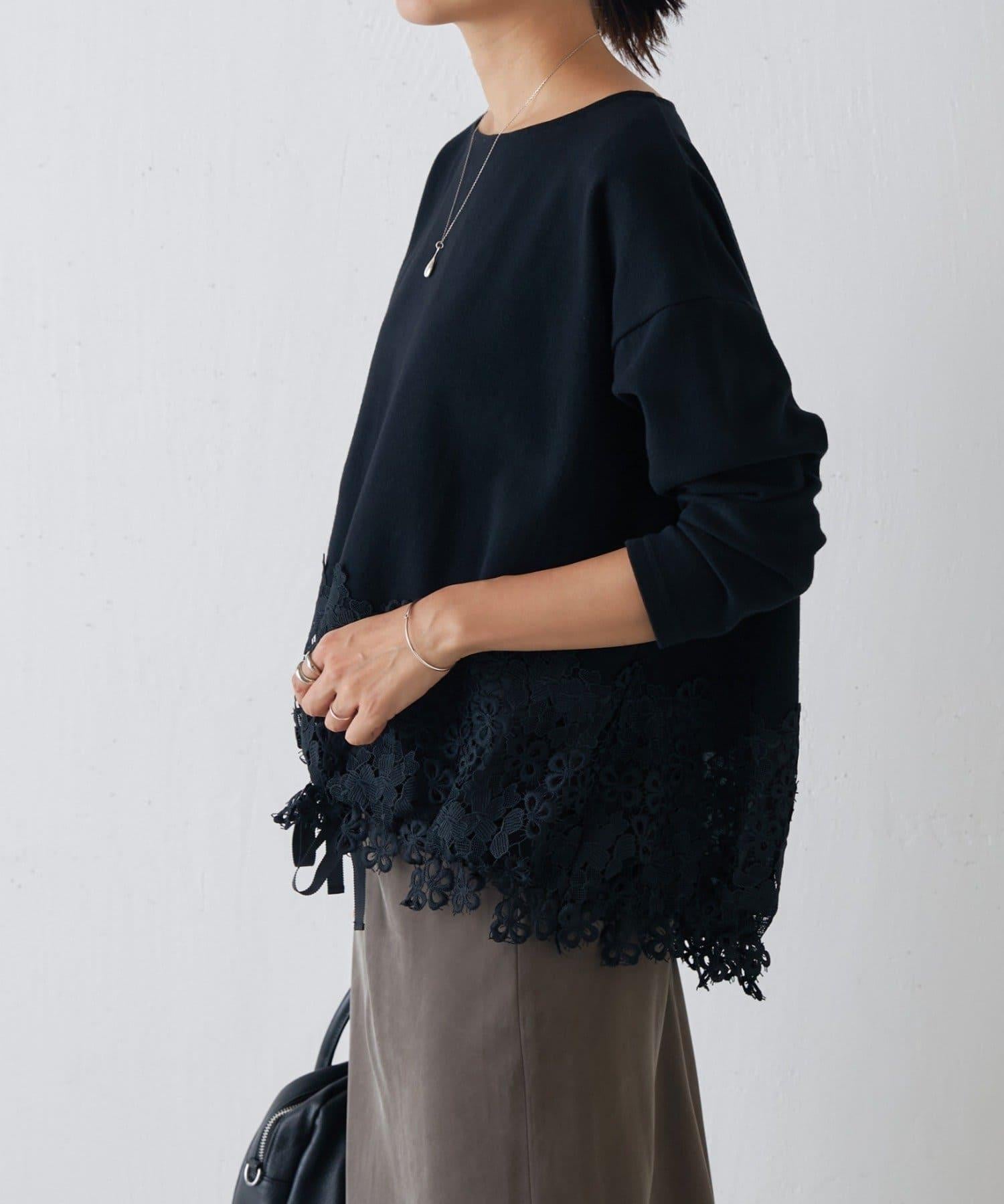 衣身部分採用剪裁縫製的面料,優雅的蕾絲與面料的休閒感巧妙結合,打造出👍的單品。