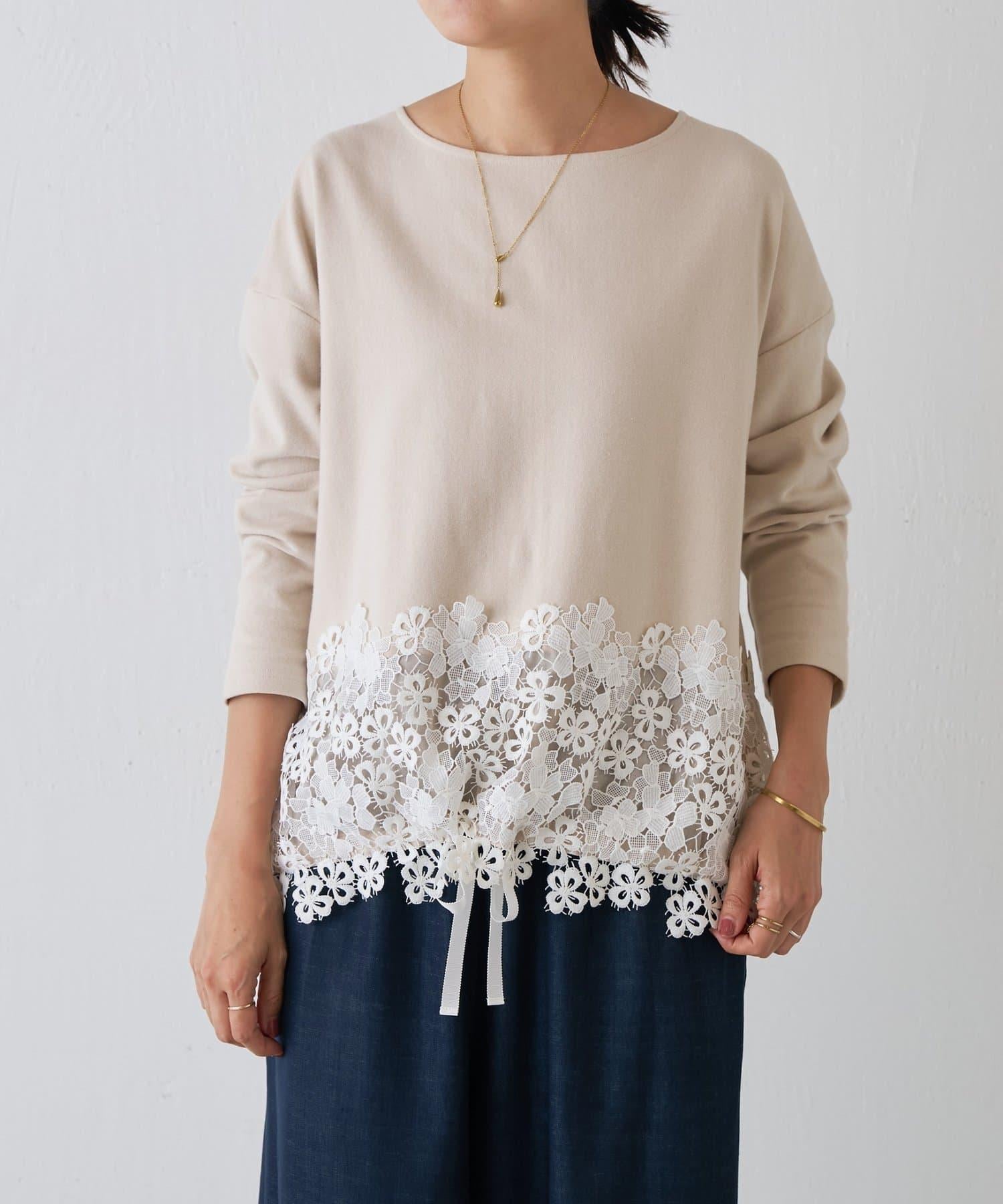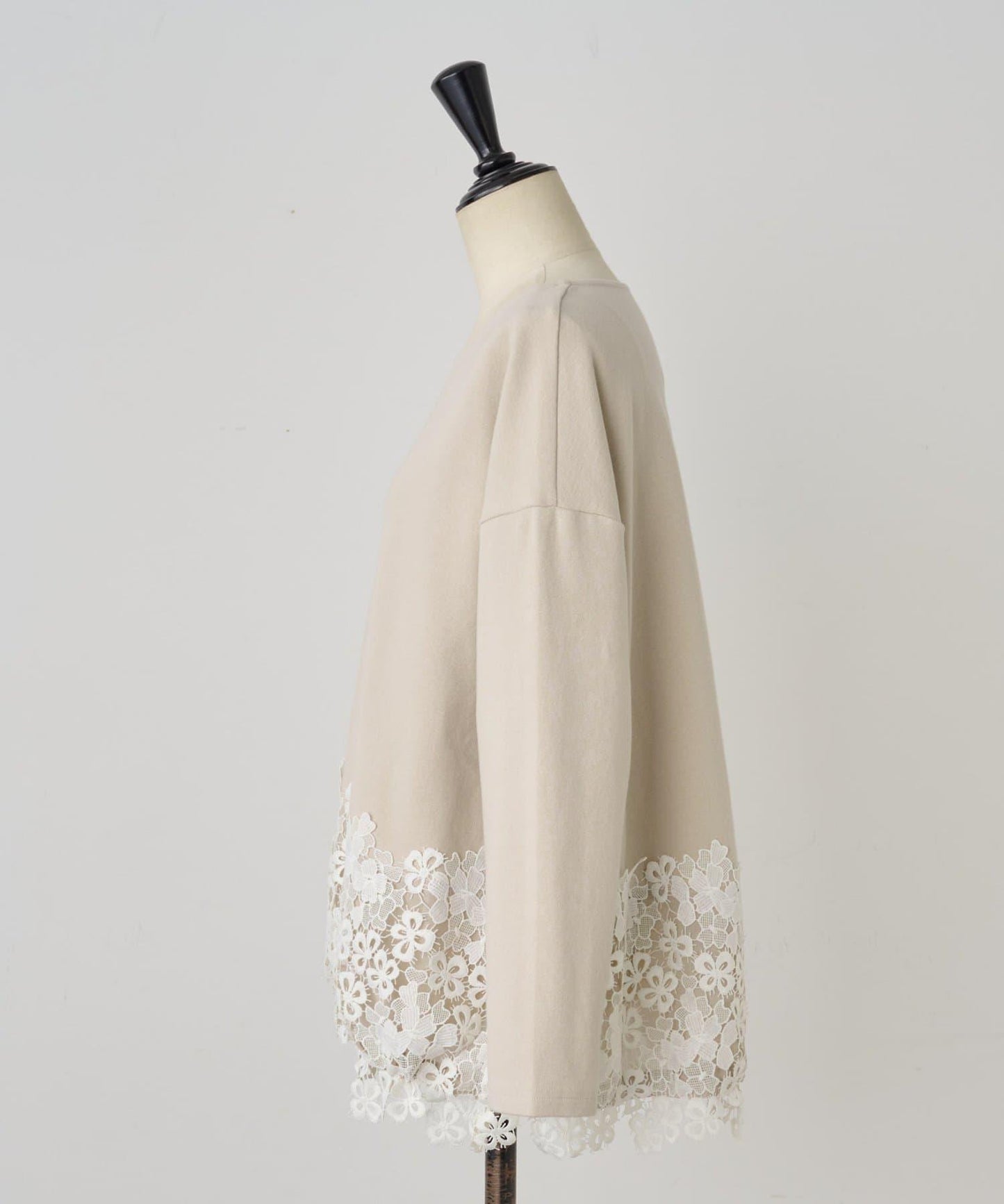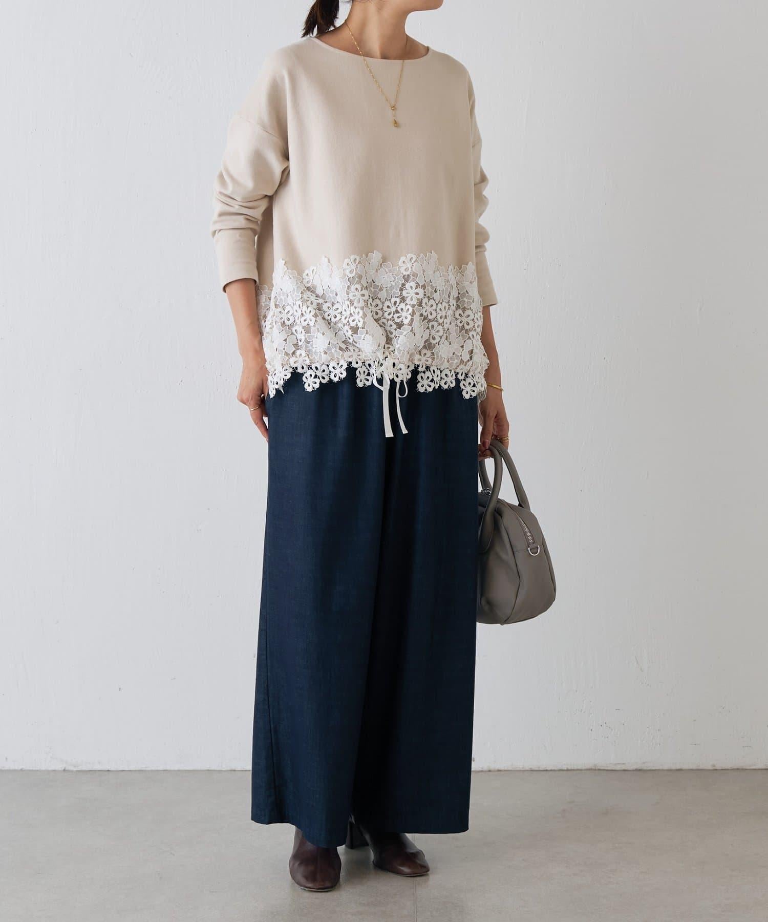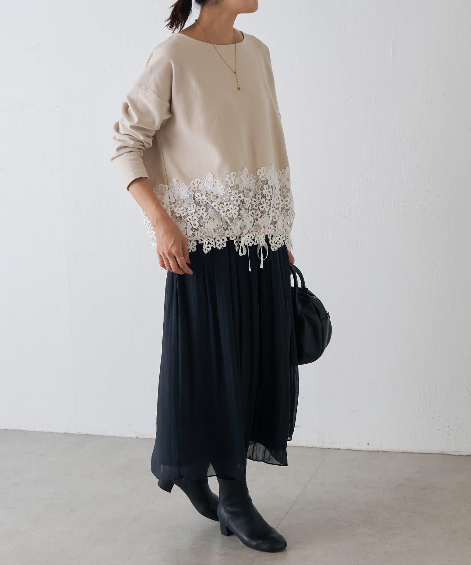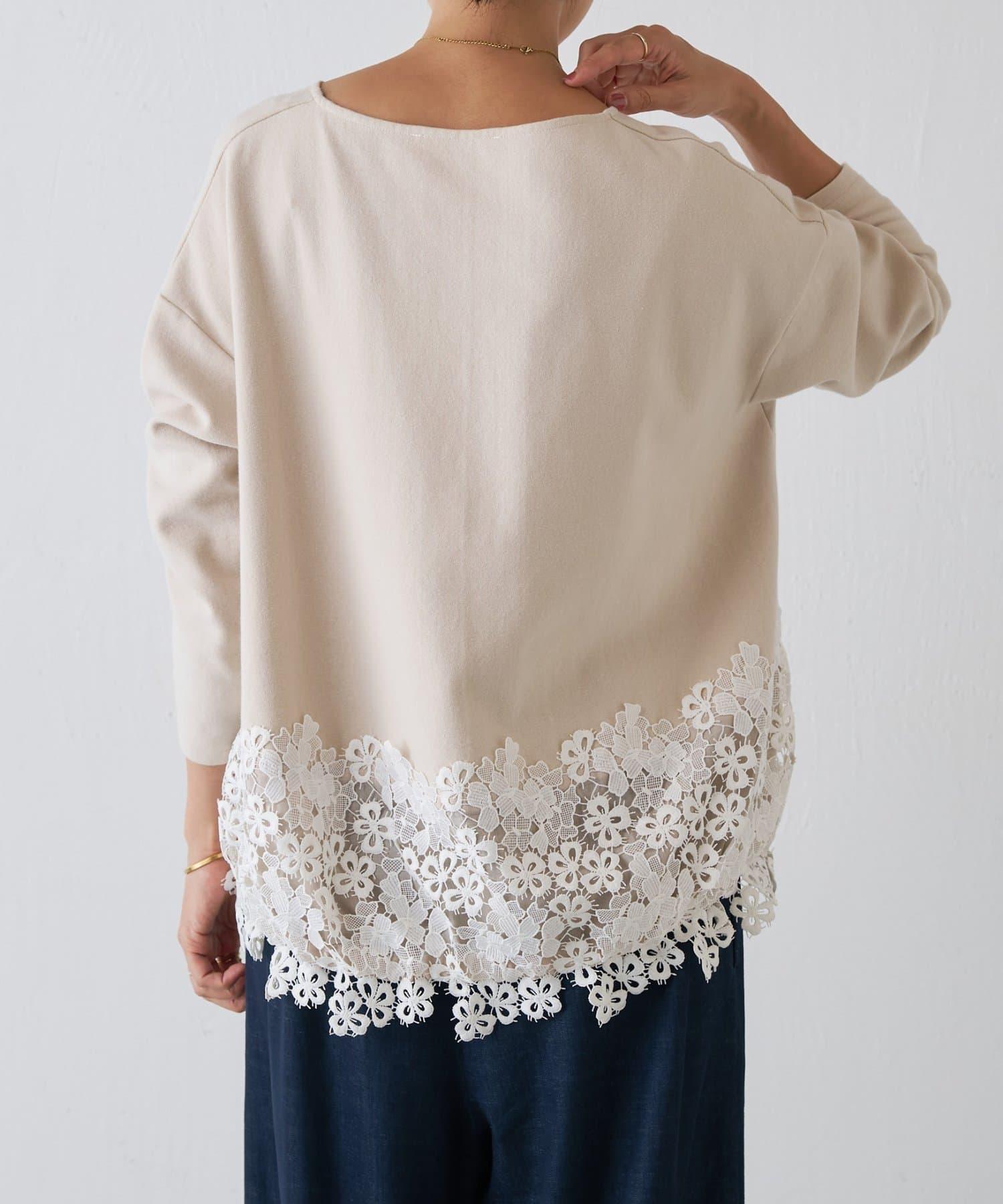 衣身部分採用剪裁縫製的面料,優雅的蕾絲與面料的休閒感巧妙結合,打造出👍的單品。