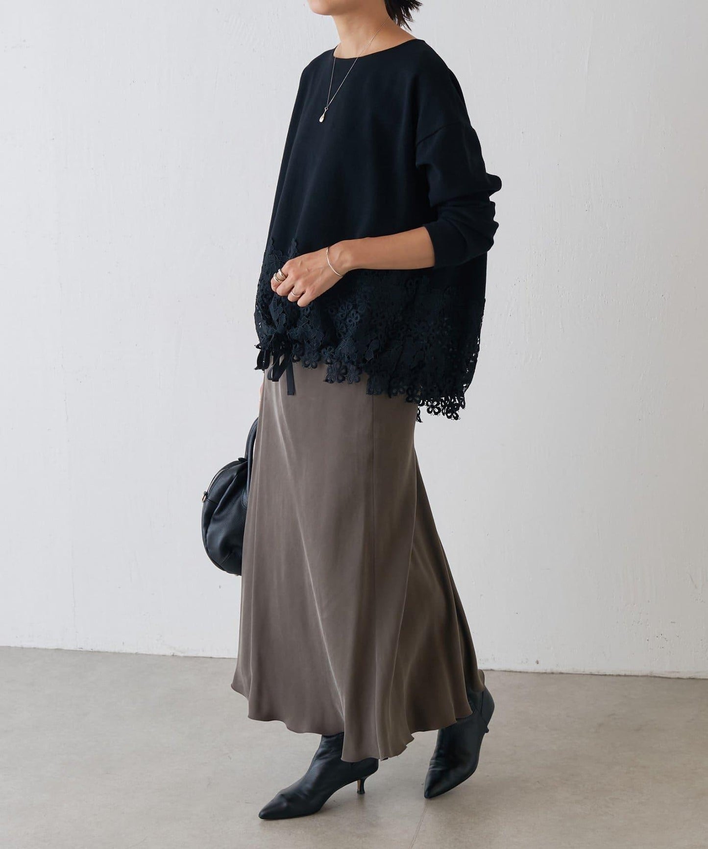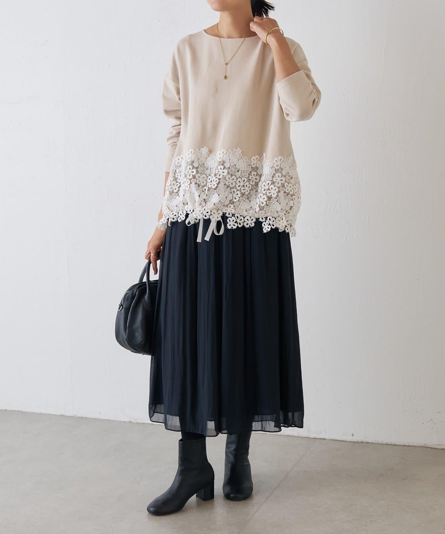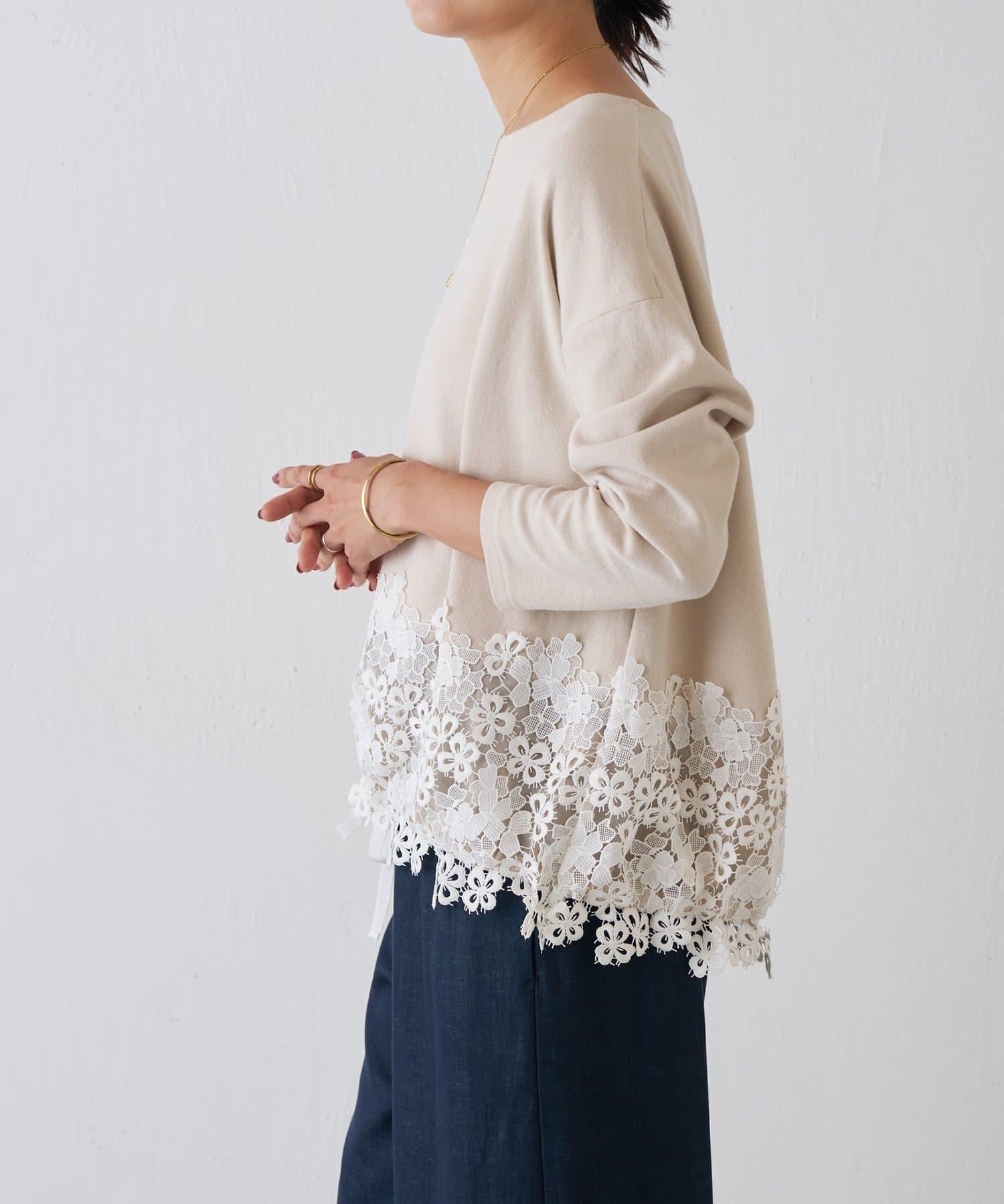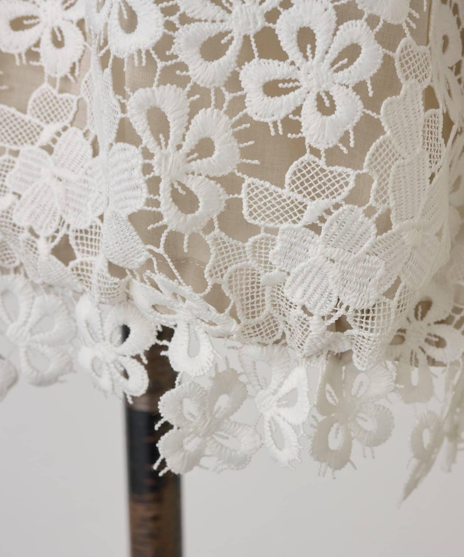 衣身部分採用剪裁縫製的面料,優雅的蕾絲與面料的休閒感巧妙結合,打造出👍的單品。