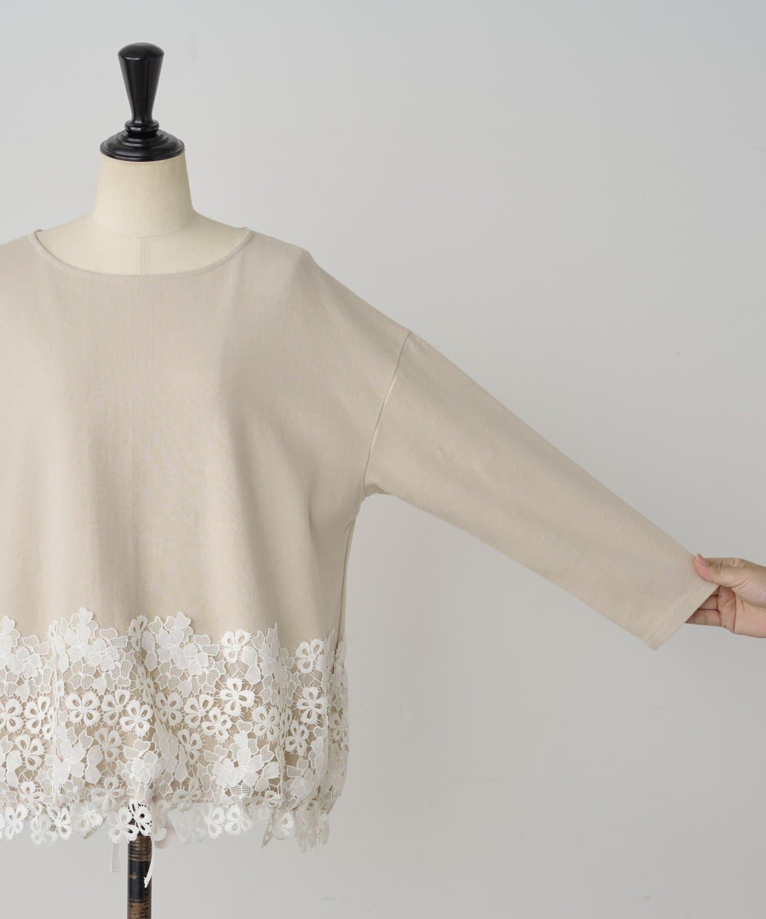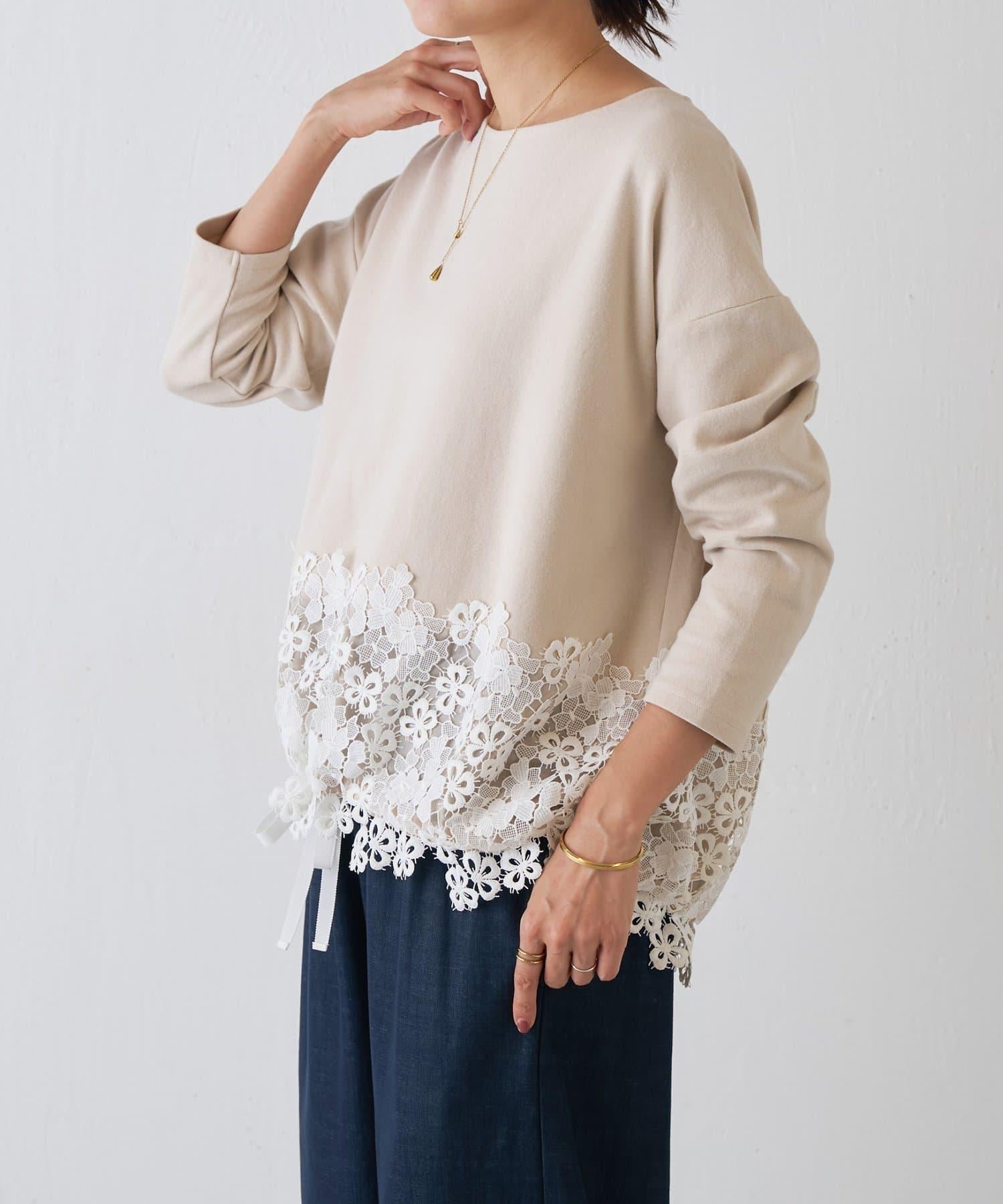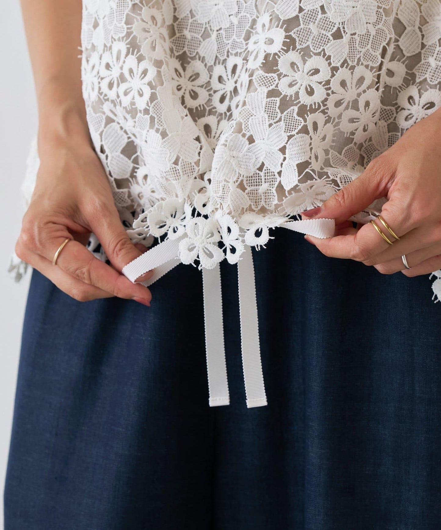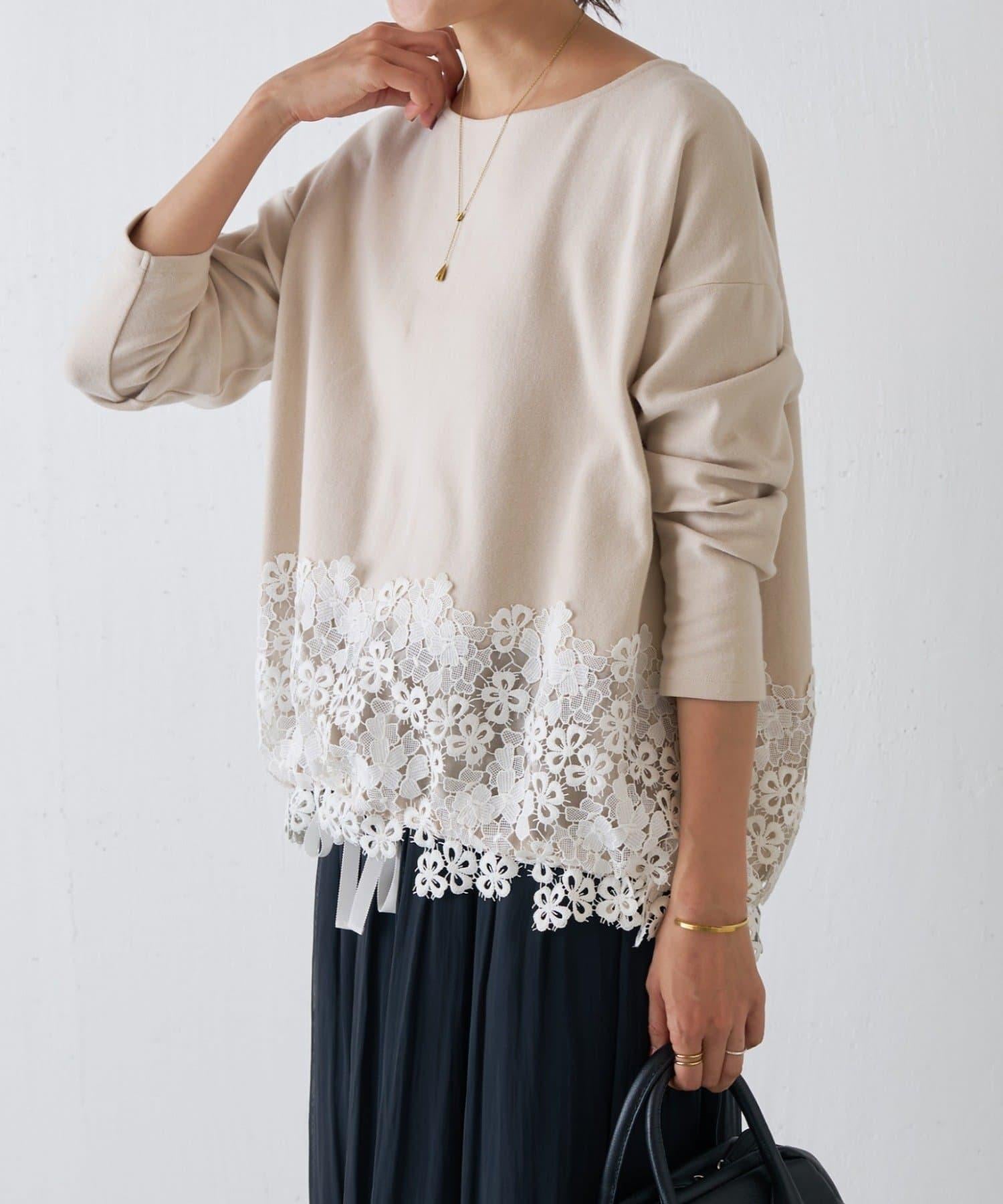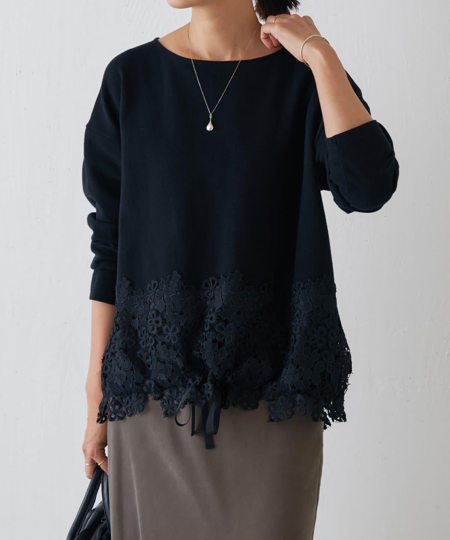 衣身部分採用剪裁縫製的面料,優雅的蕾絲與面料的休閒感巧妙結合,打造出👍的單品。