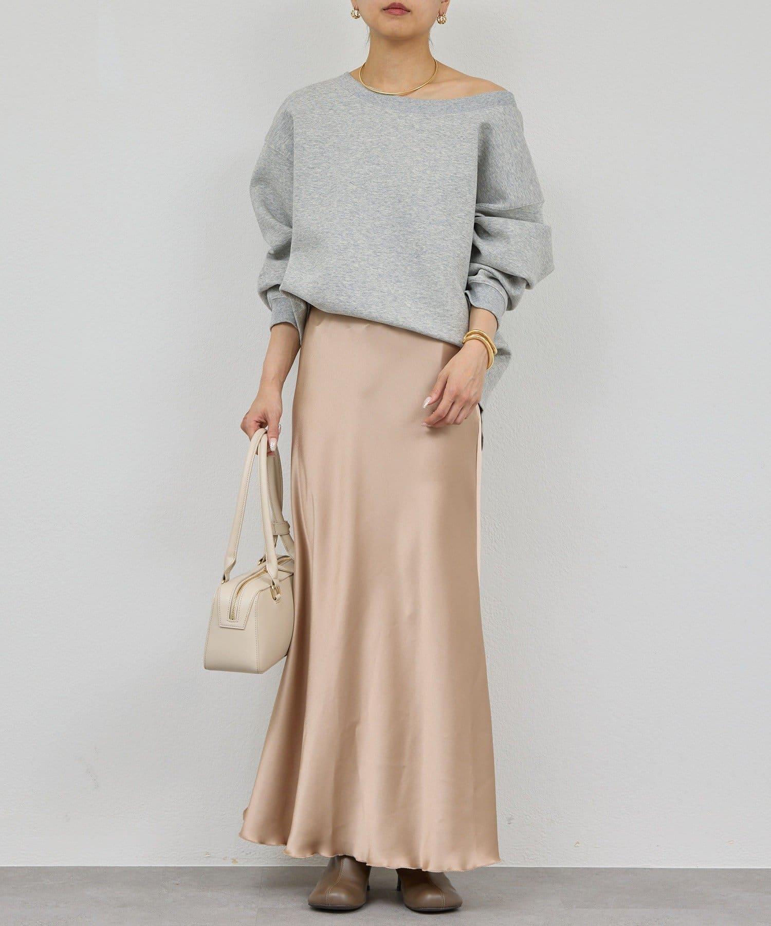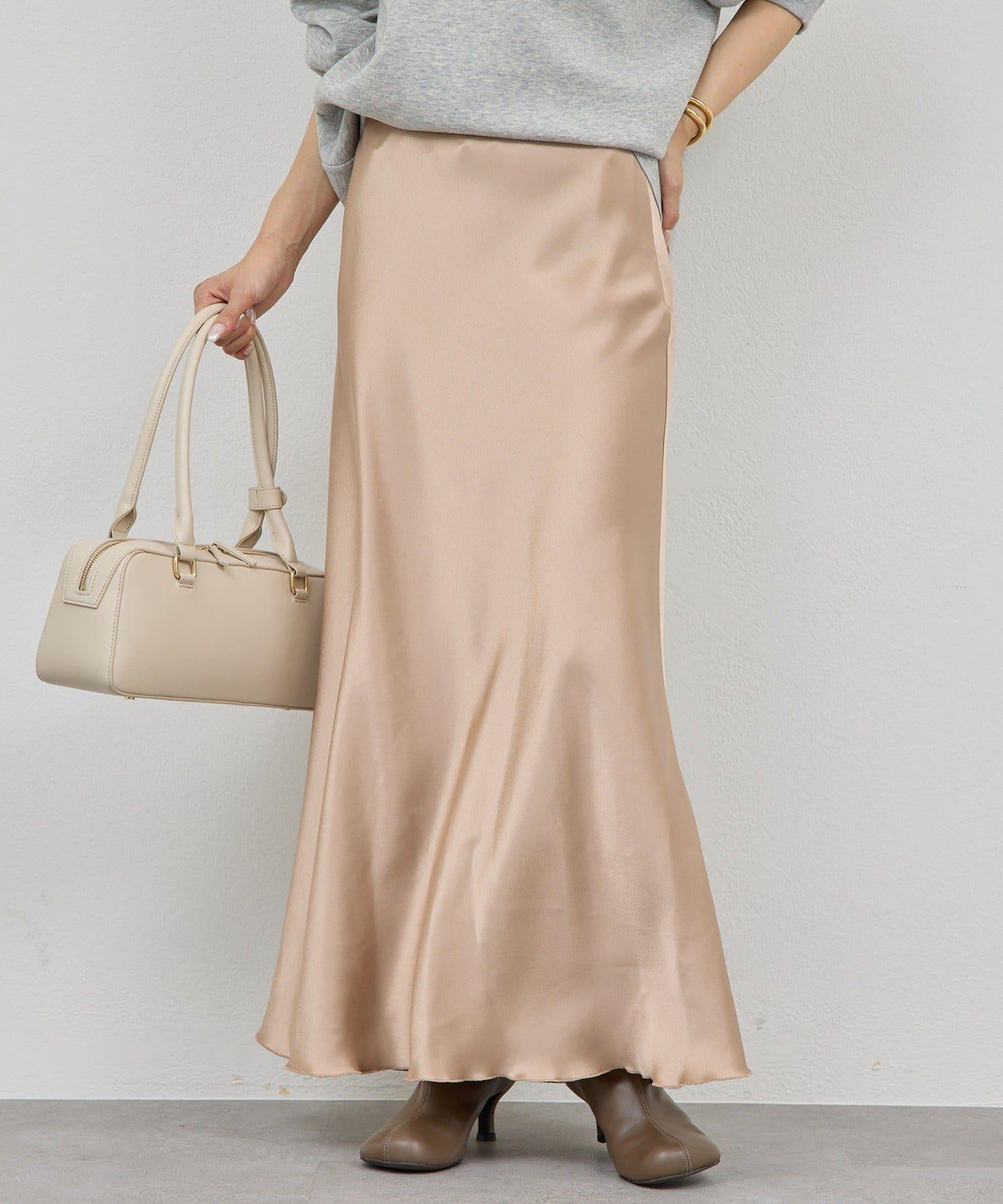 美麗的斜裙,採用觸感舒適的閃亮面料。