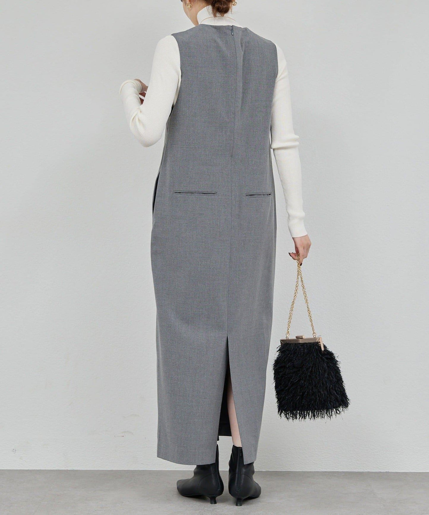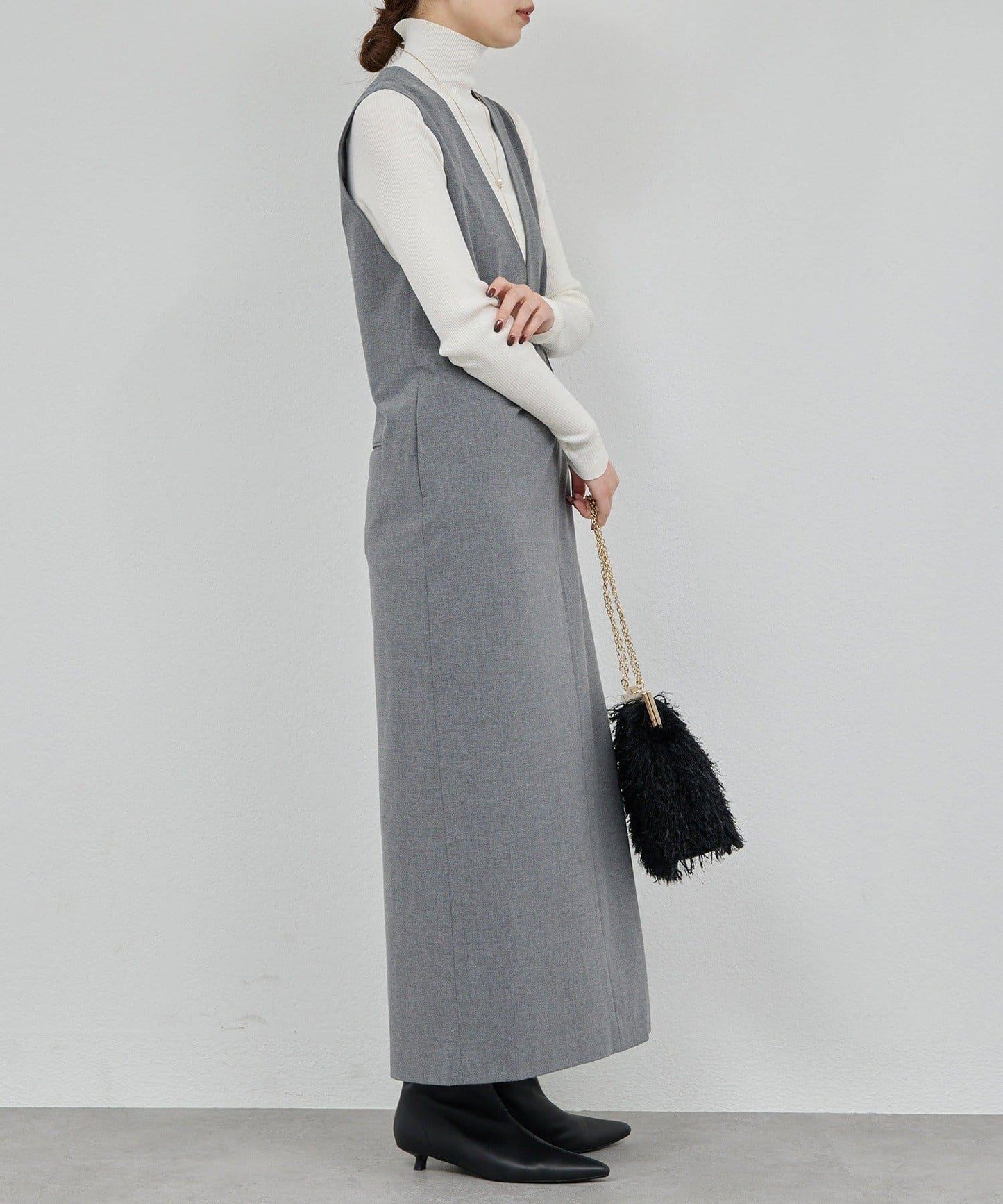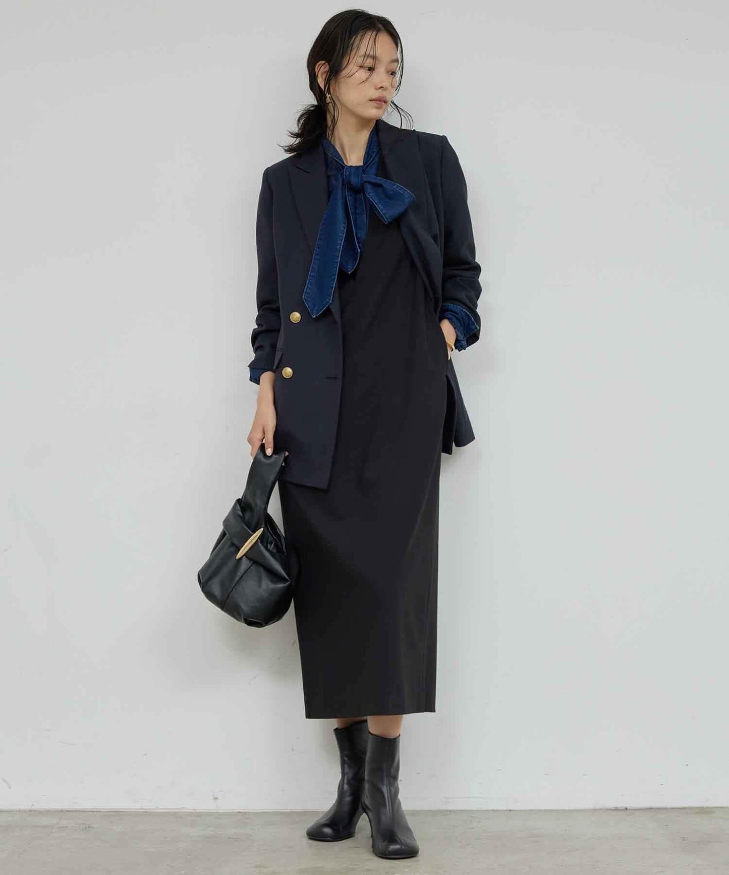 深 V 領給人乾淨利落的印象。