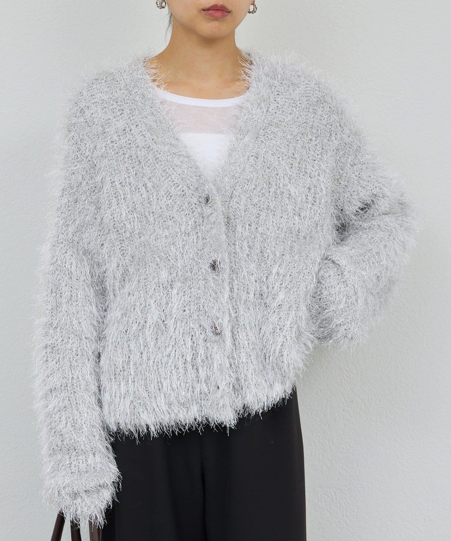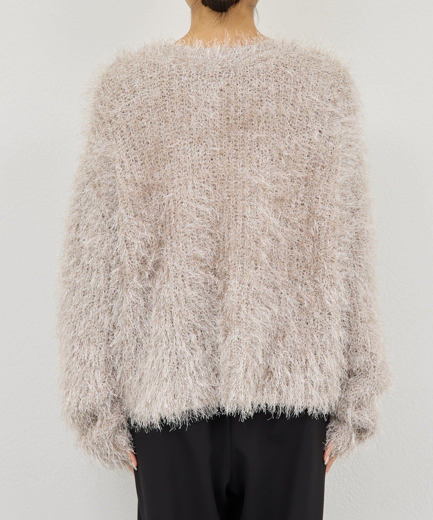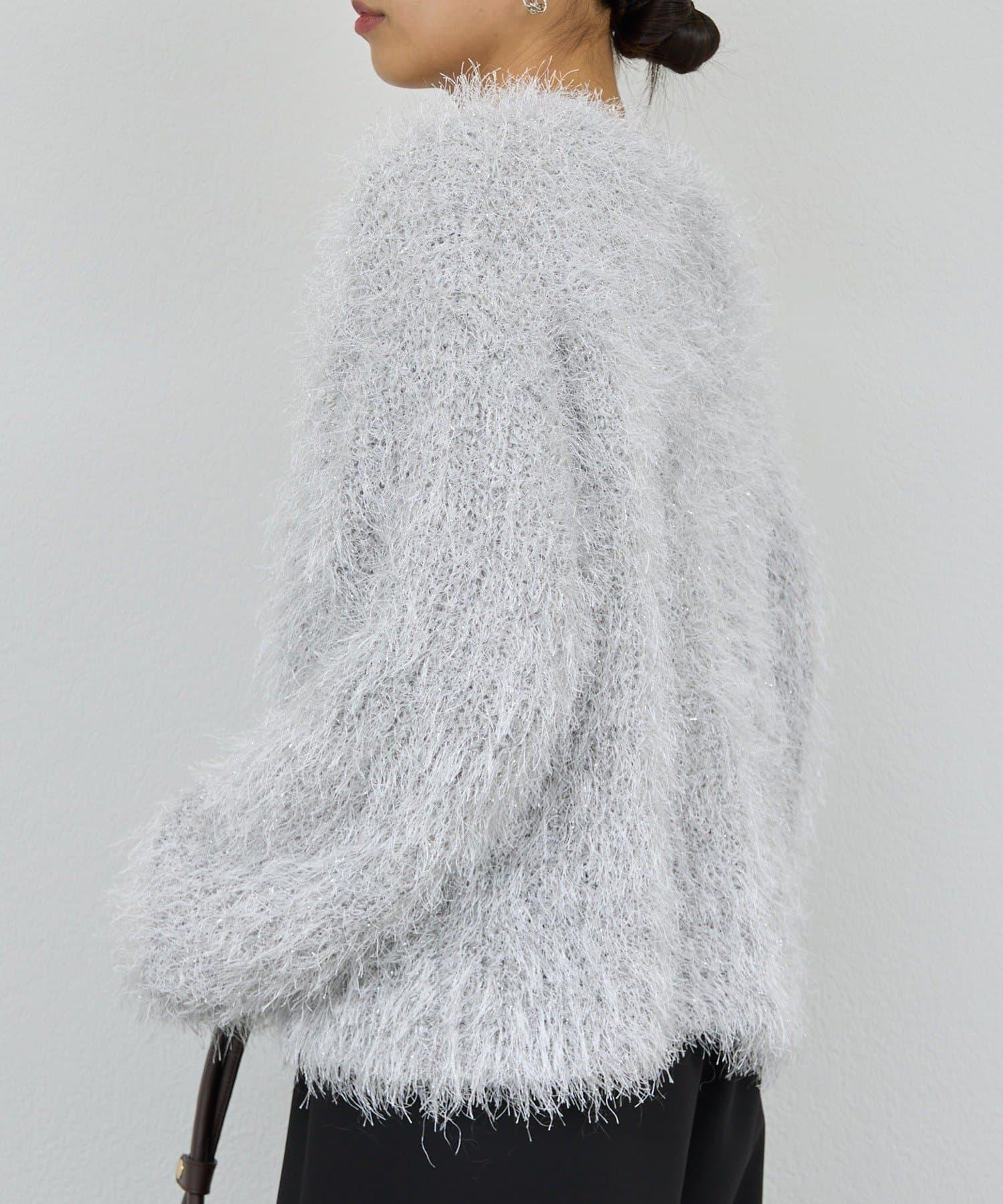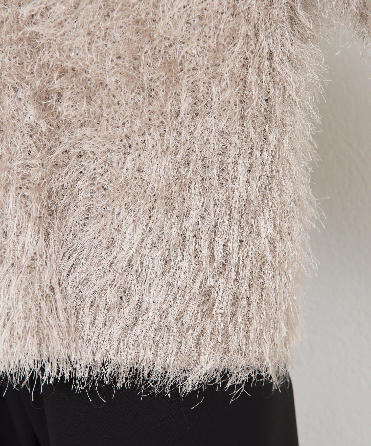 針織開衫上飾有微妙的薄片和長長的絨毛。