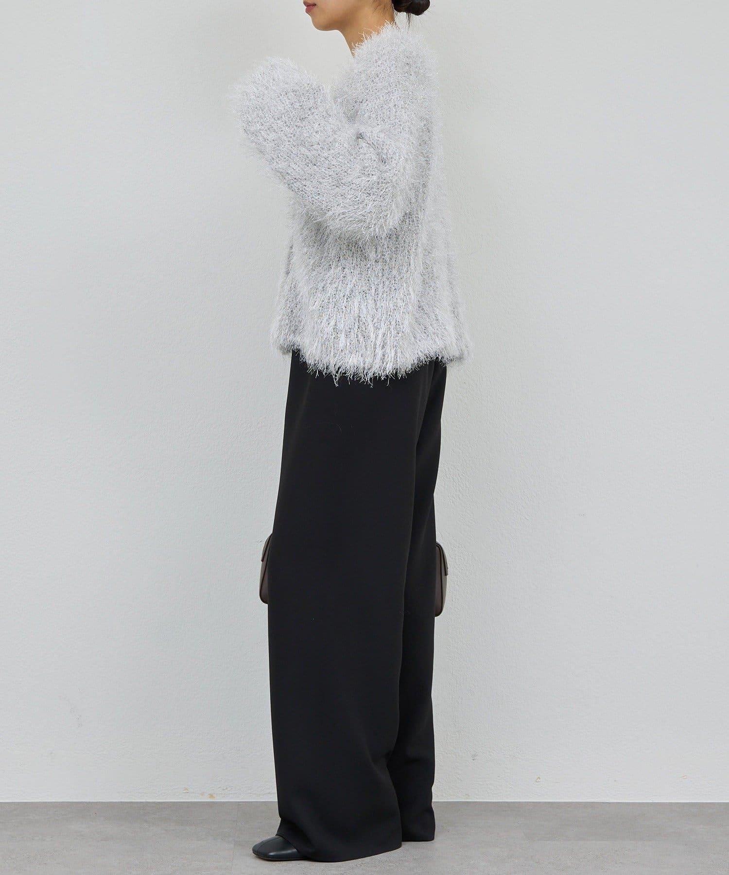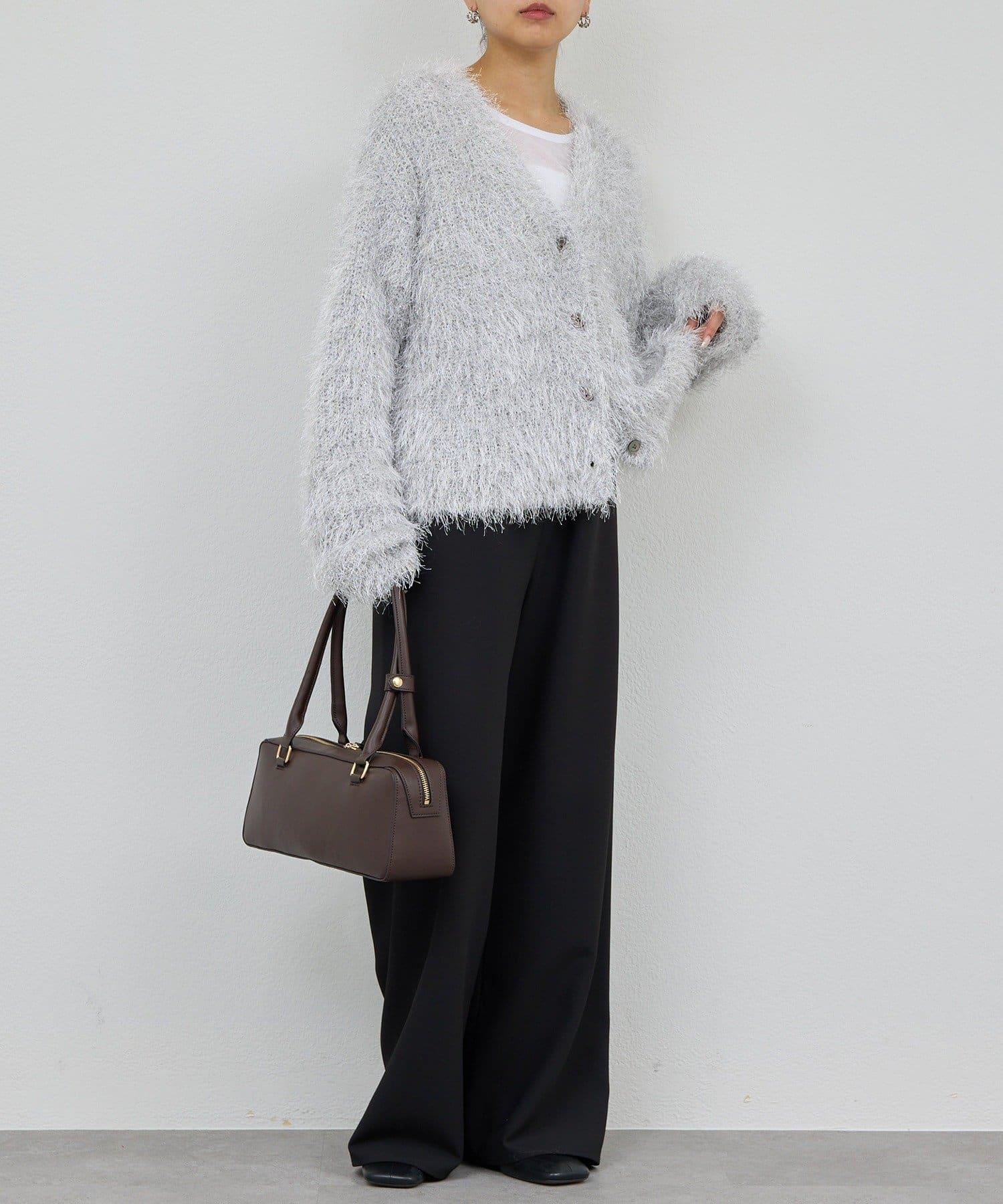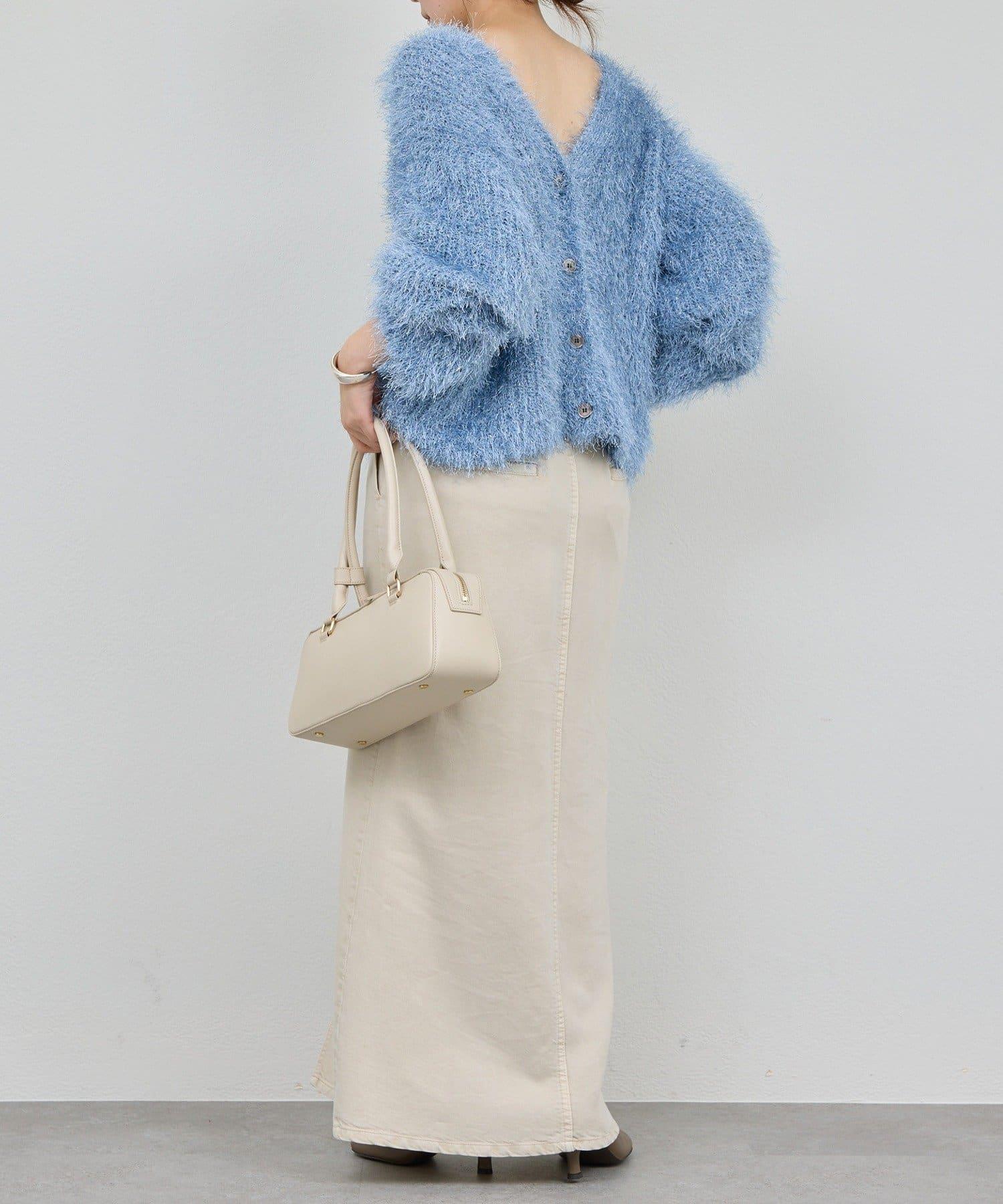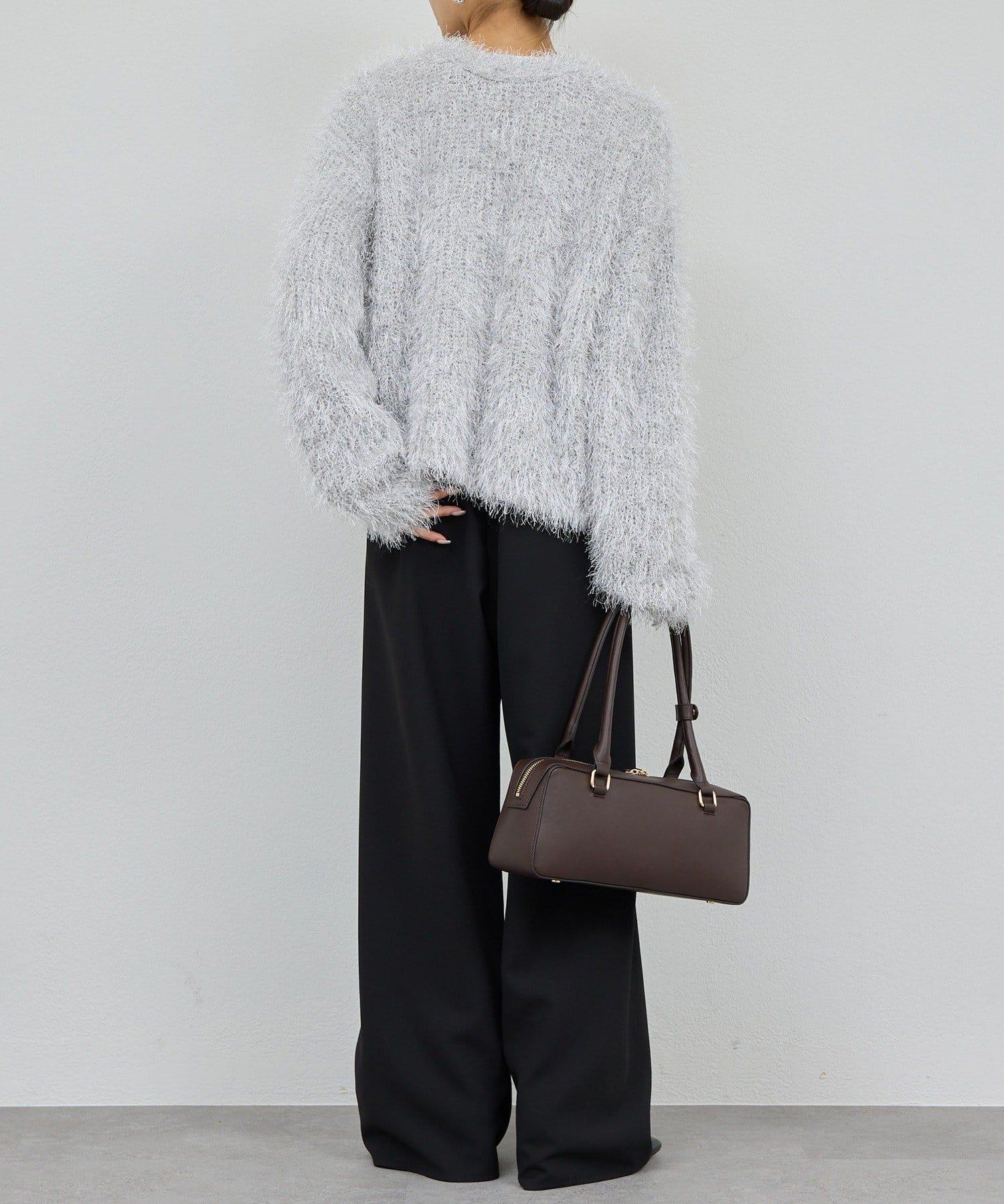 針織開衫上飾有微妙的薄片和長長的絨毛。