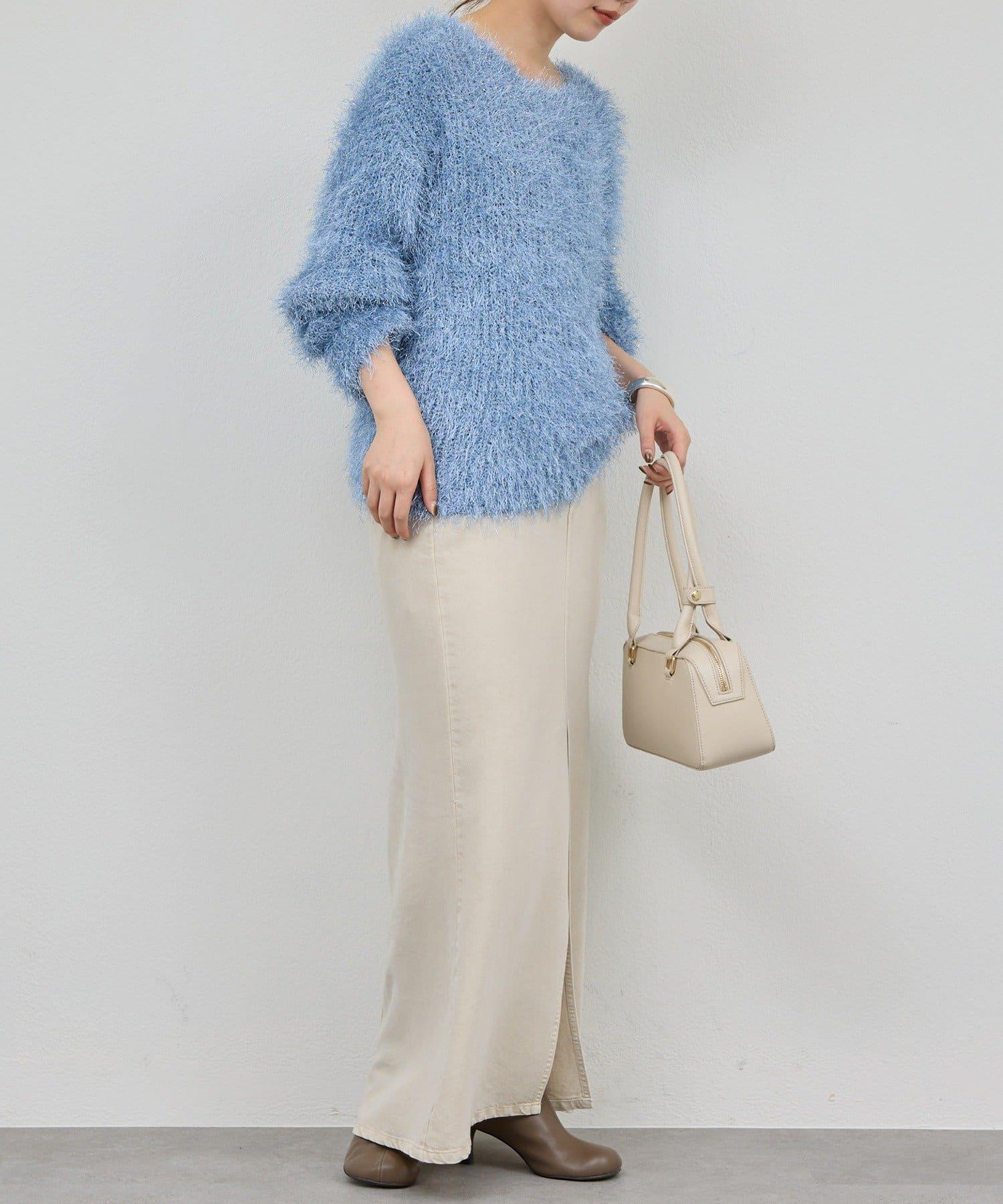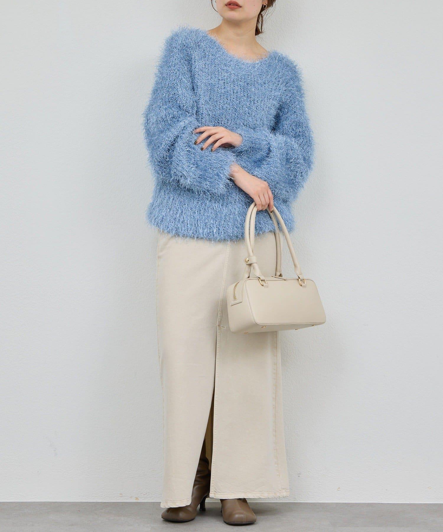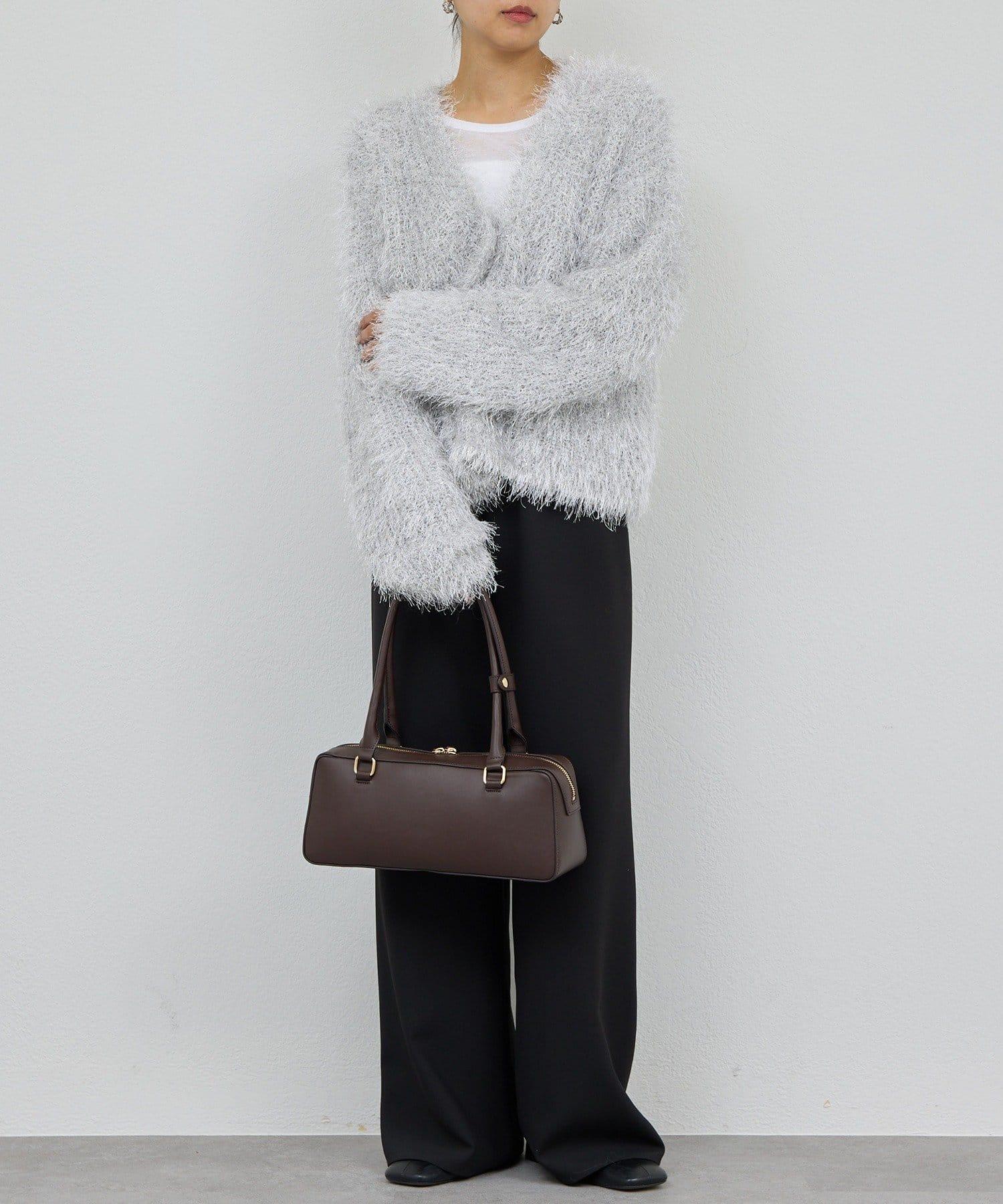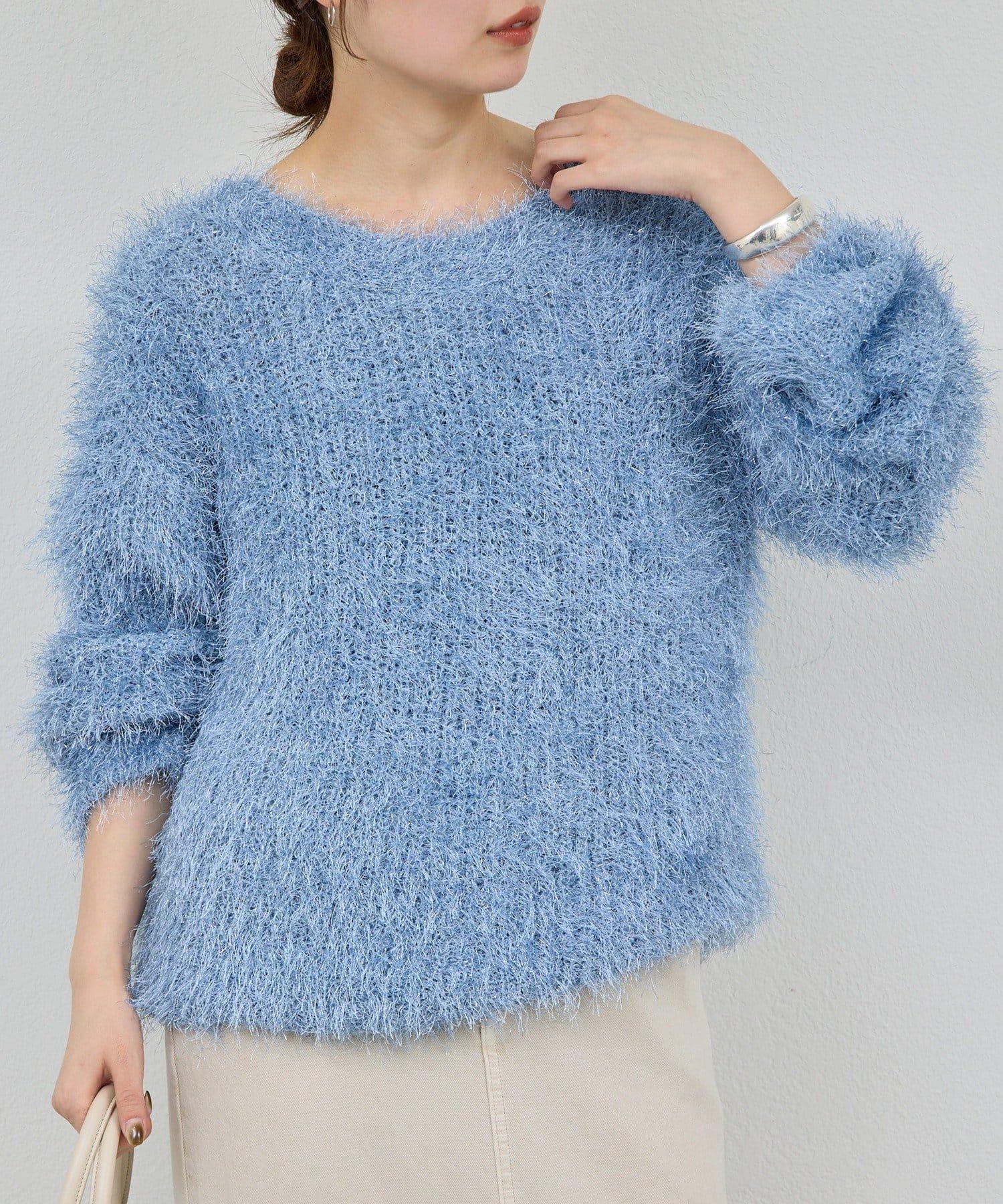 針織開衫上飾有微妙的薄片和長長的絨毛。