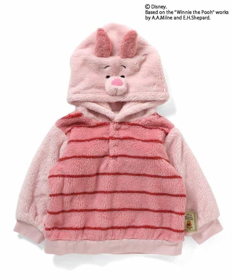 連帽衫上有卡通人物的臉和立體耳朵,只要穿上它,您就會變成維尼和小豬!