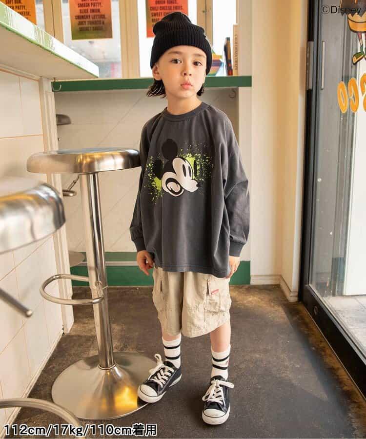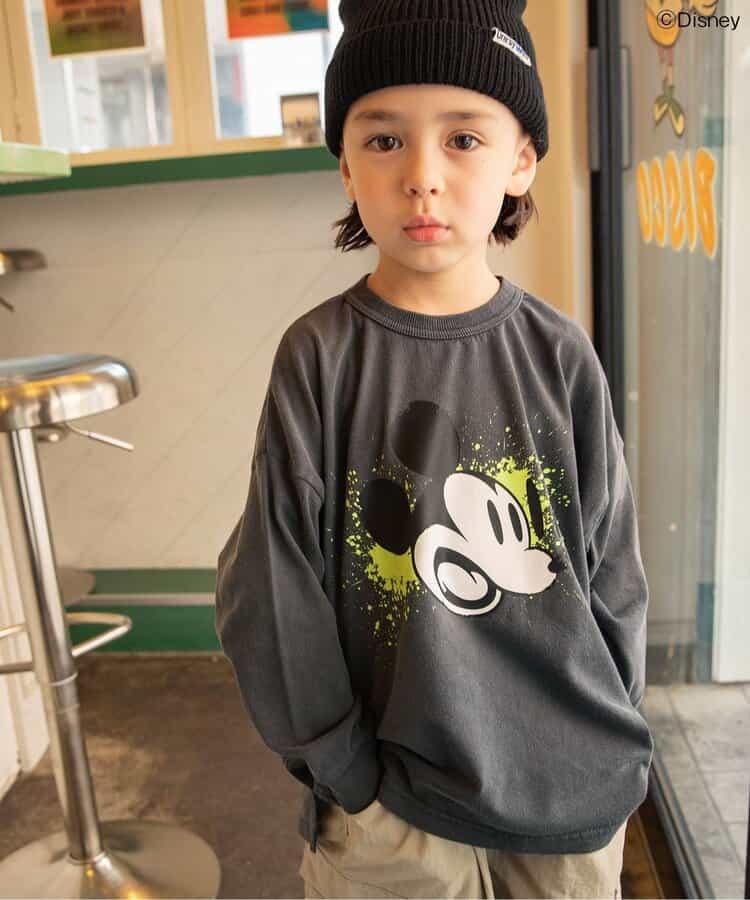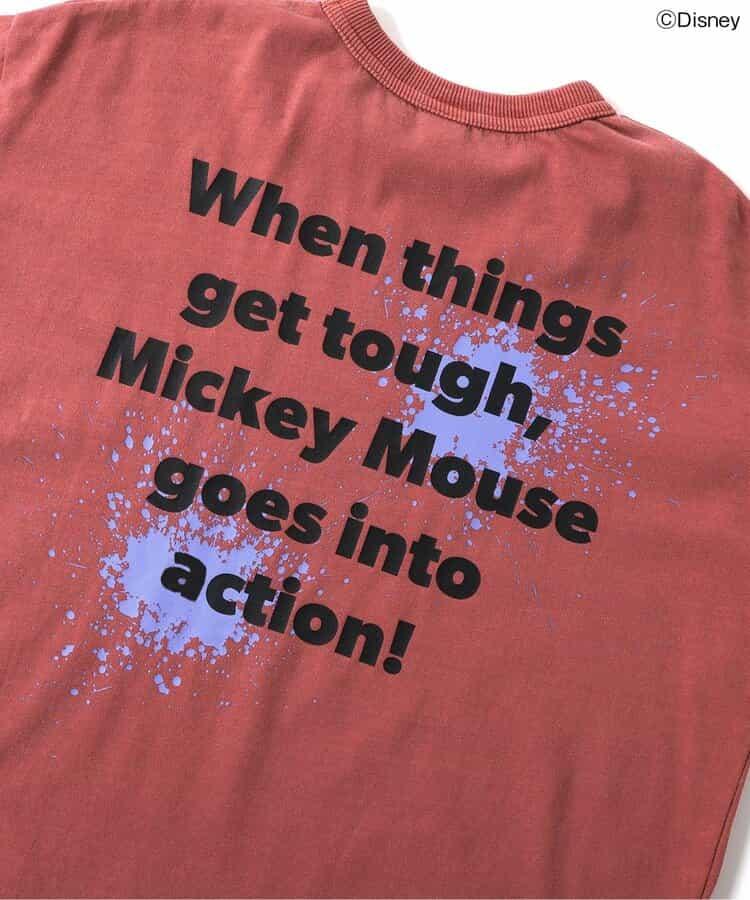 米老鼠的冷酷表情被大膽地設計在 T 恤上,復古風格的顏料塗層非常吸引人。