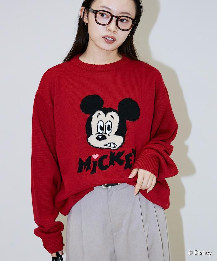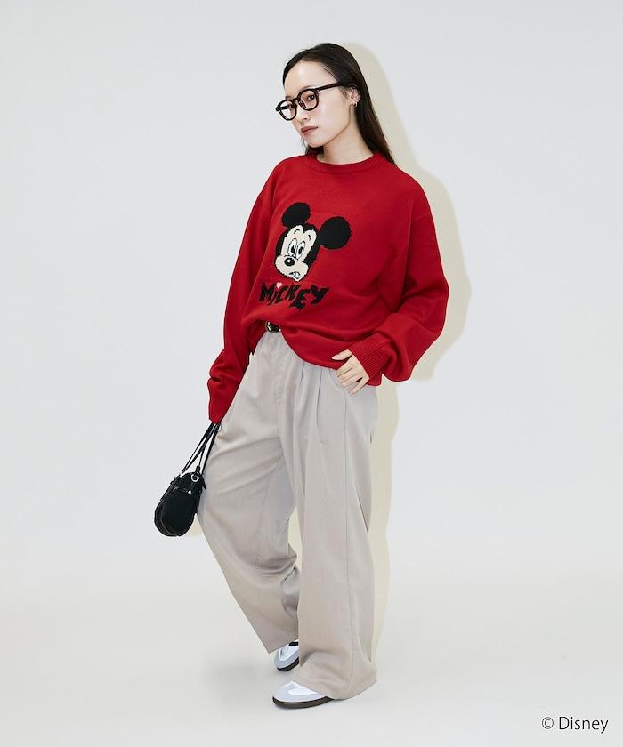 《迪士尼》 / 《迪士尼》 / 米老鼠寬鬆版型提花圓領針織衫 / MICKY FACE