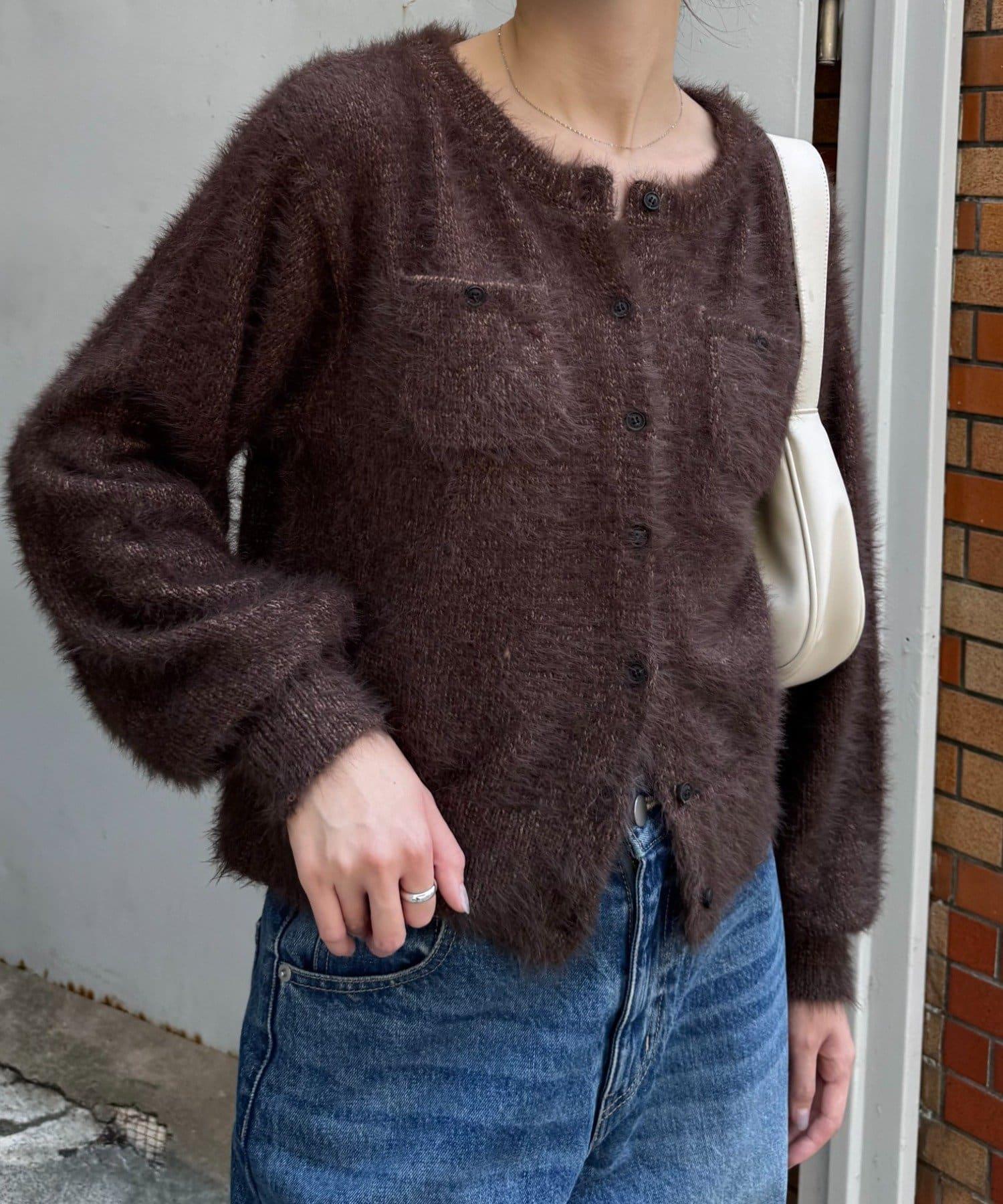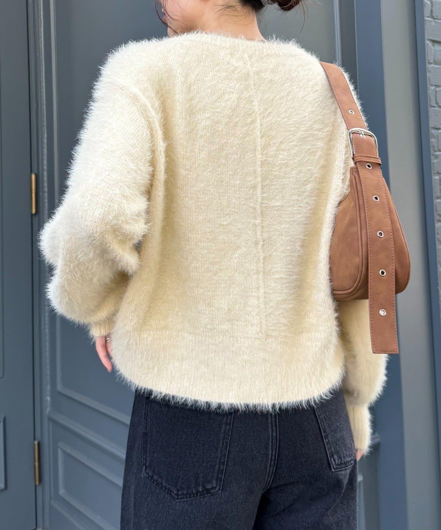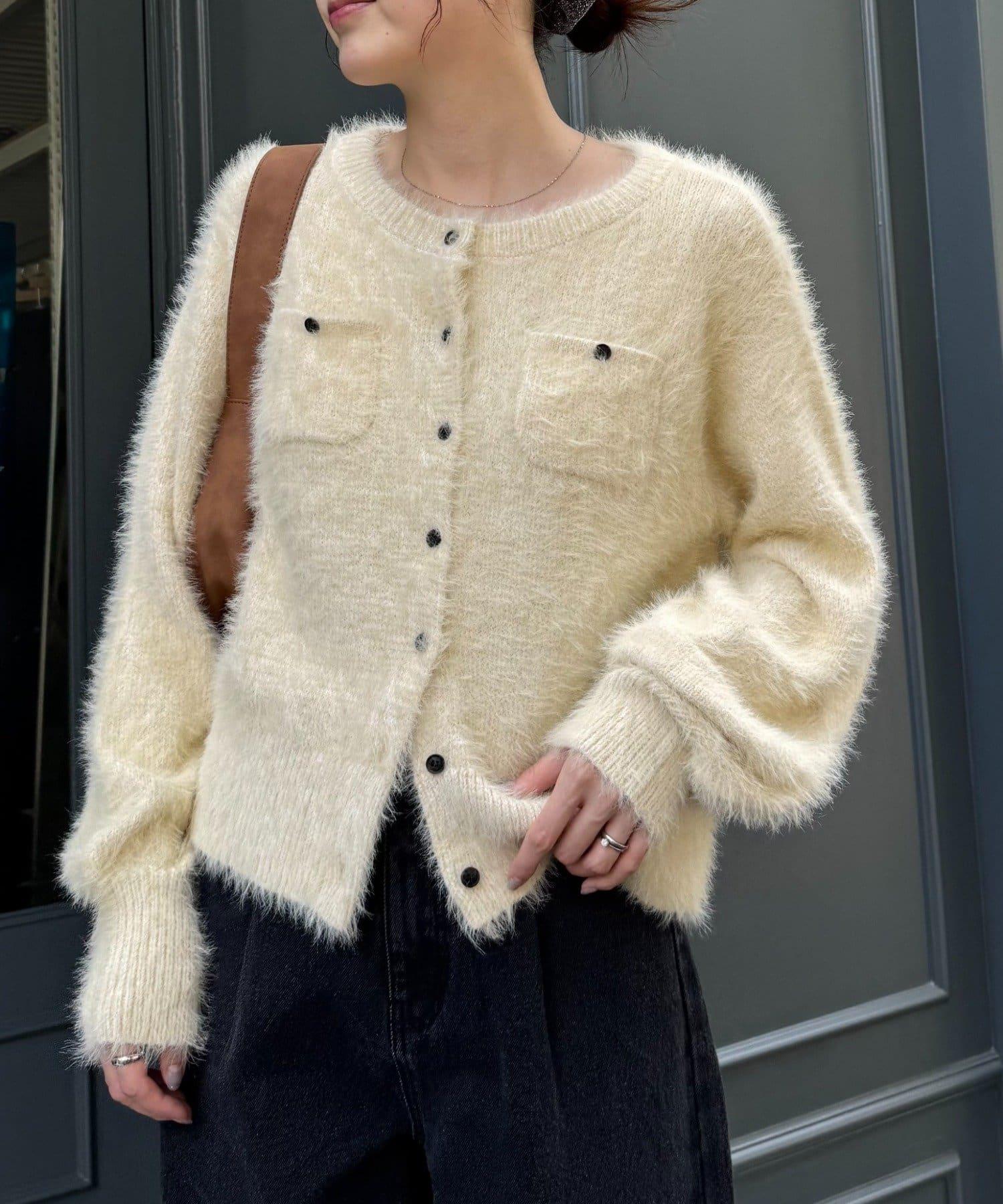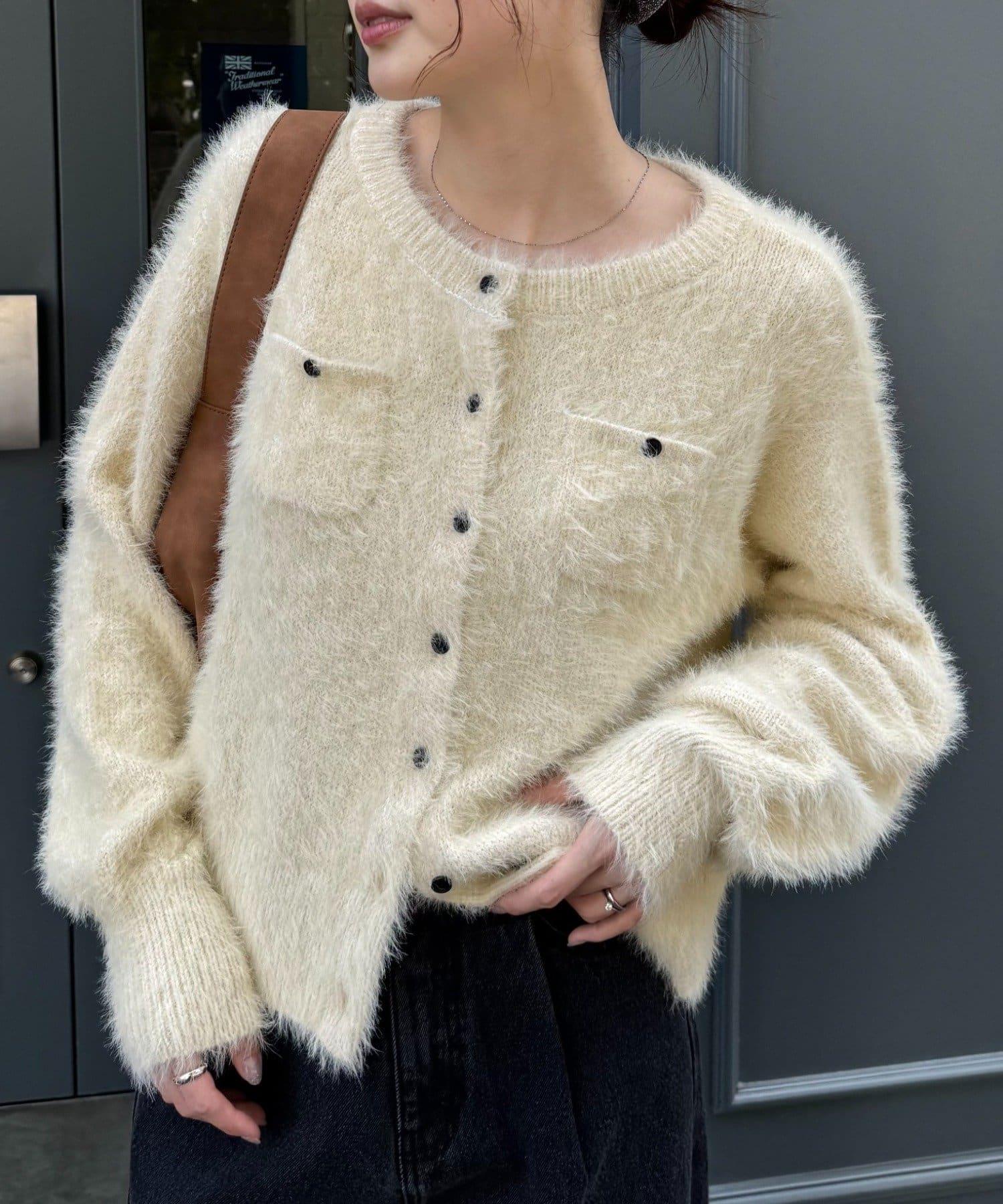 這款毛茸茸的針織開衫有著羊絨般柔軟蓬鬆的質感。