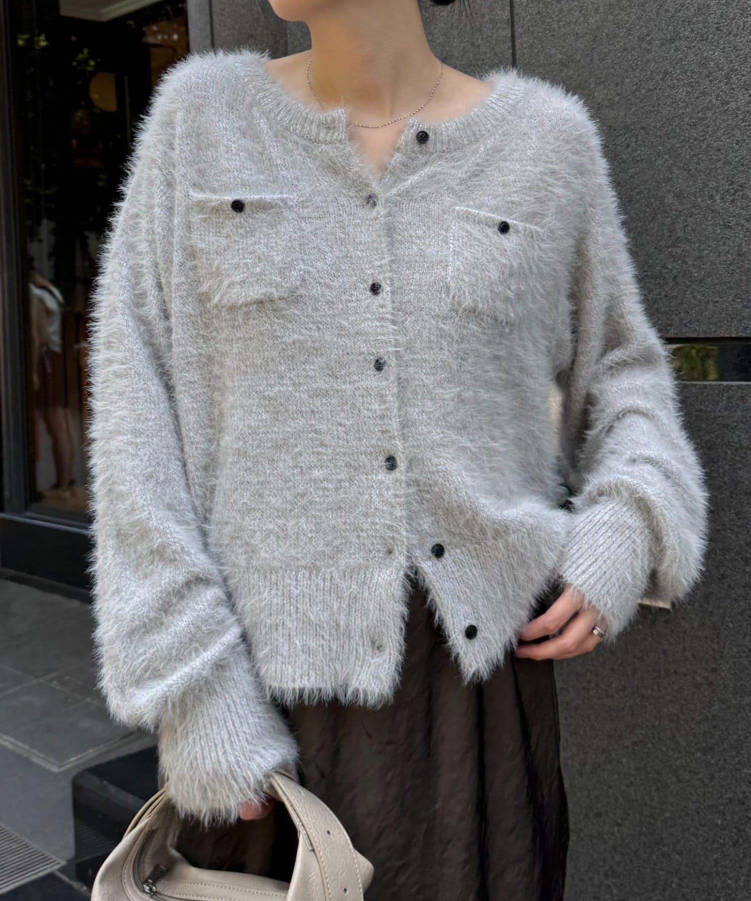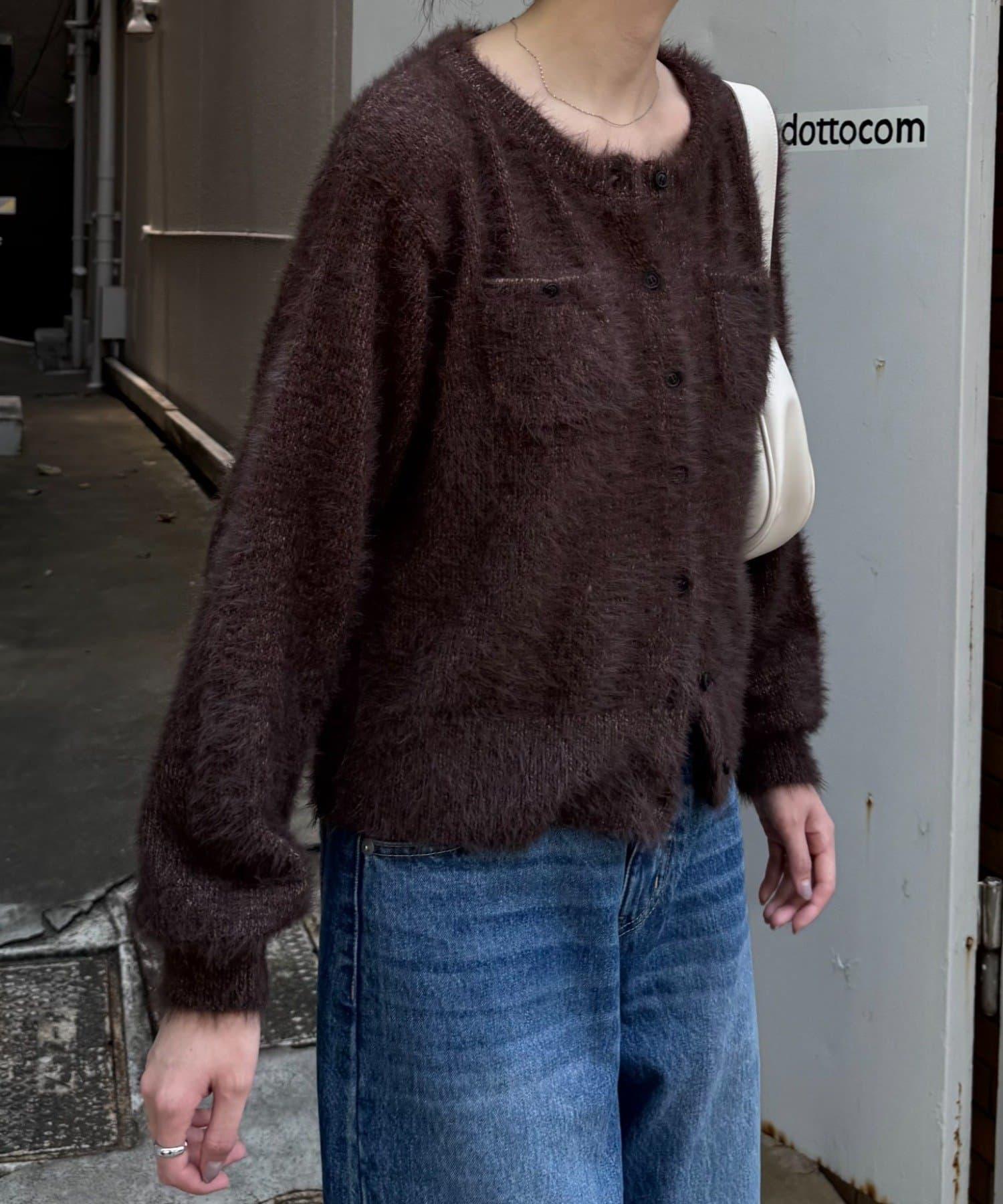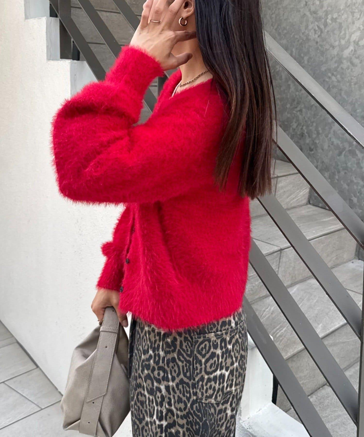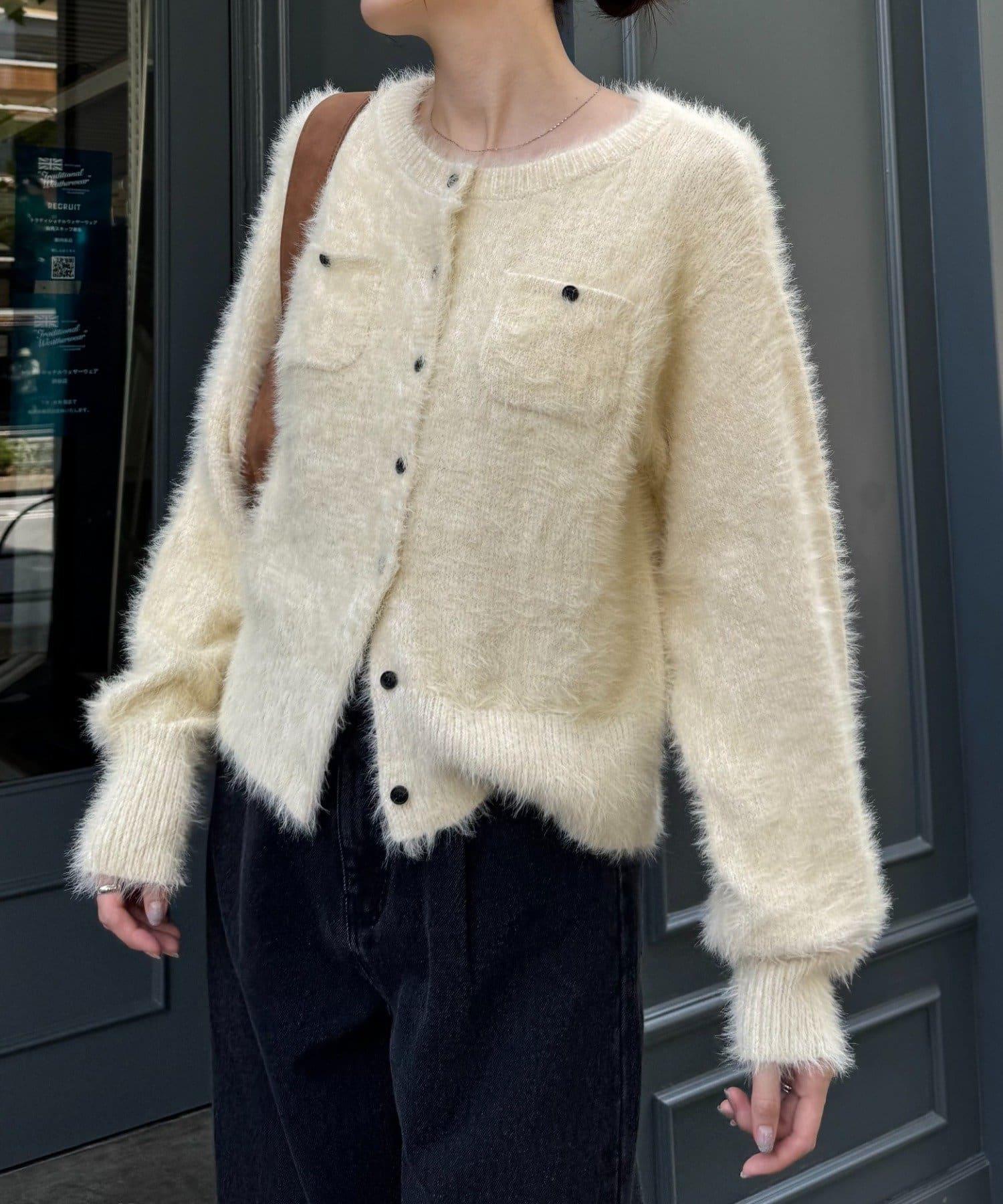 這款毛茸茸的針織開衫有著羊絨般柔軟蓬鬆的質感。