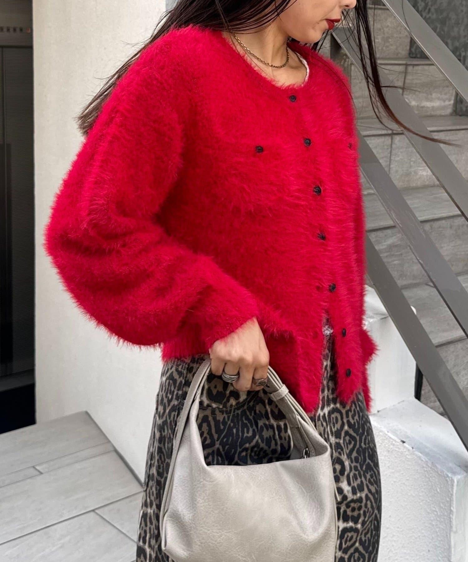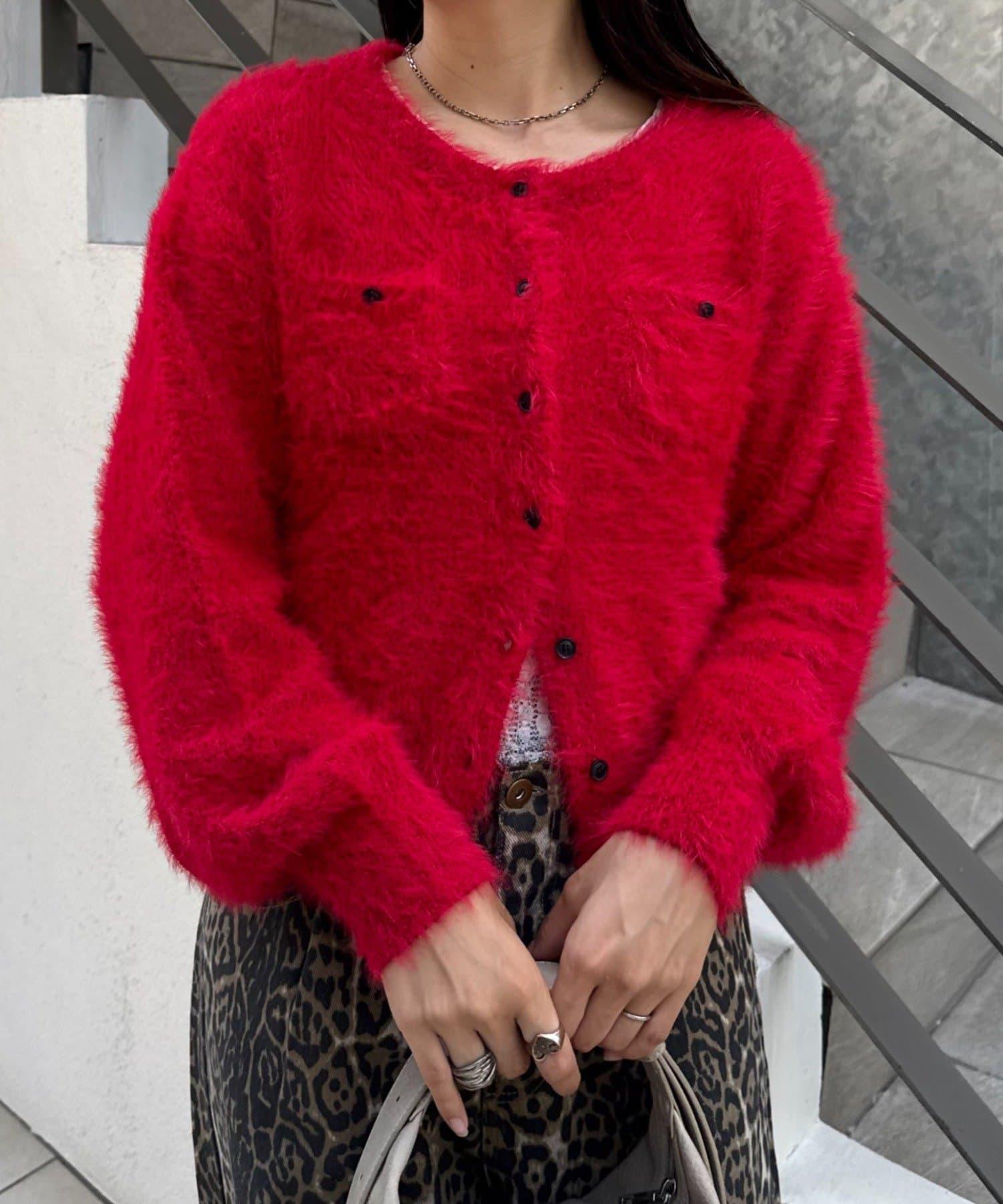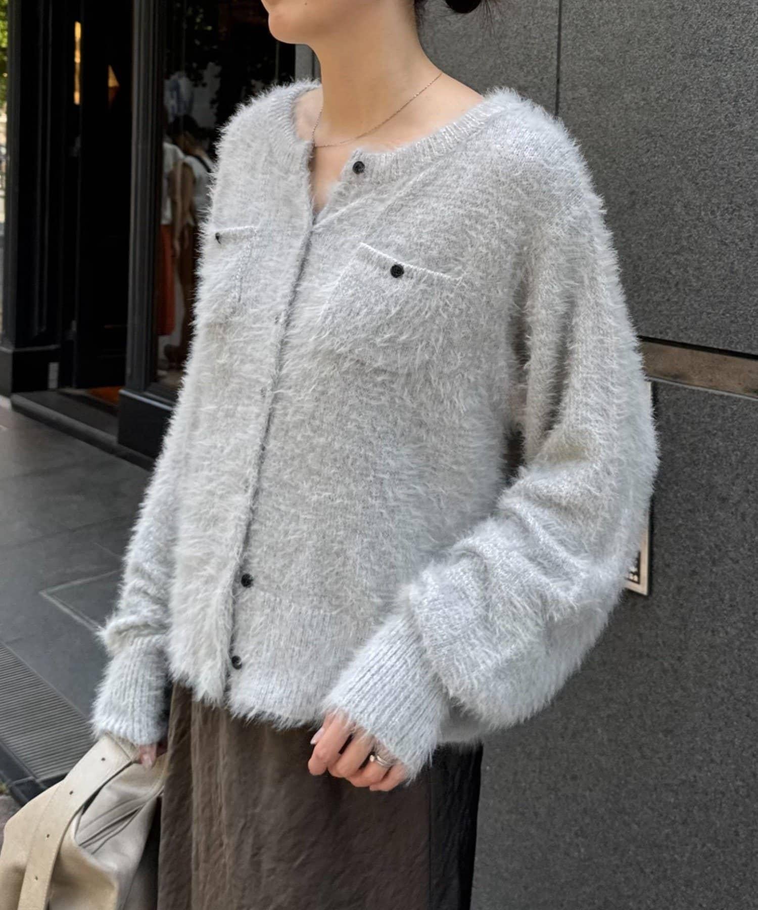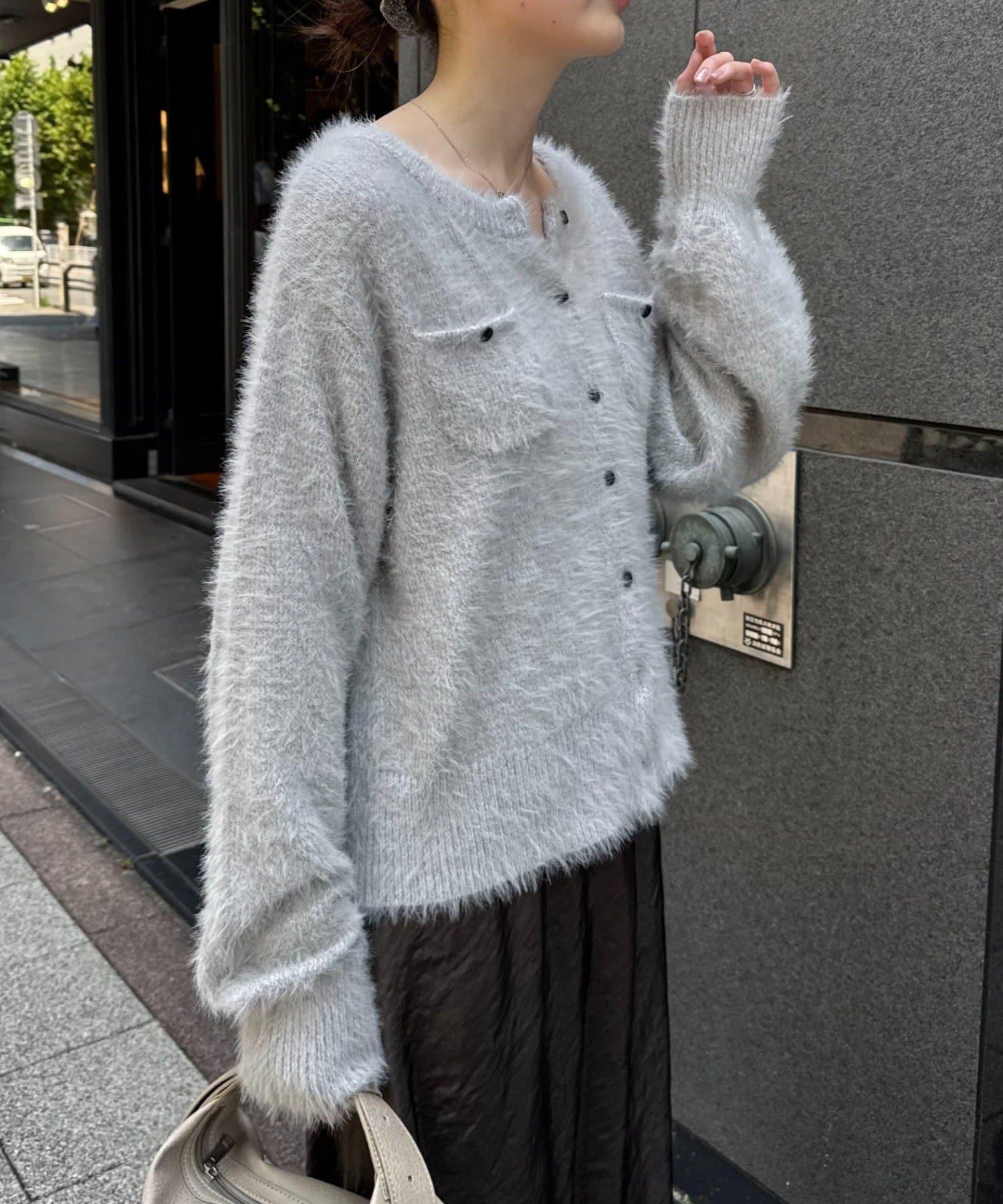 這款毛茸茸的針織開衫有著羊絨般柔軟蓬鬆的質感。
