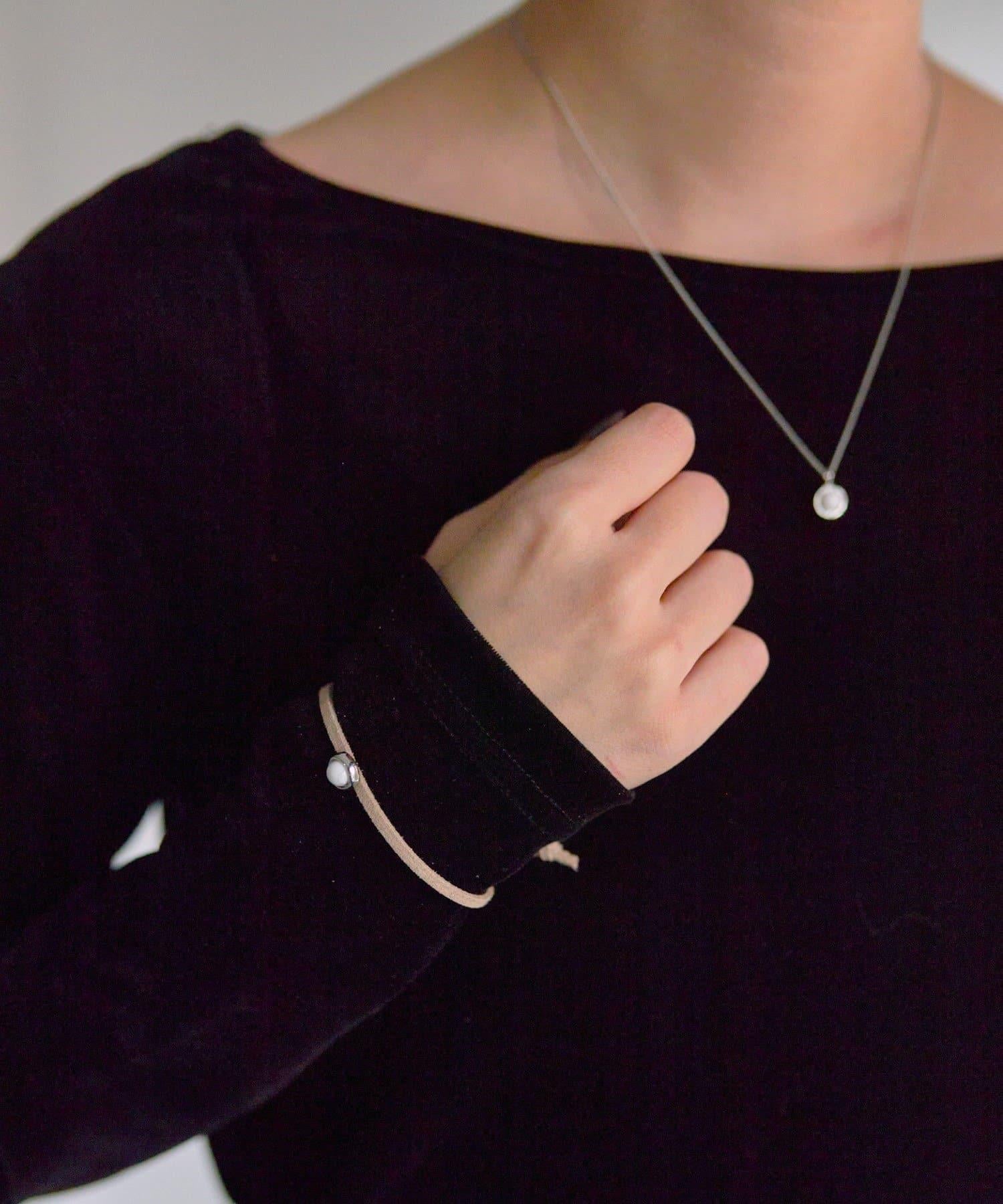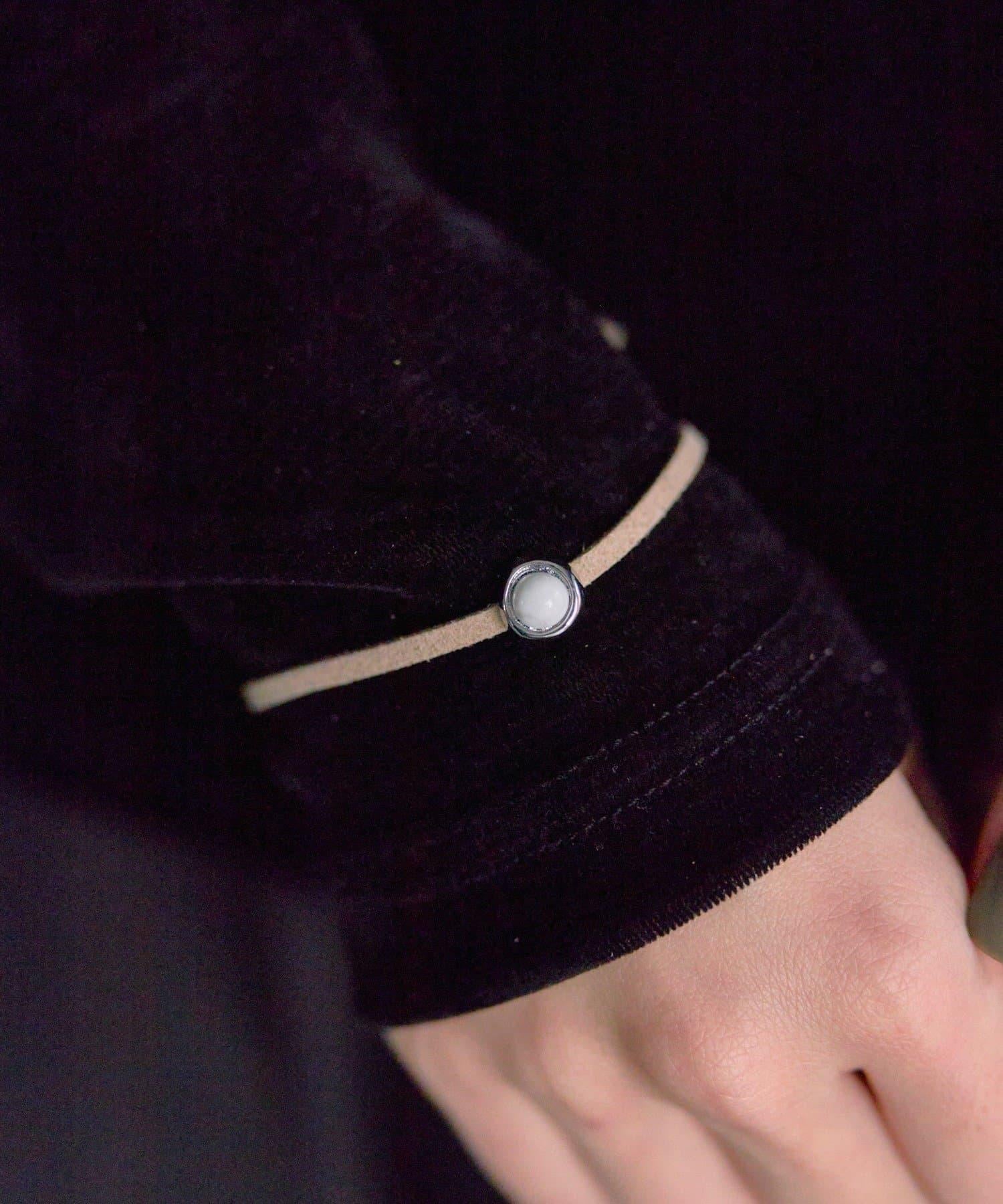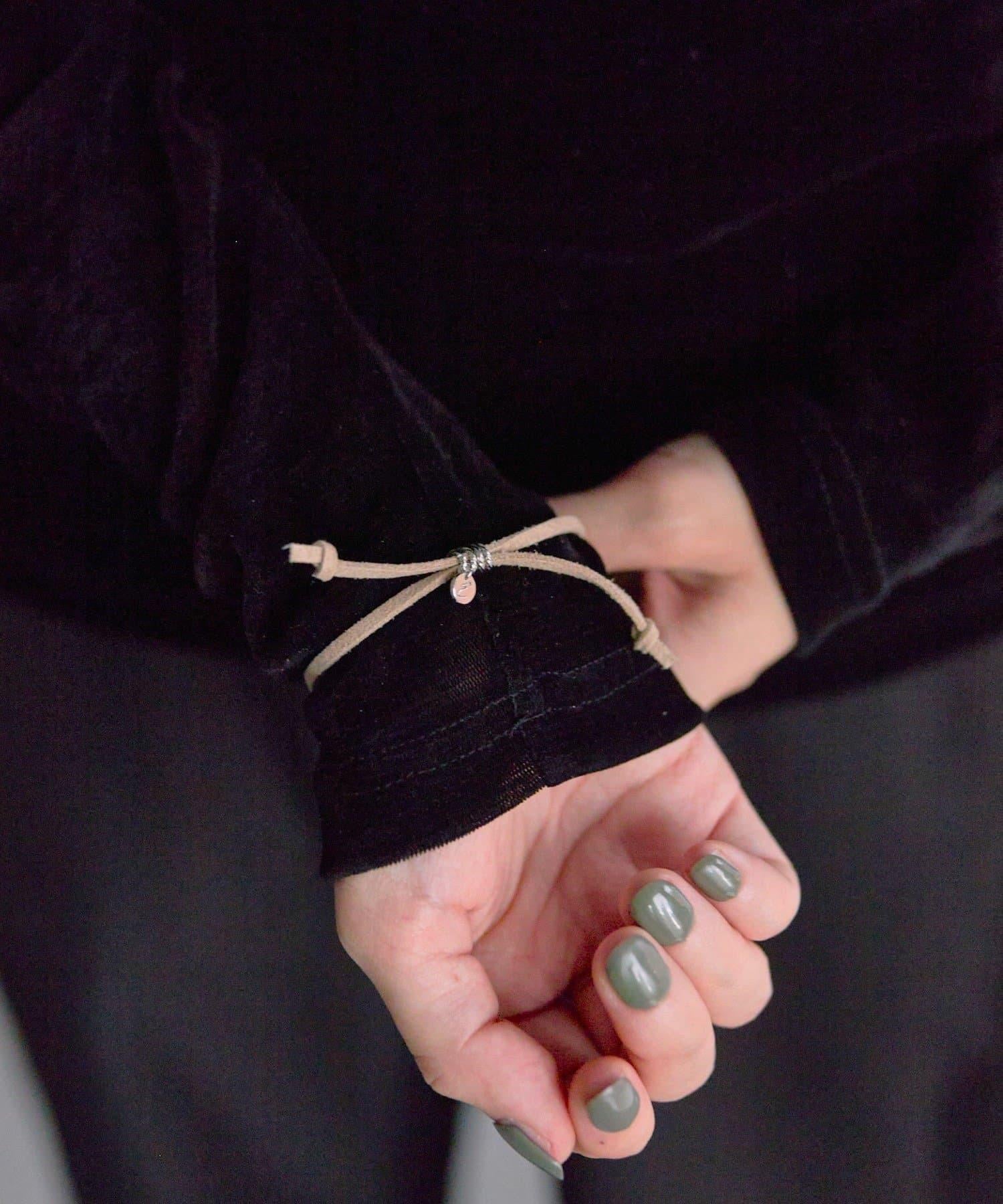 為手部增添微妙的光澤。彩色凸圓形小手鐲 "配麂皮帶。