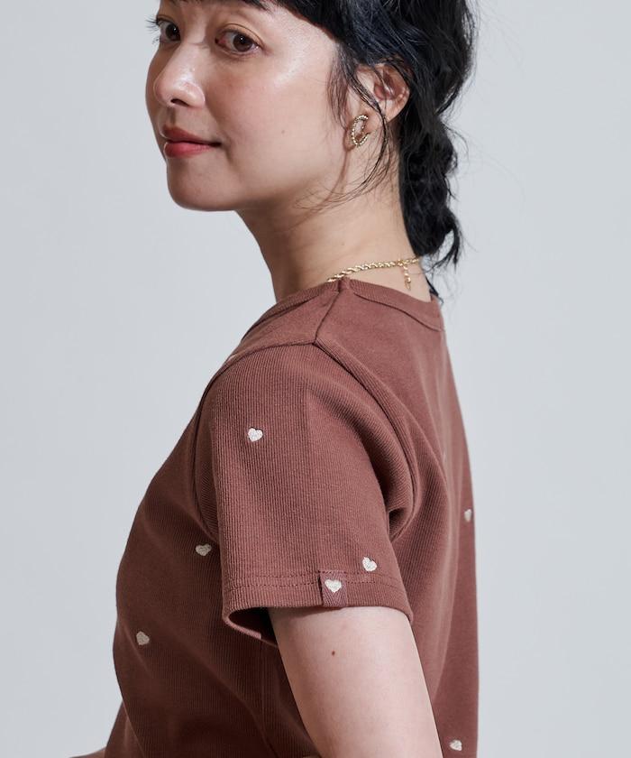 可愛的 T 恤上散佈著小巧的心形刺繡。