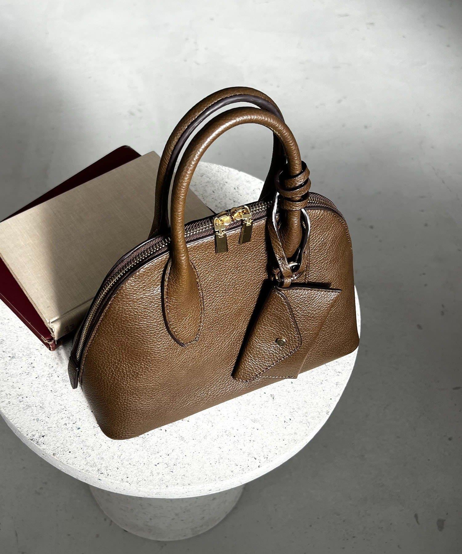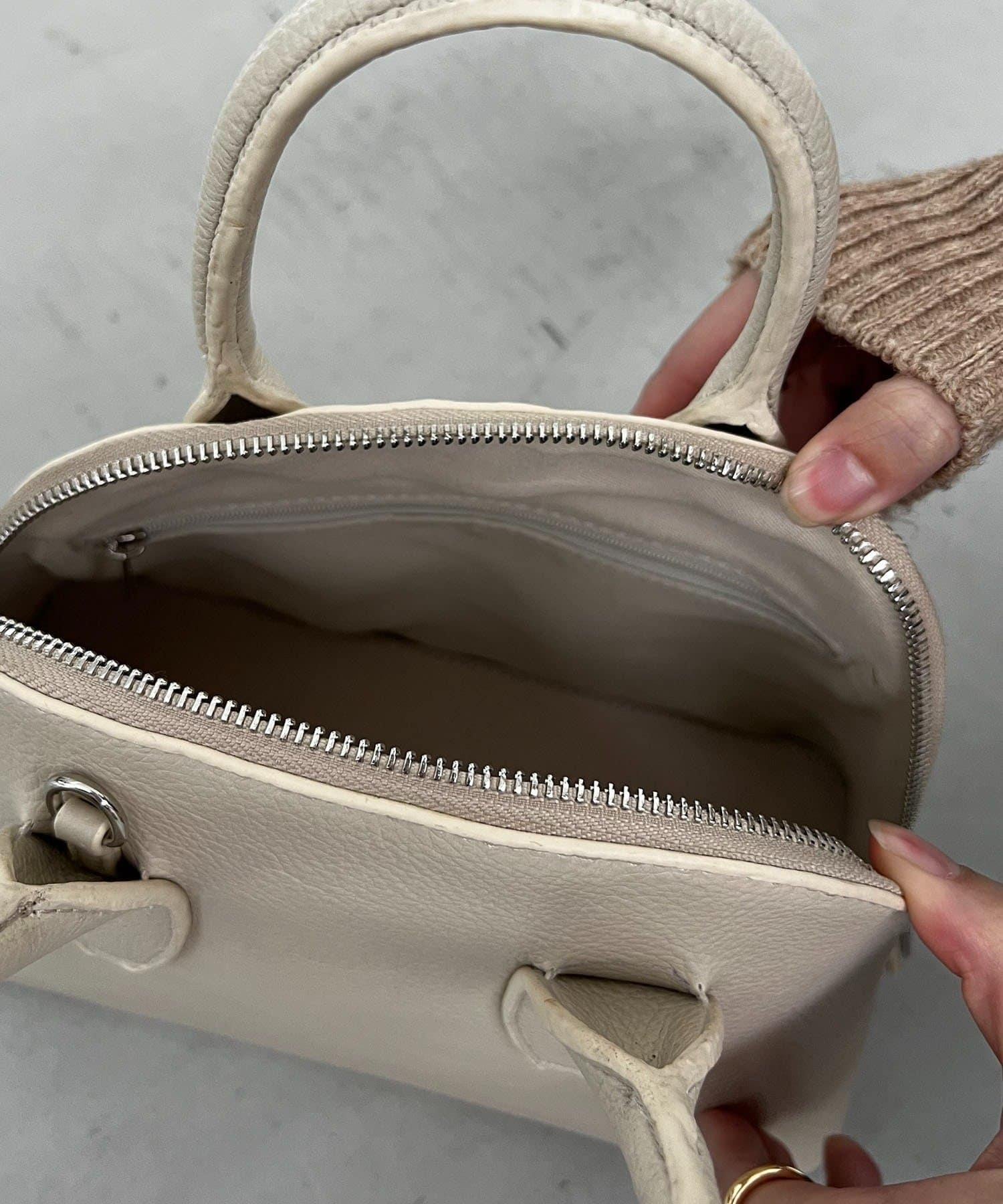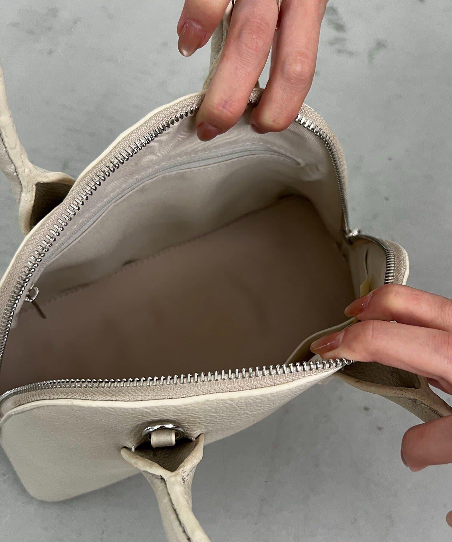 這款迷你波士頓包採用 W 型拉鍊開合,方便開合。