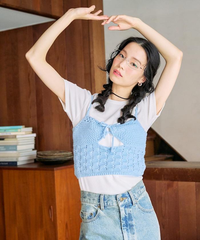 如果作為內搭,搭配半身裙或吊帶裙,華夫格的休閒感會讓人感覺不那麼甜膩。