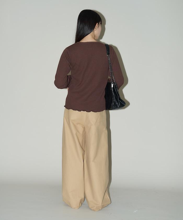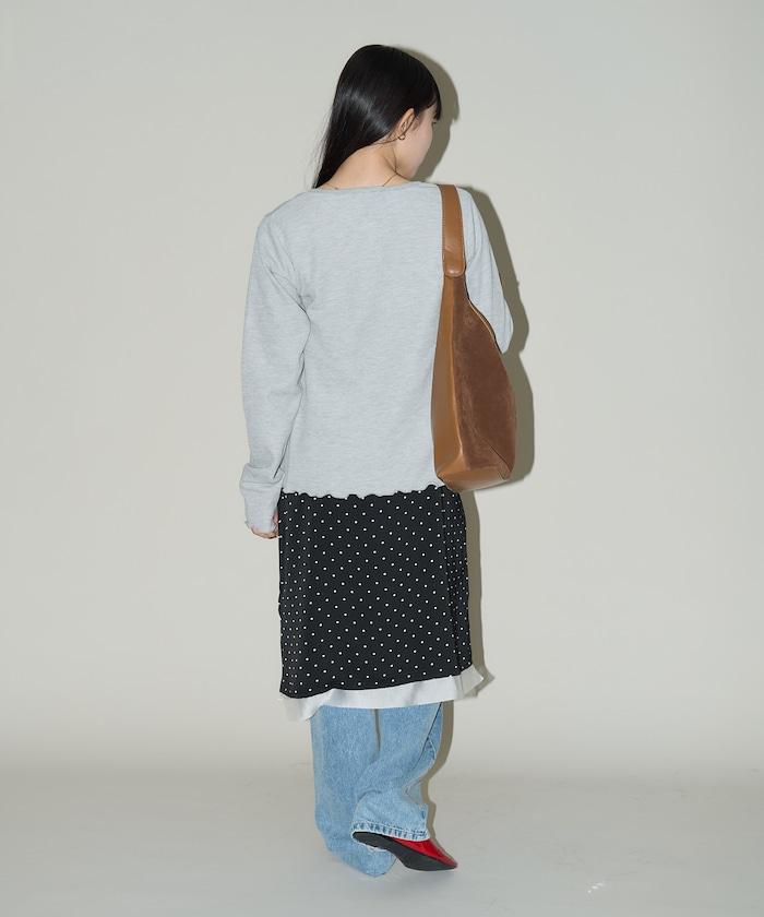 如果搭配寬大的下裝,淡化休閒感,就能獲得可愛寬鬆的造型。
