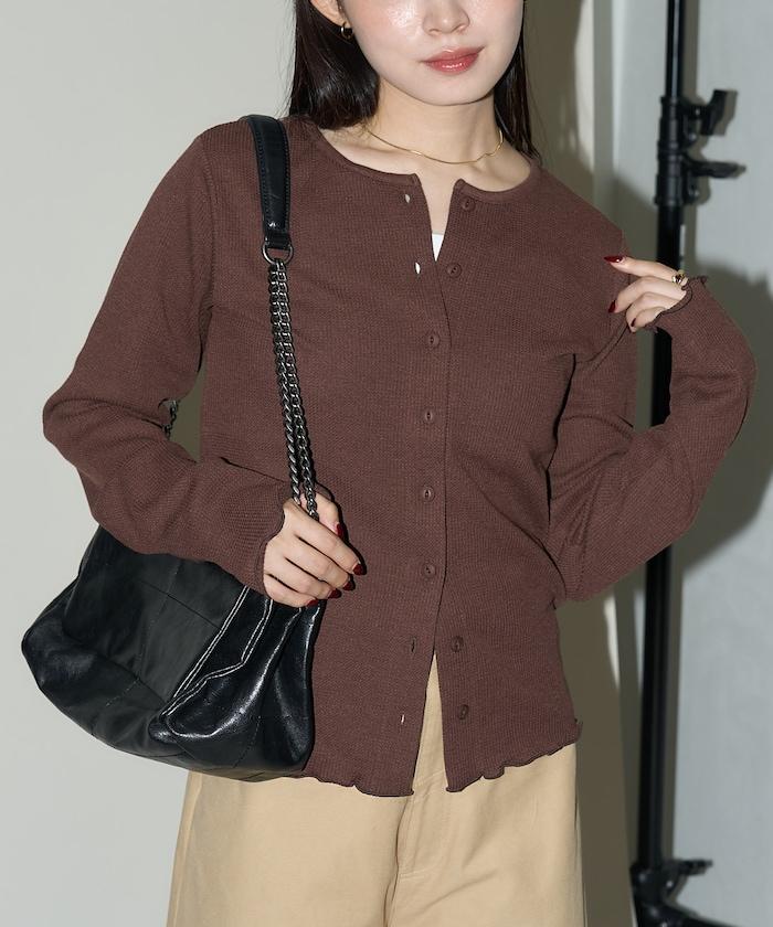 下襬和袖口的波浪形圓潤處理為這款簡約單品增添了微妙的亮點。