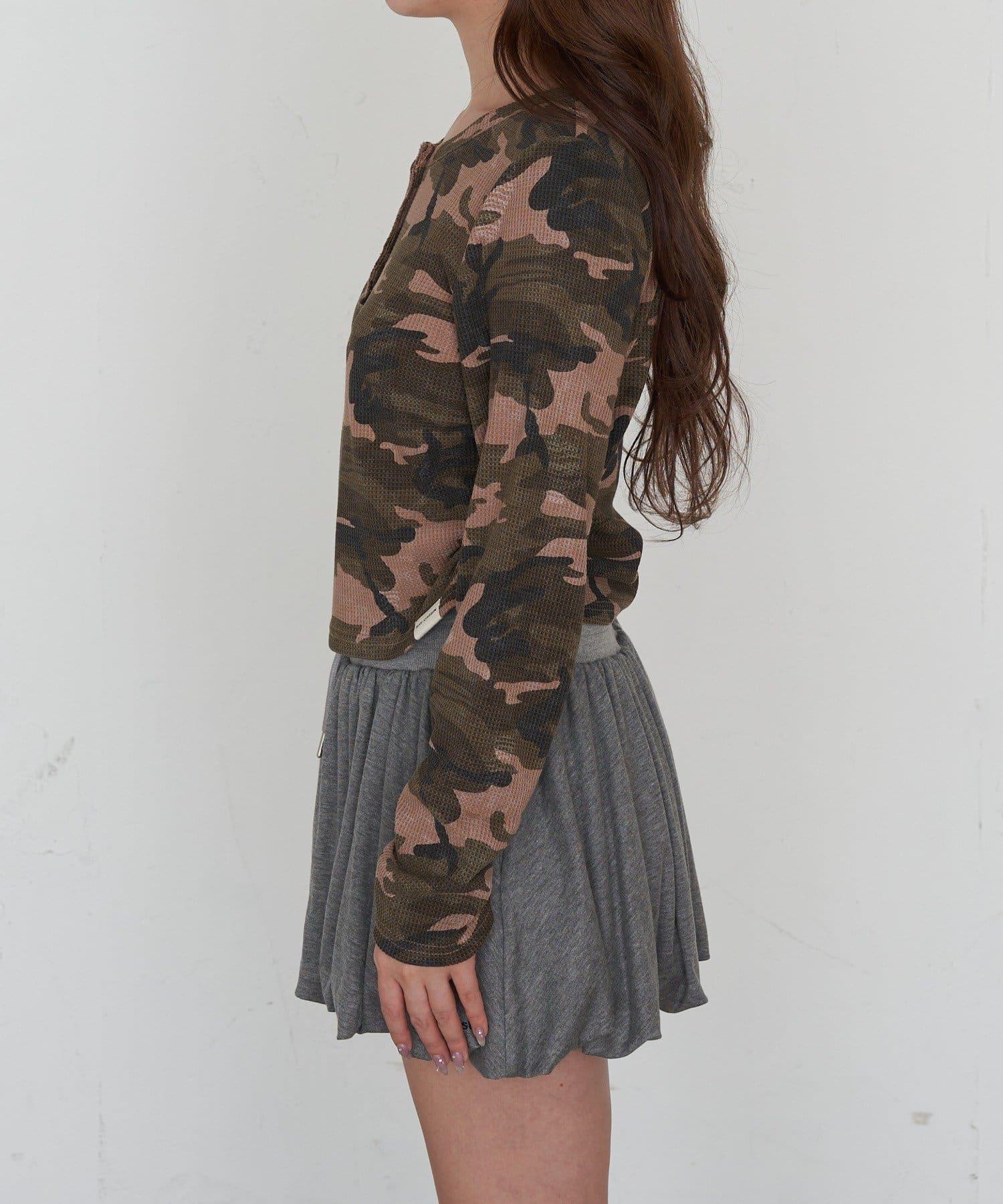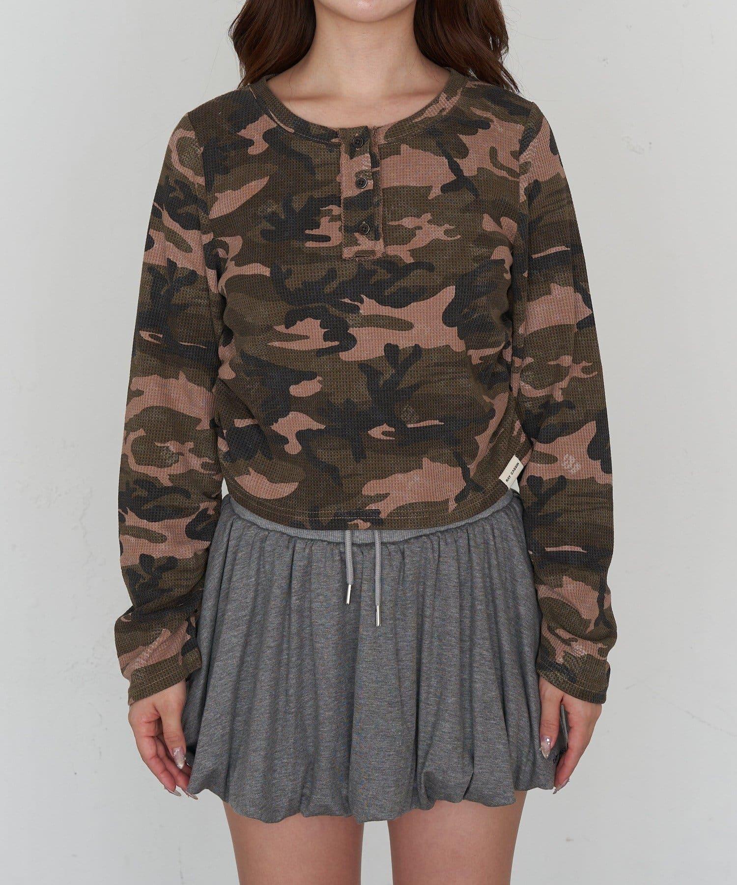 迷彩華夫格亨利領T恤