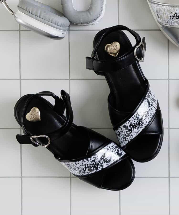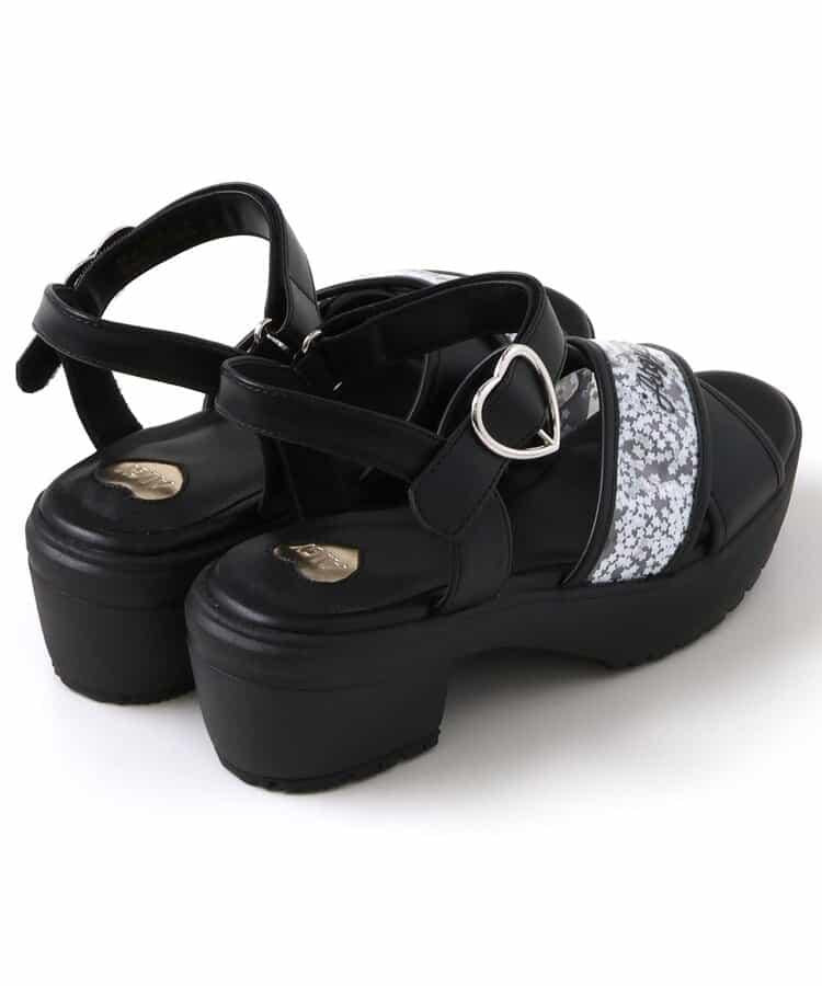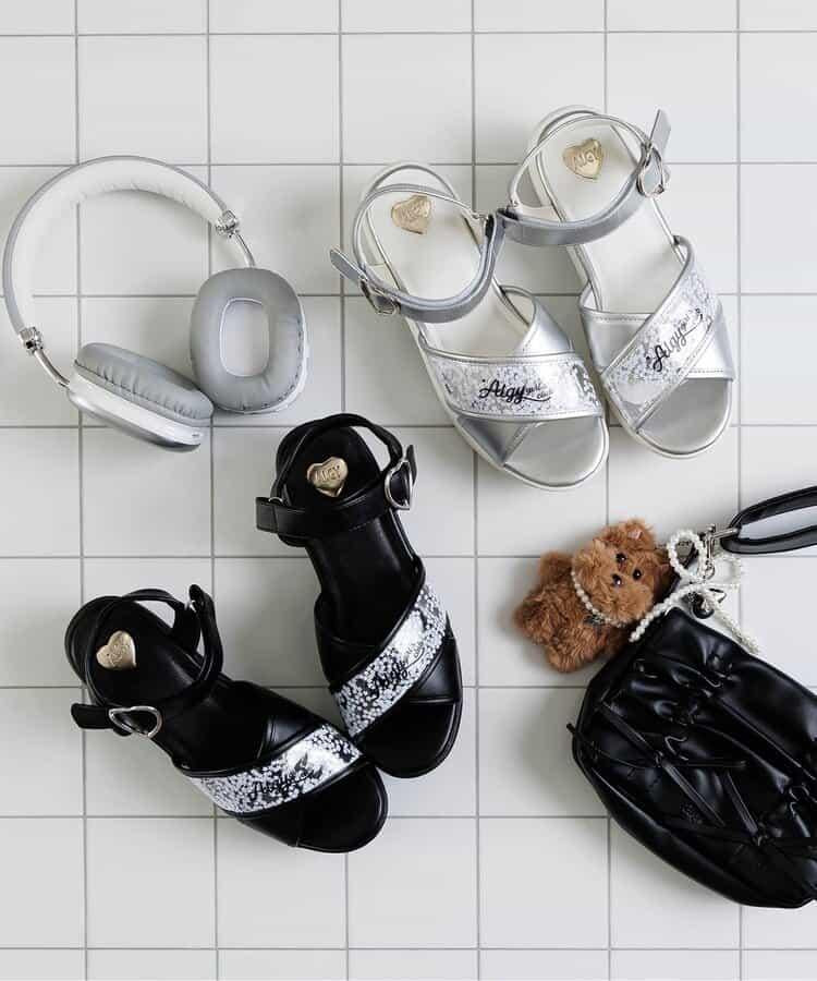 透明肩帶和亮片的搭配酷感十足,俏皮可愛。這款涼鞋搭配簡單的腰帶和組合即可輕鬆穿著。