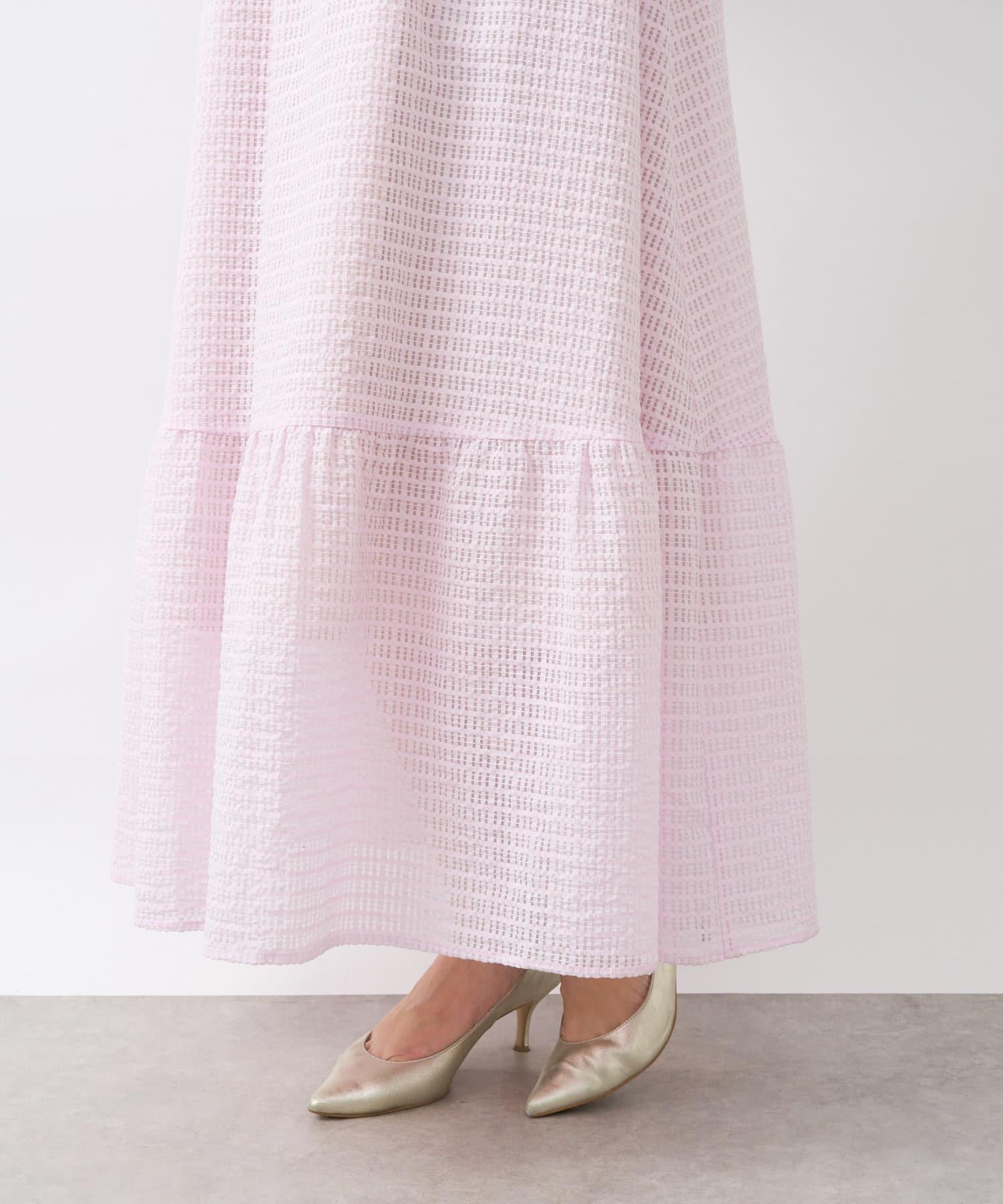 層疊裙襬向下擺延伸,給人輕盈、柔美的印象,下襬隨著行走搖擺,更顯優雅。