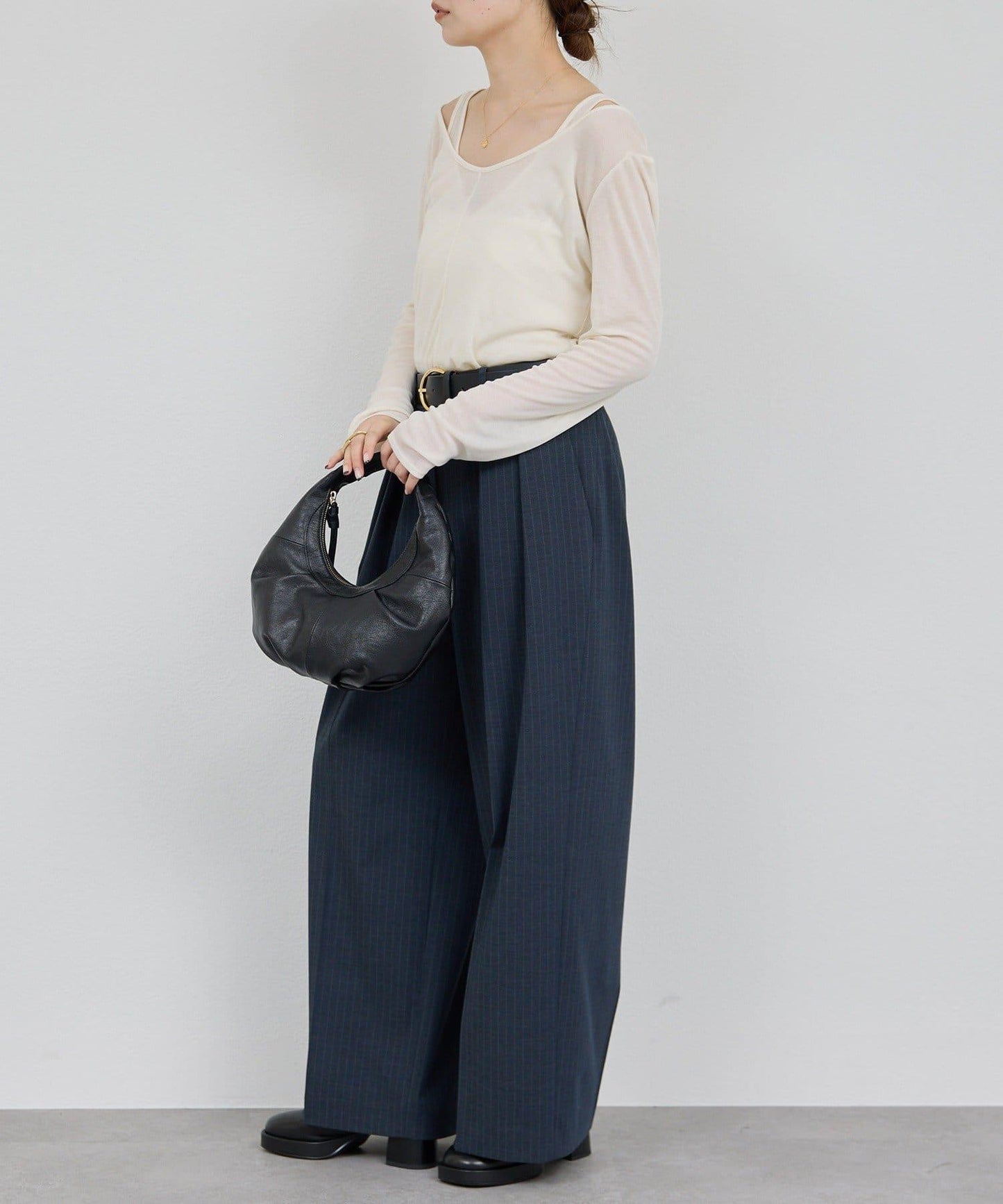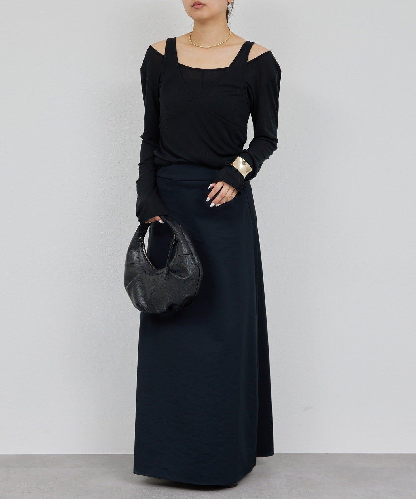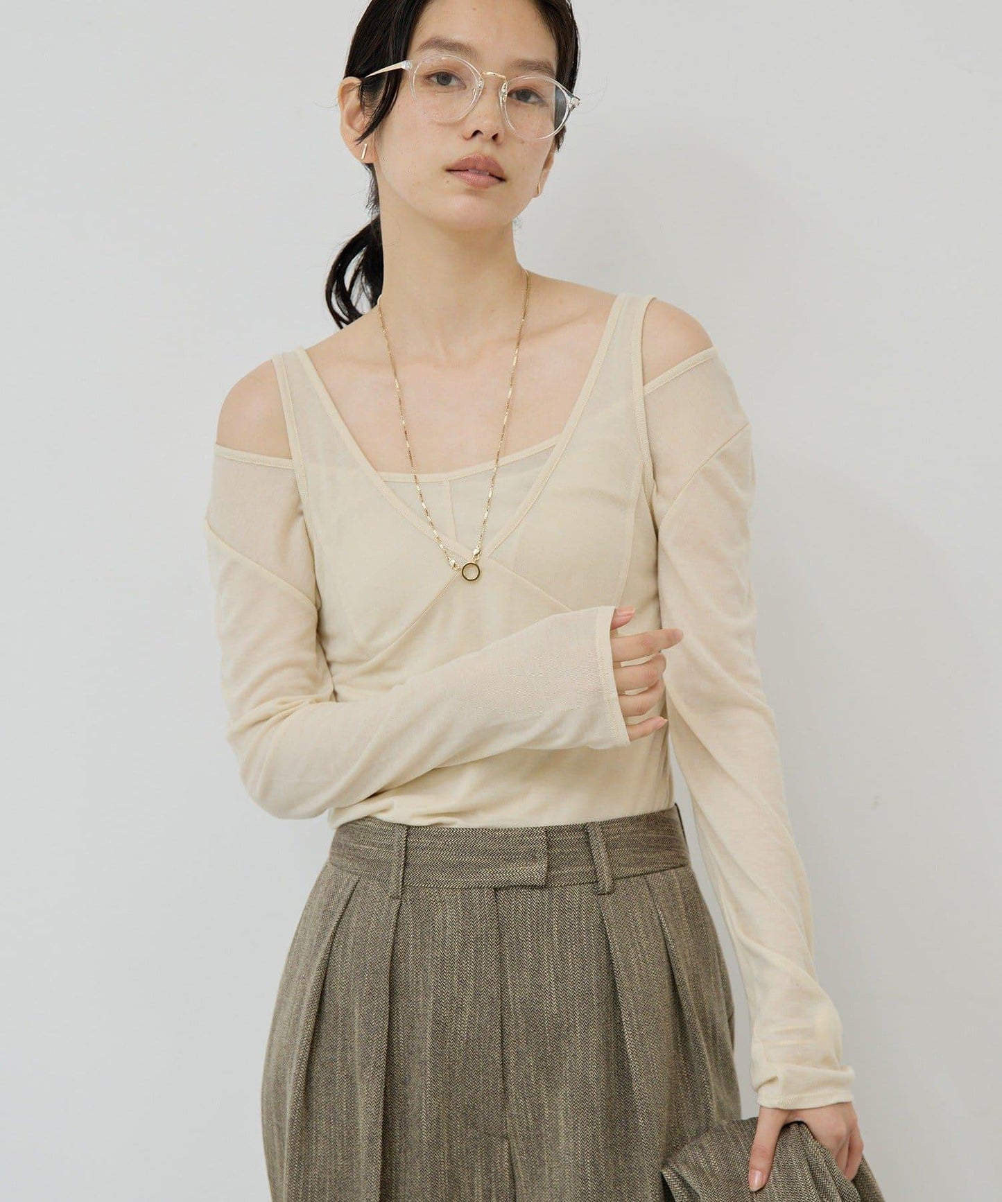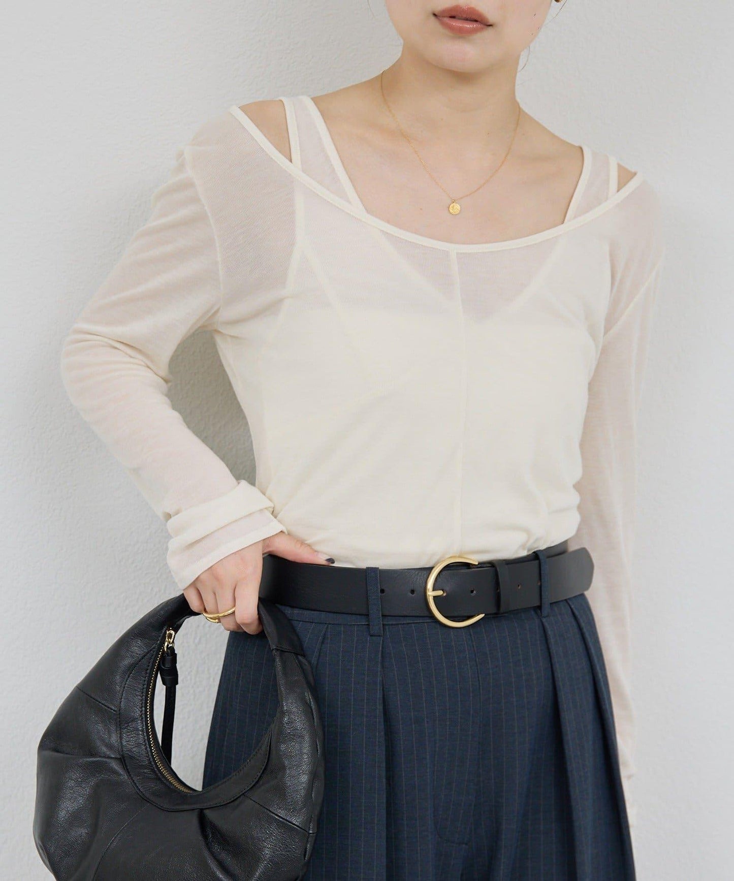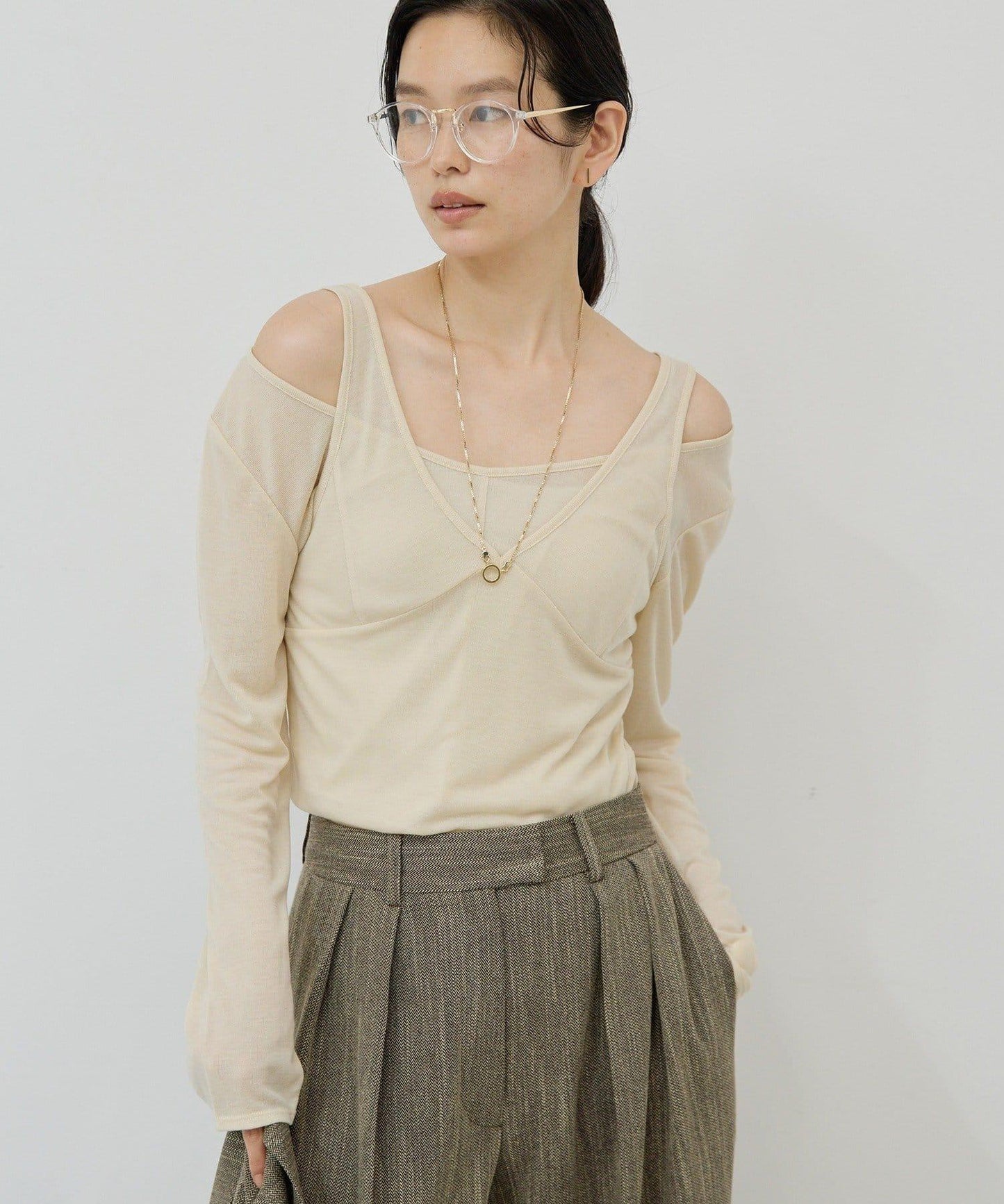 微深的領口設計讓鎖骨一覽無餘。