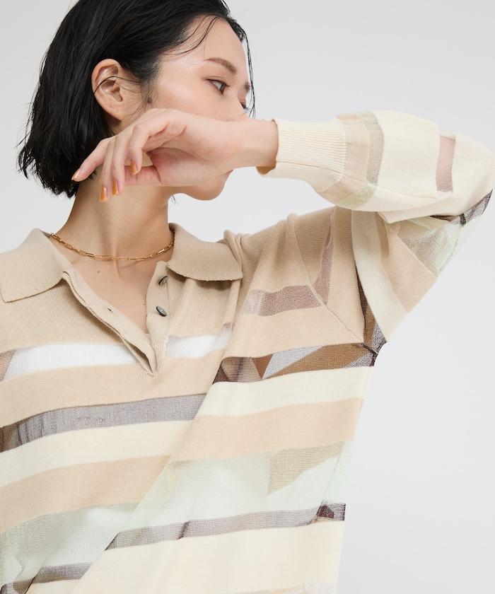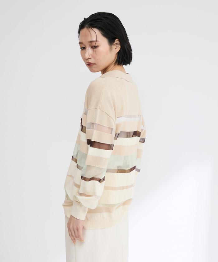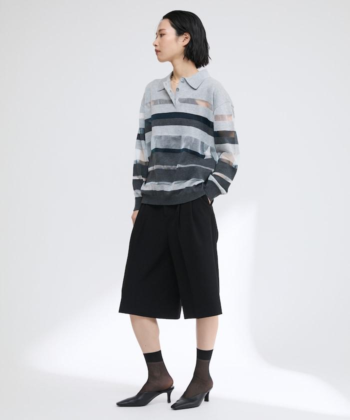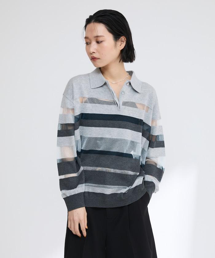 春夏季細紗與透視紗相結合的 Polo 針織襯衫。