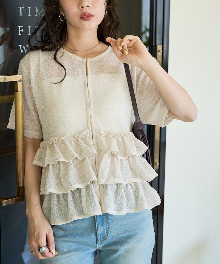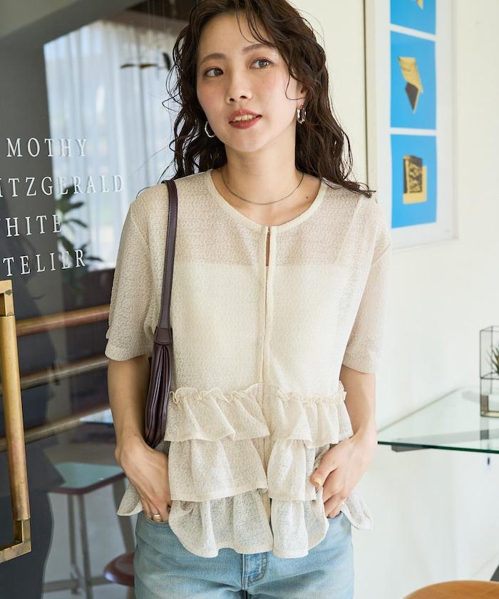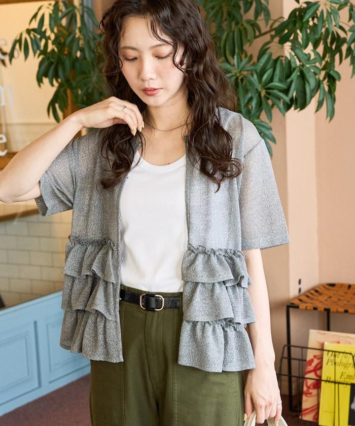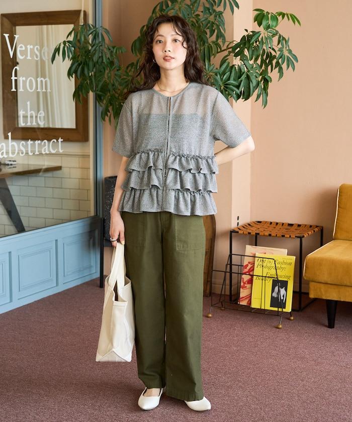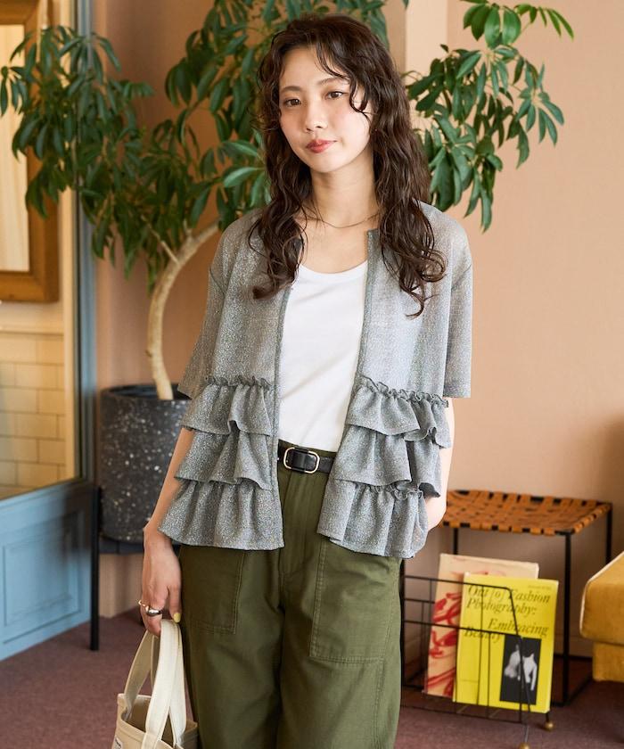 將前襟敞開穿著,可充分展現流蘇的存在感,搭配單色或單調的內搭,可營造可愛的成人印象。