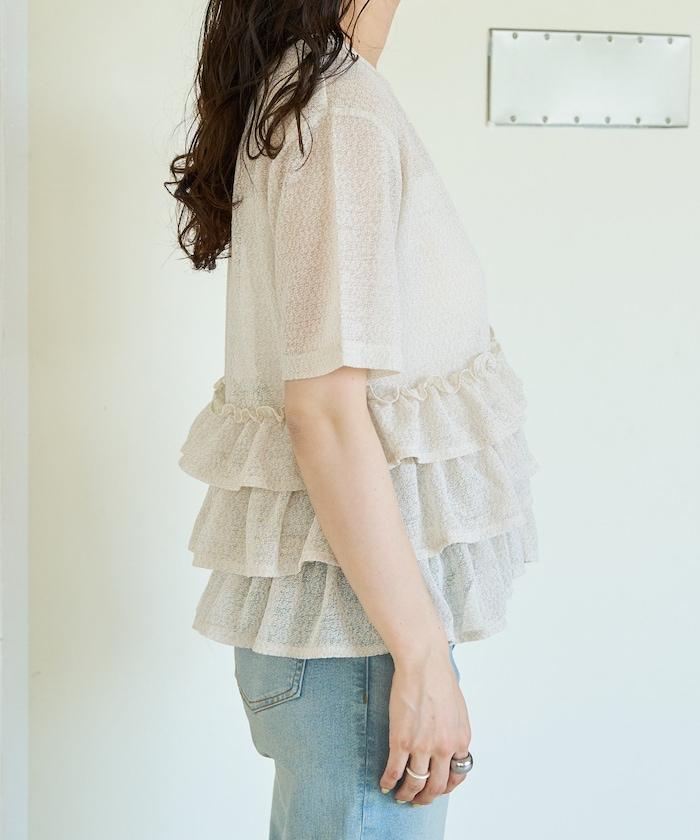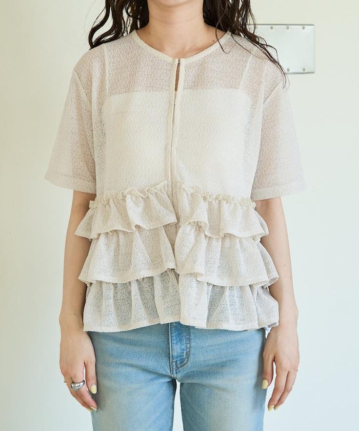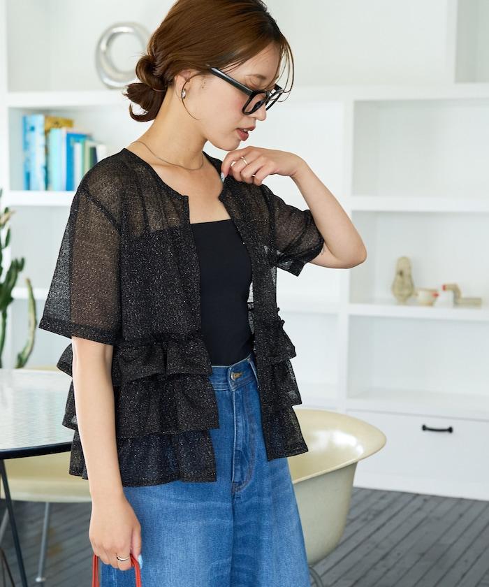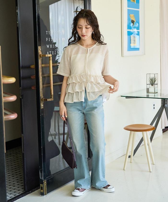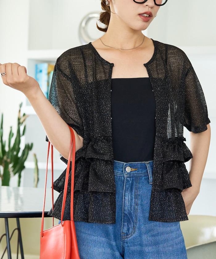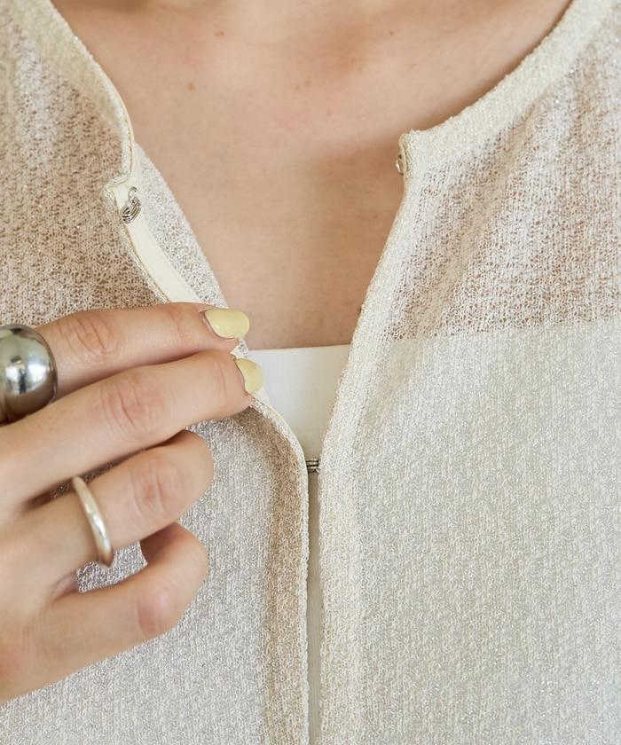 將前襟敞開穿著,可充分展現流蘇的存在感,搭配單色或單調的內搭,可營造可愛的成人印象。