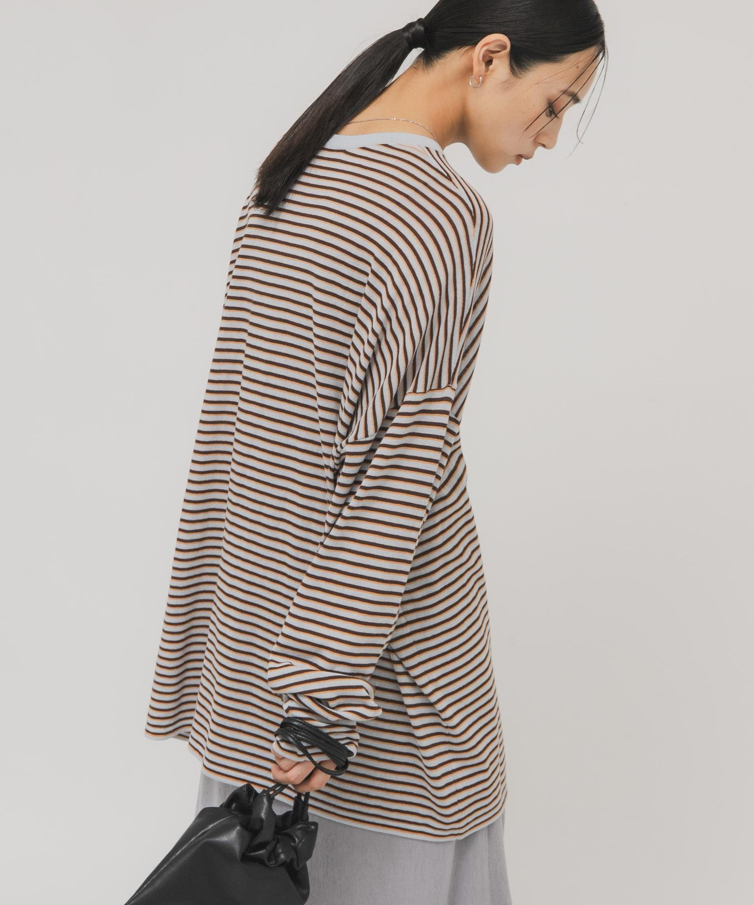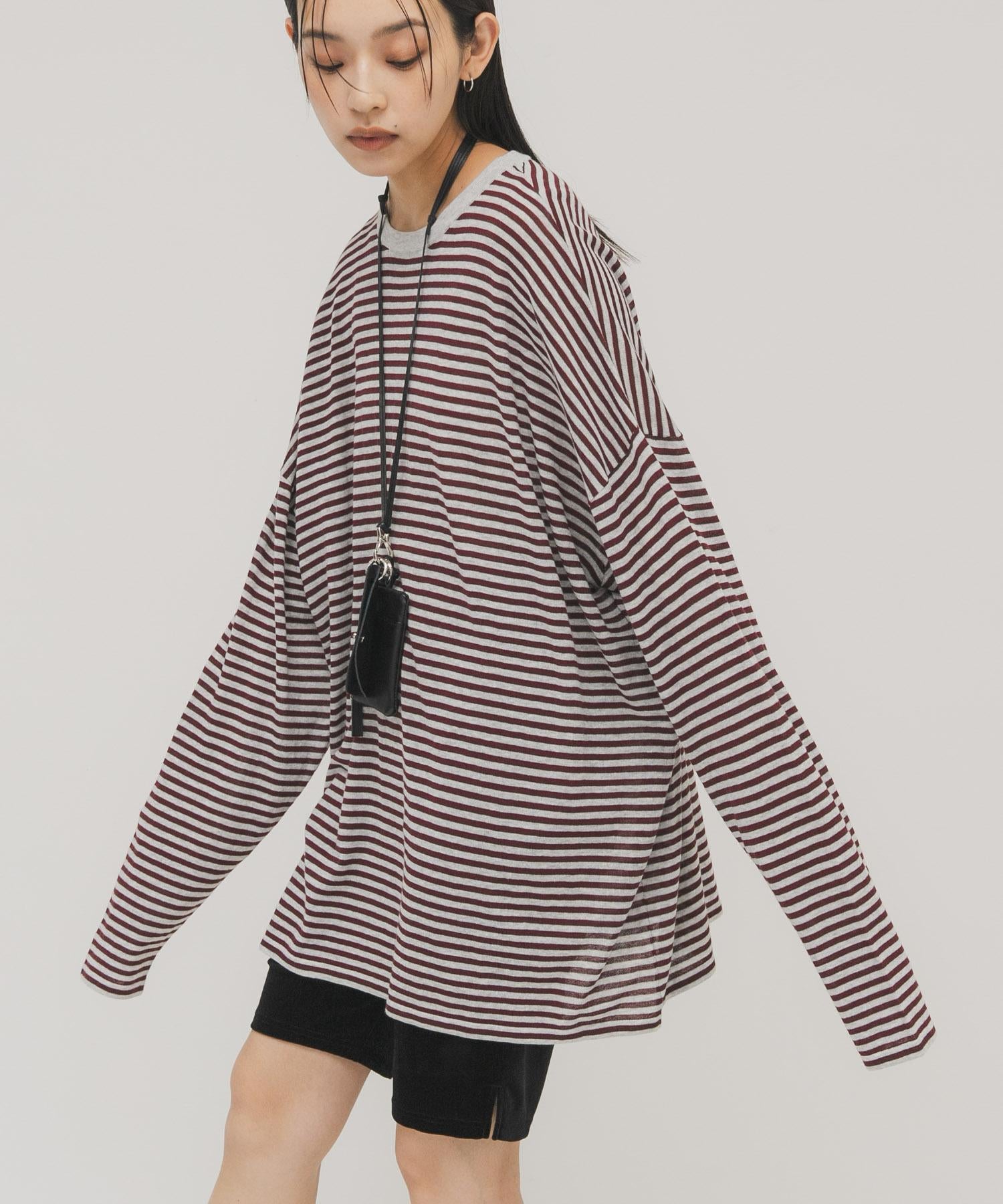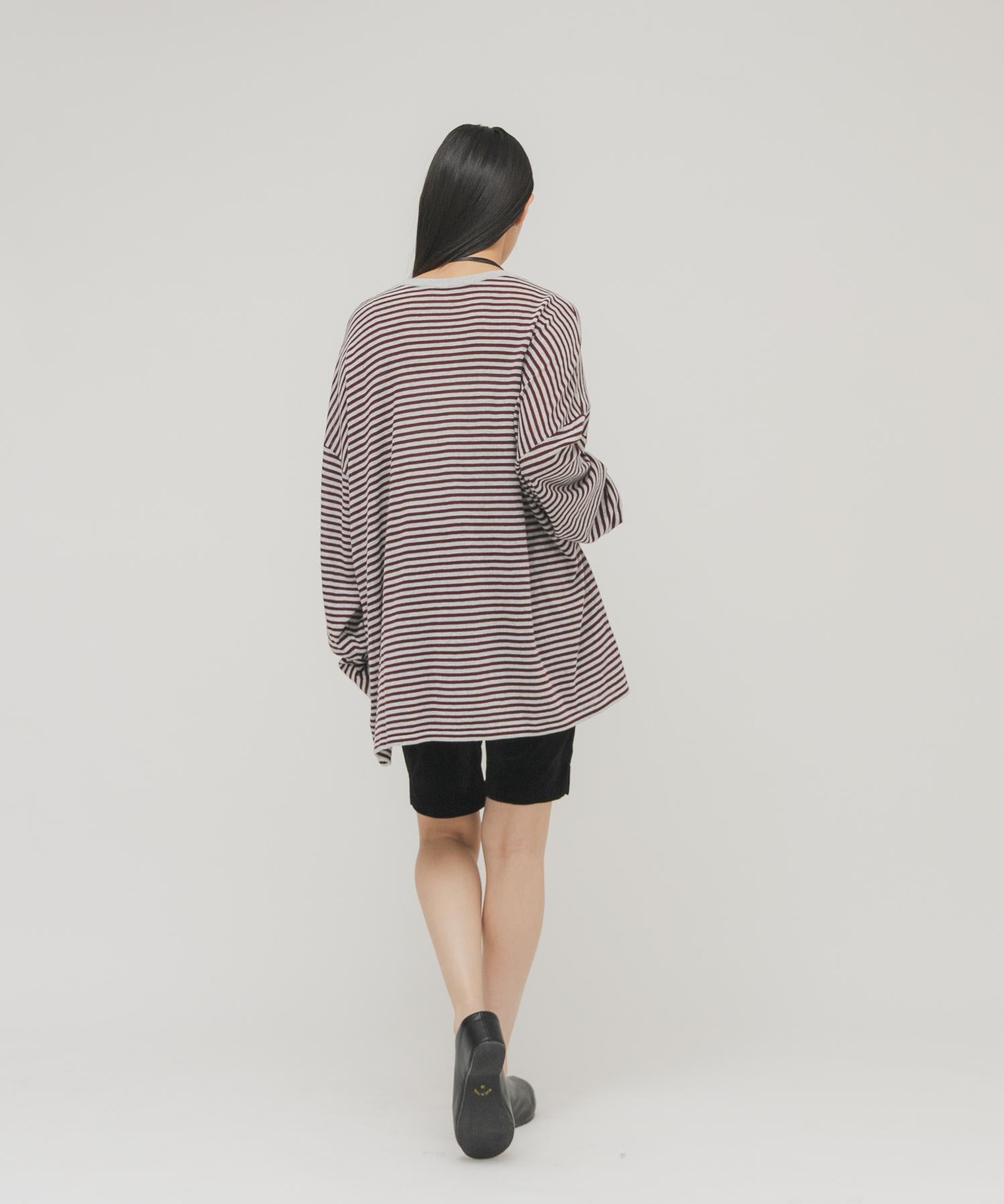 透紗條紋寬鬆針織上衣