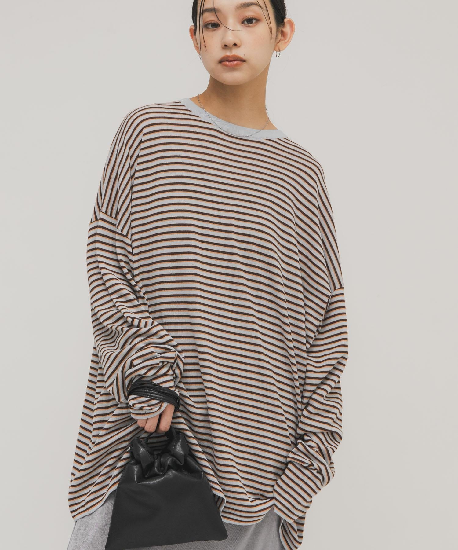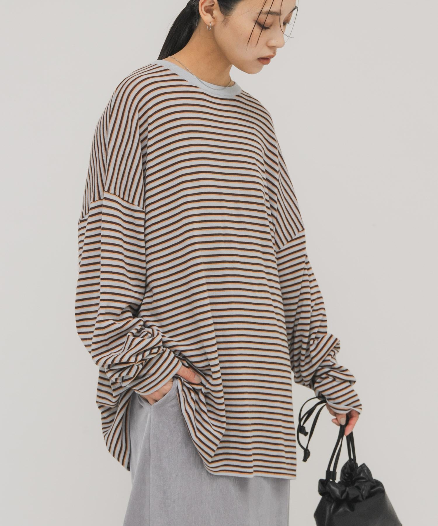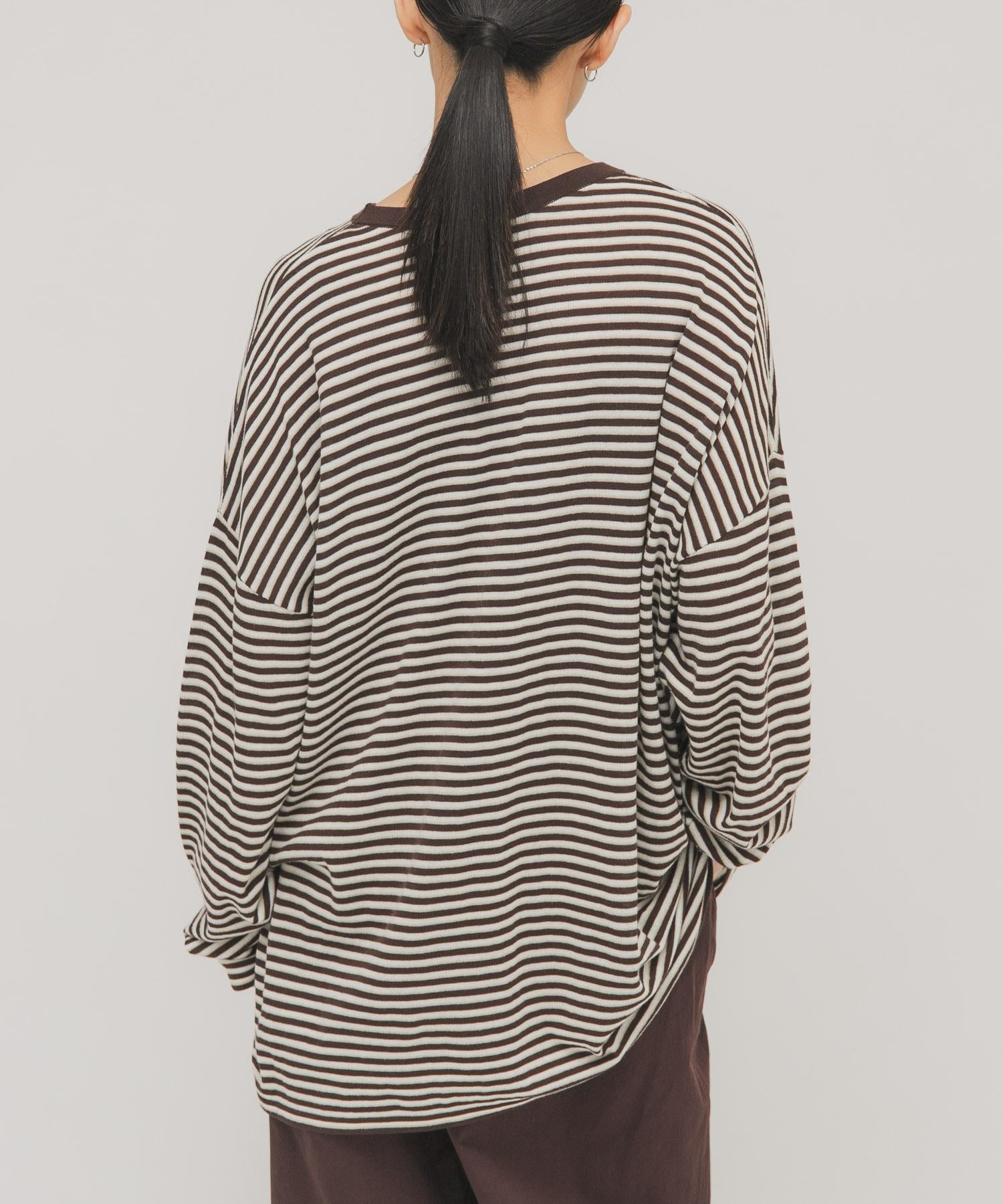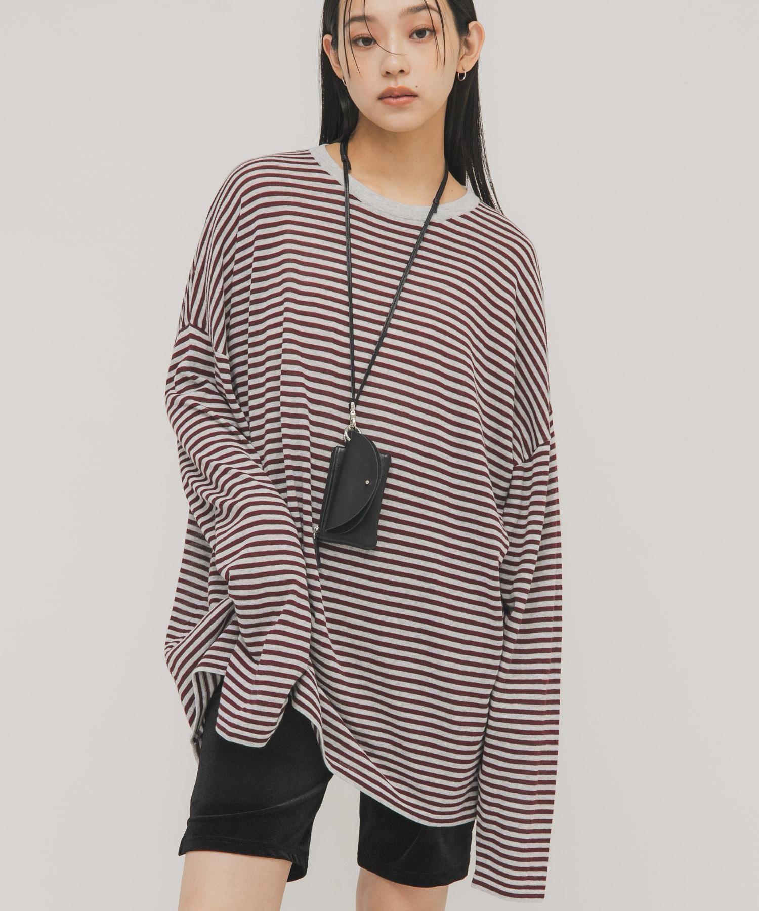 透紗條紋寬鬆針織上衣