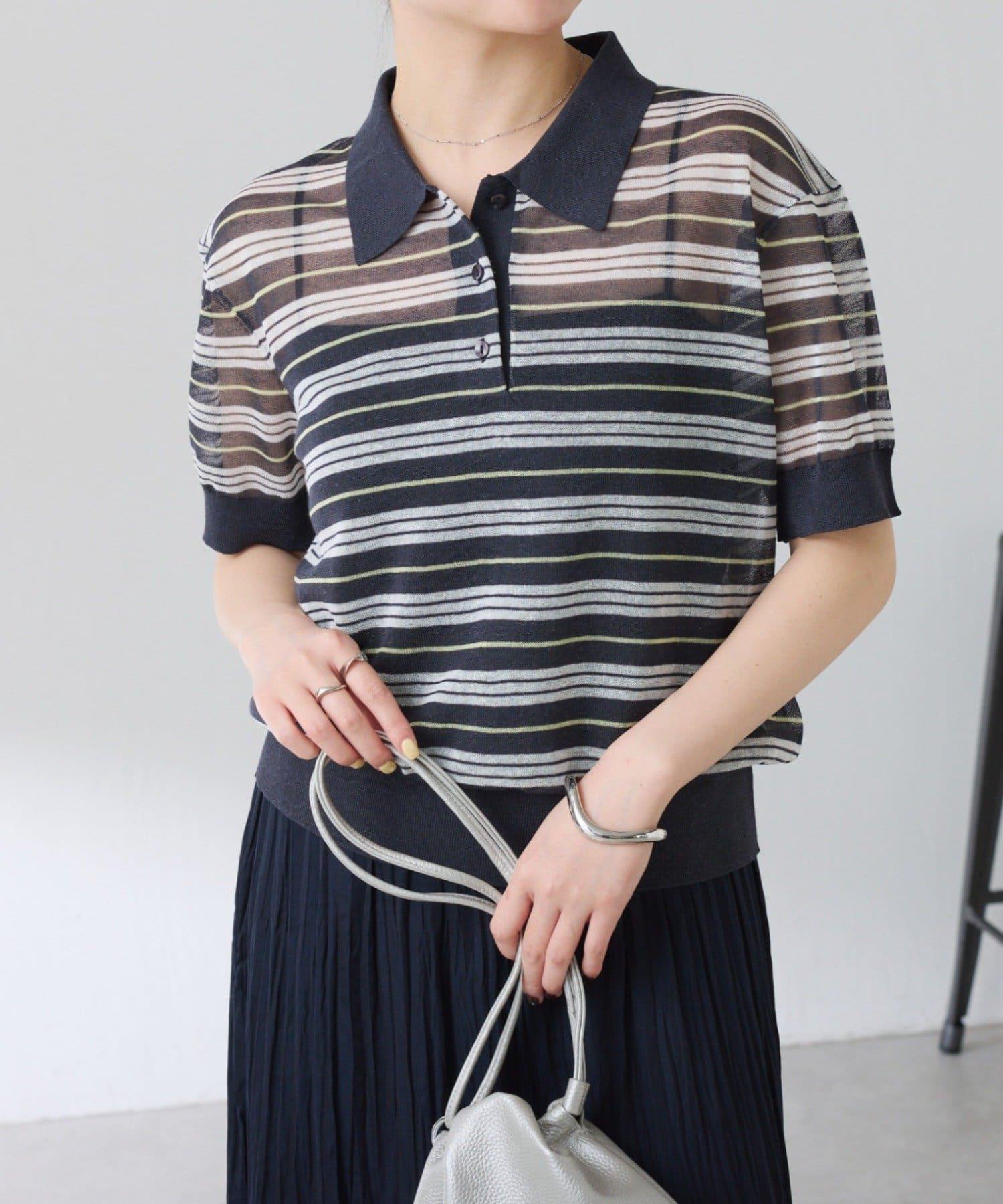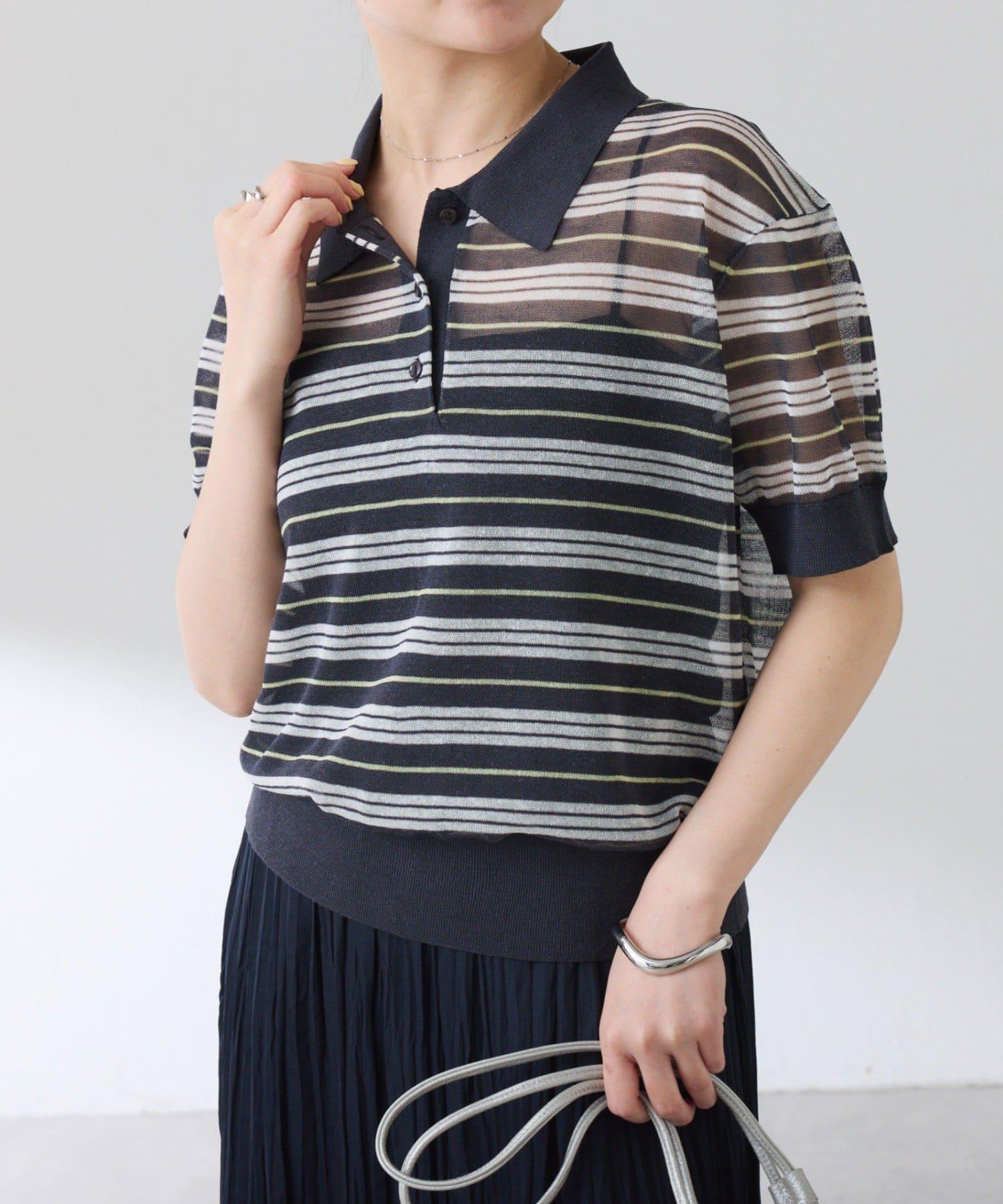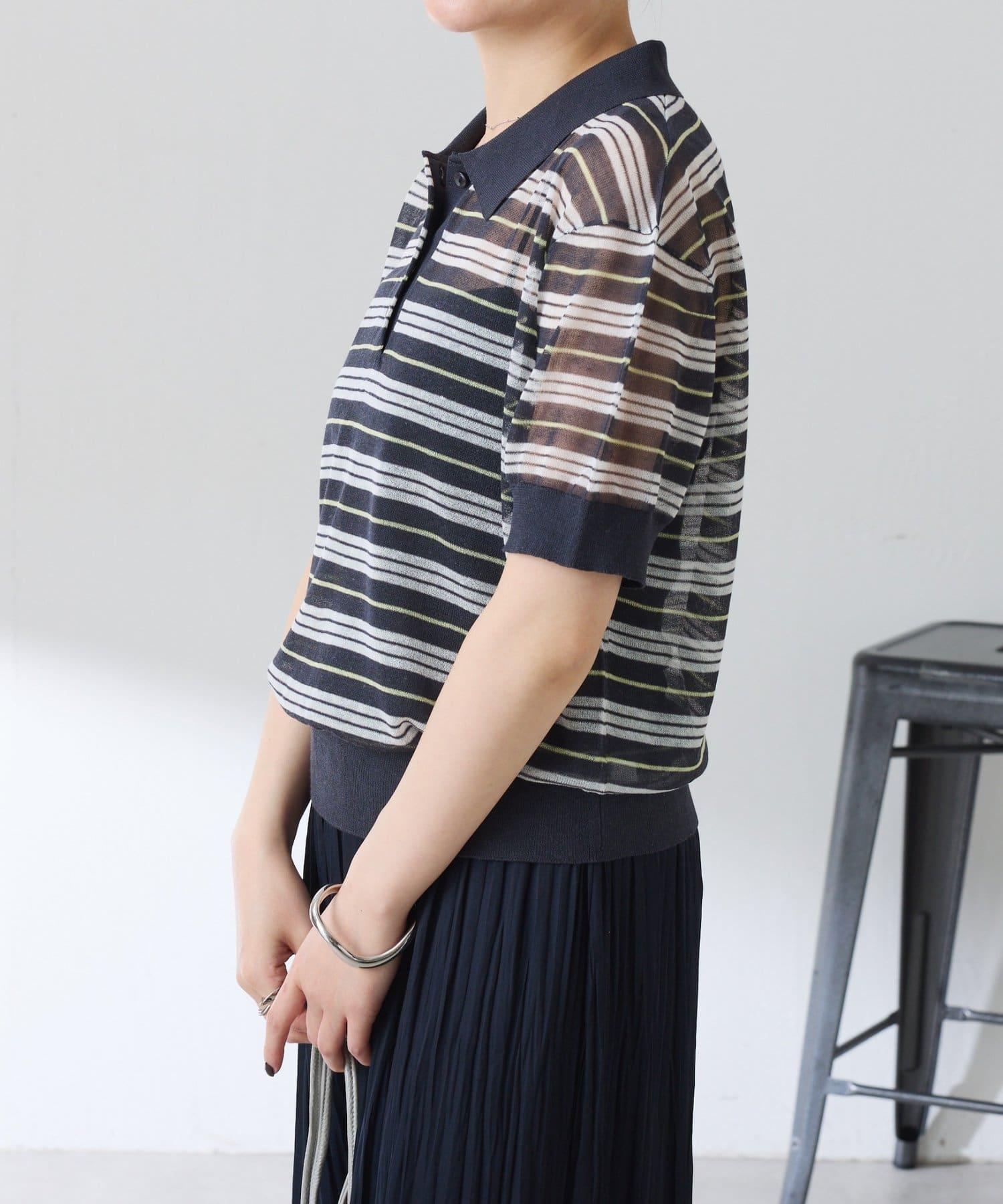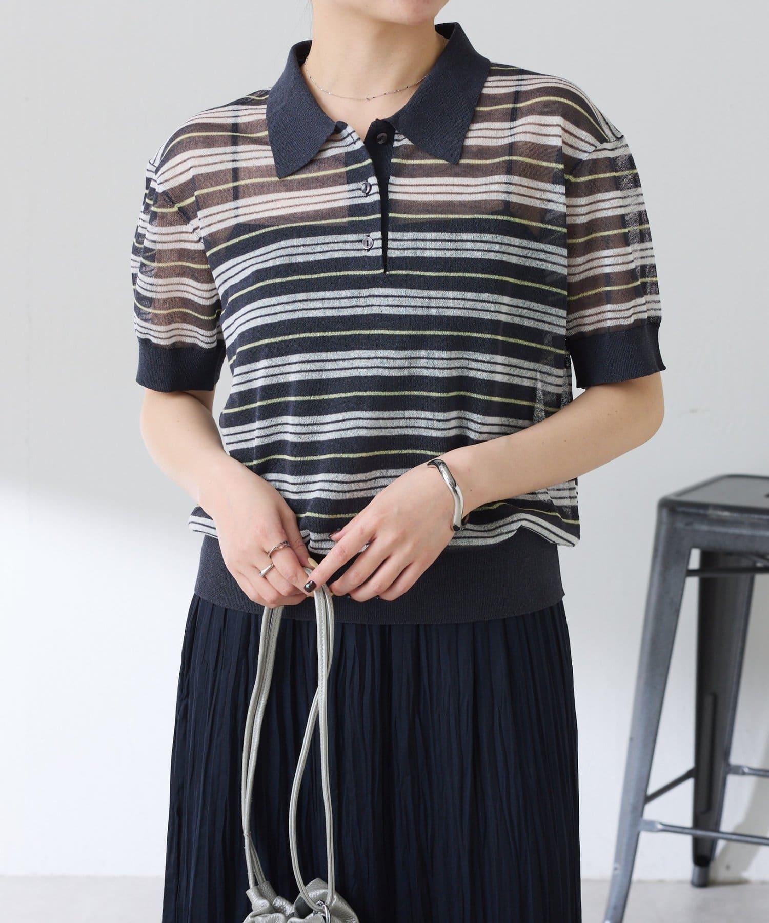 透視面料賦予 Polo 針織衫休閒感,給人更加隨意的印象。