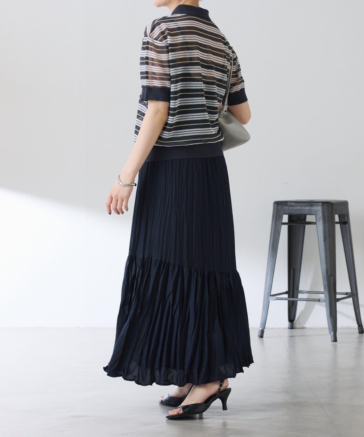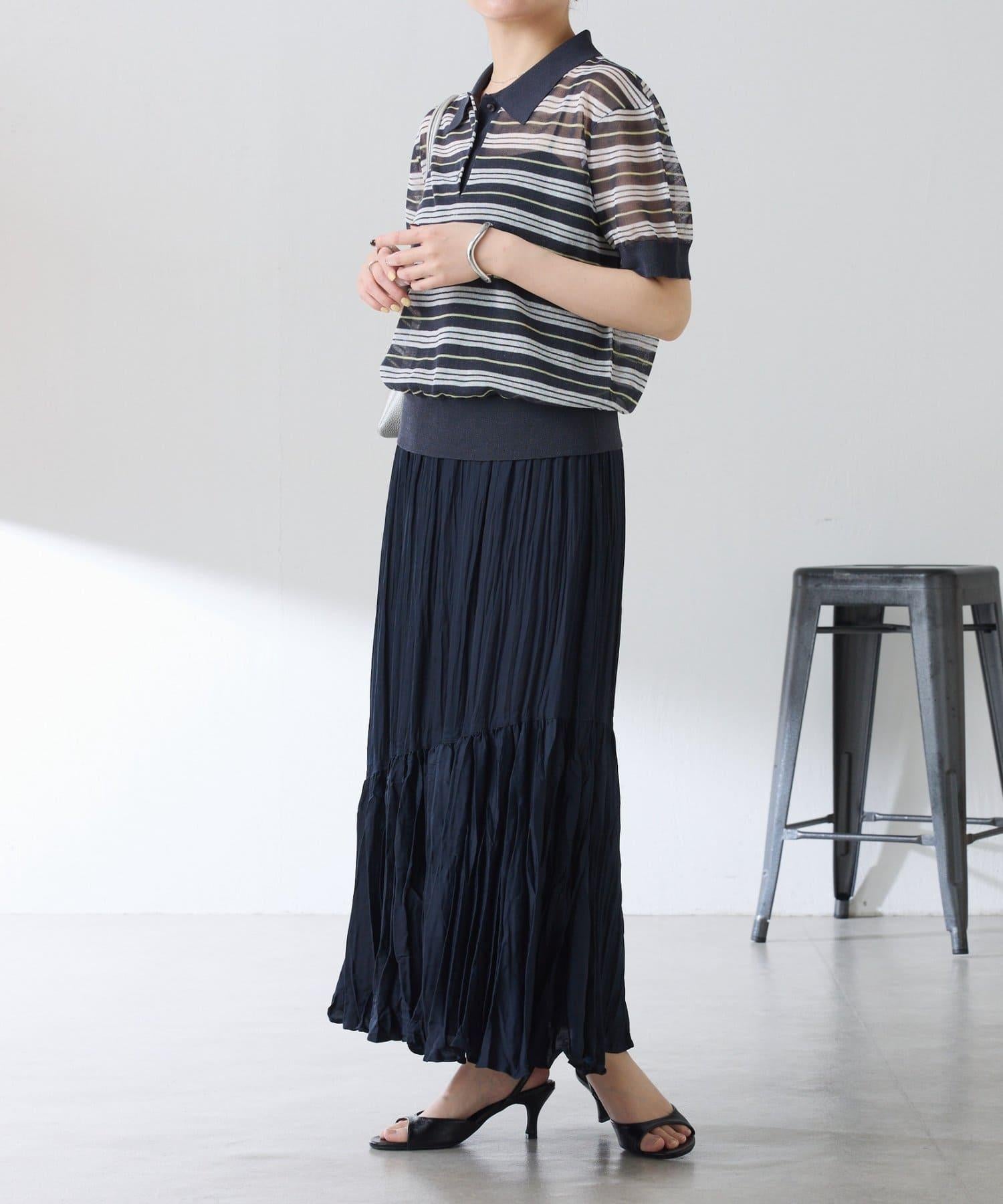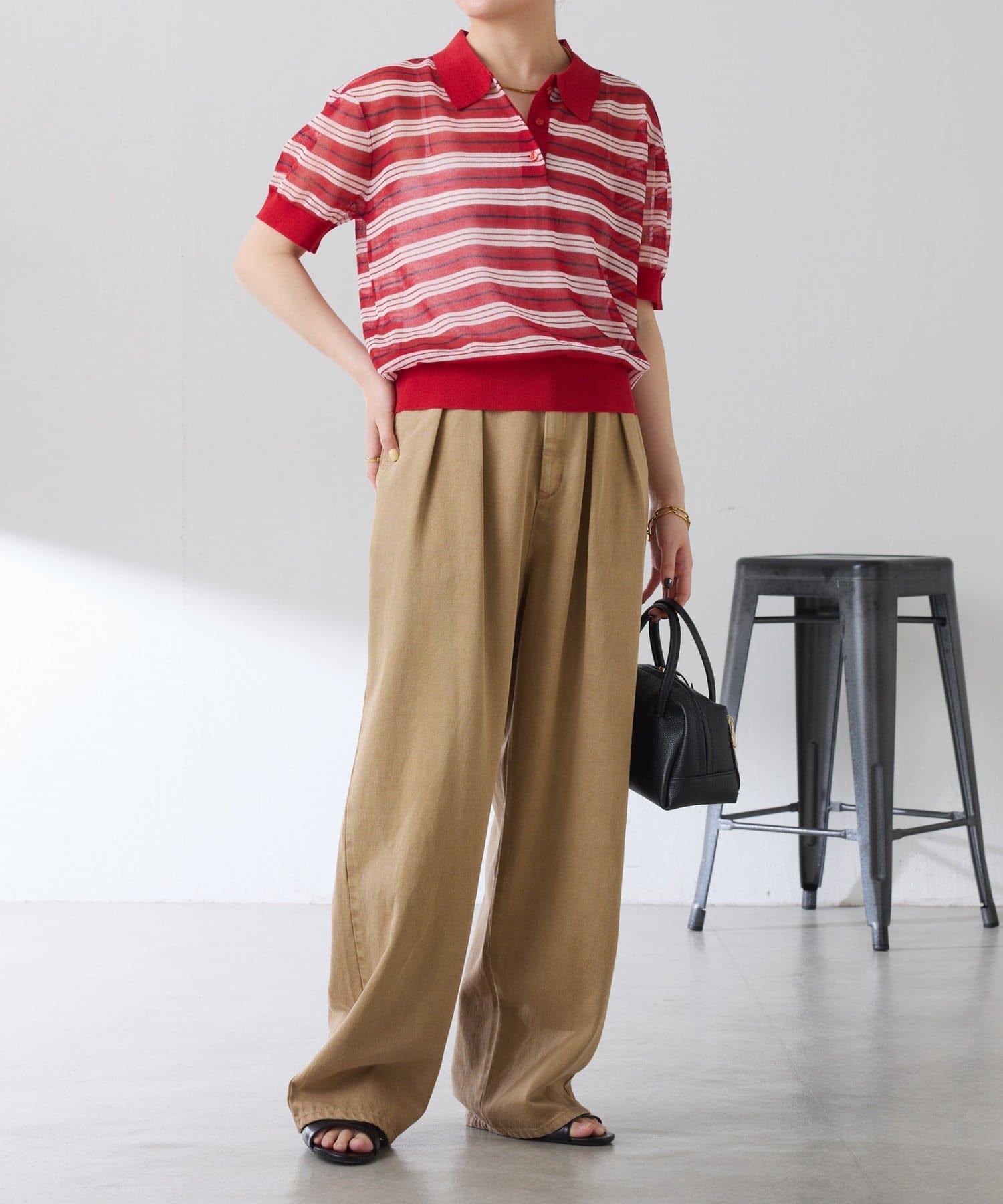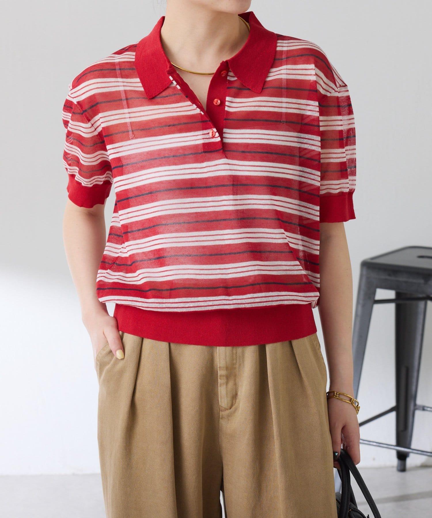 透視面料賦予 Polo 針織衫休閒感,給人更加隨意的印象。