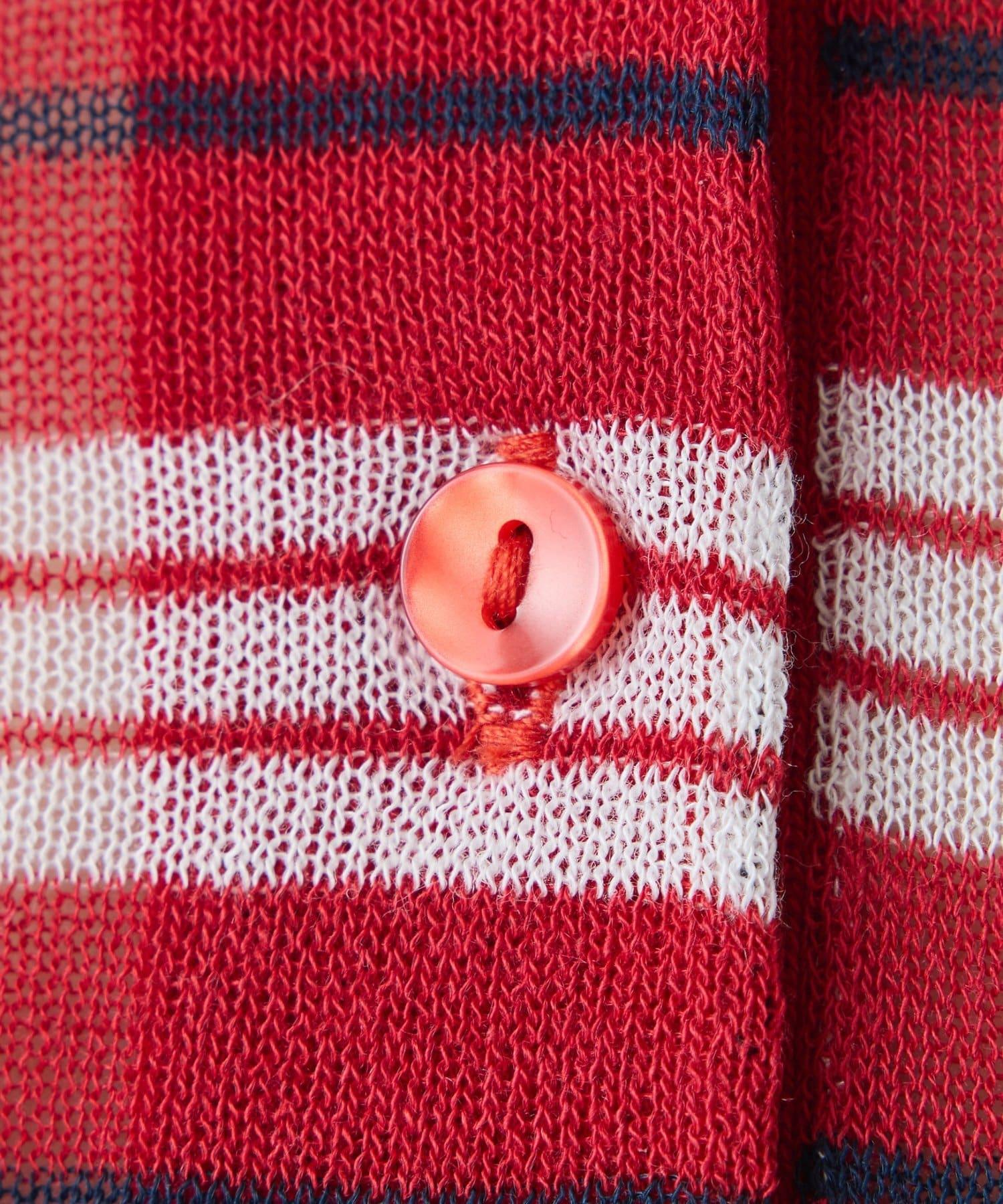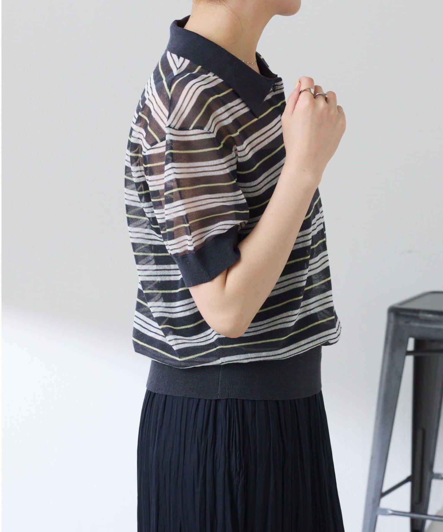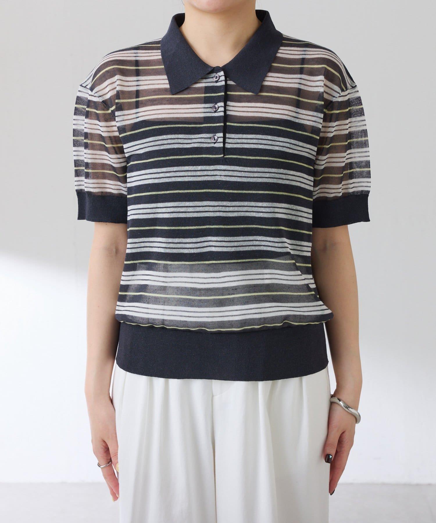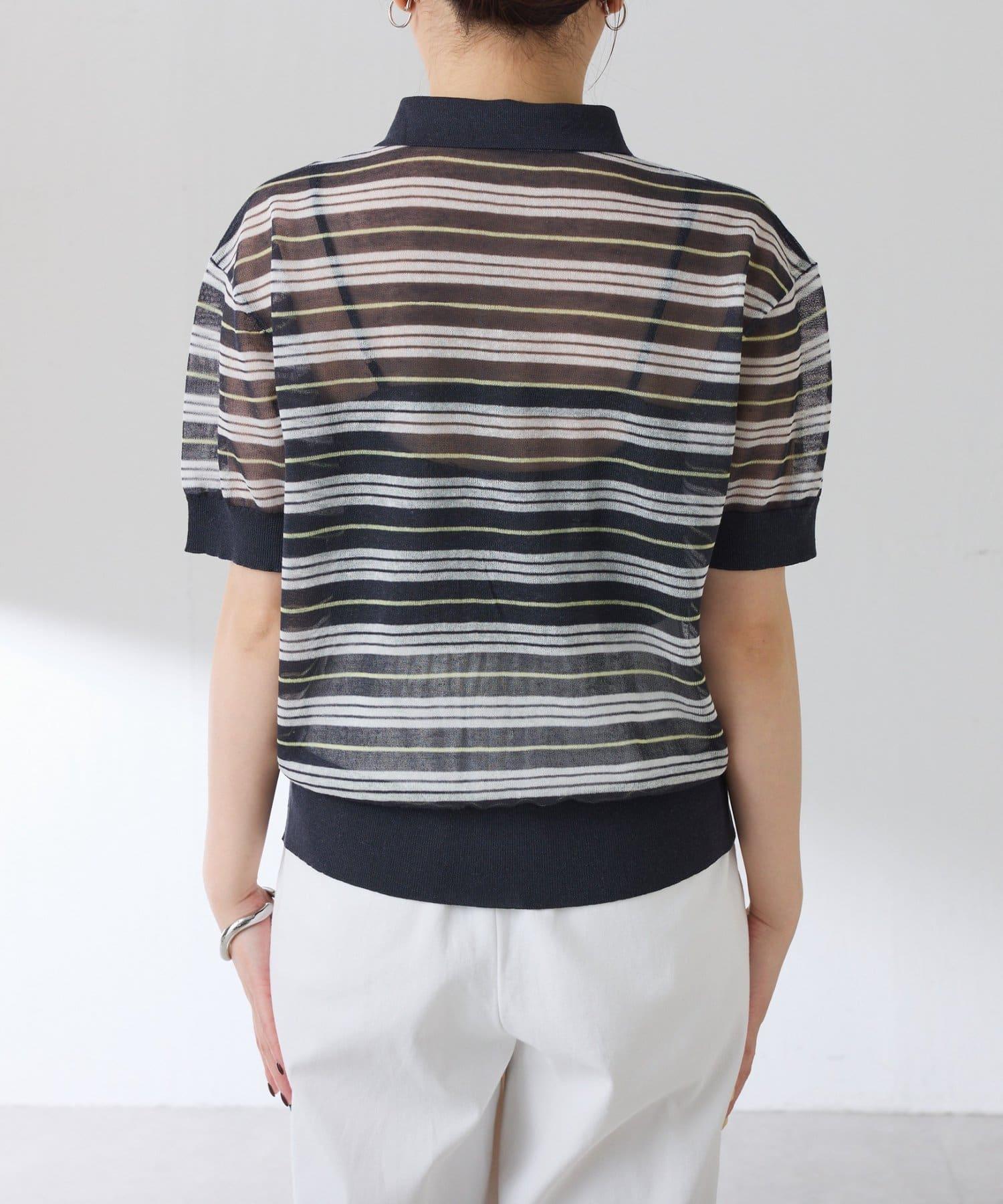 透紗條紋POLO領針織上衣