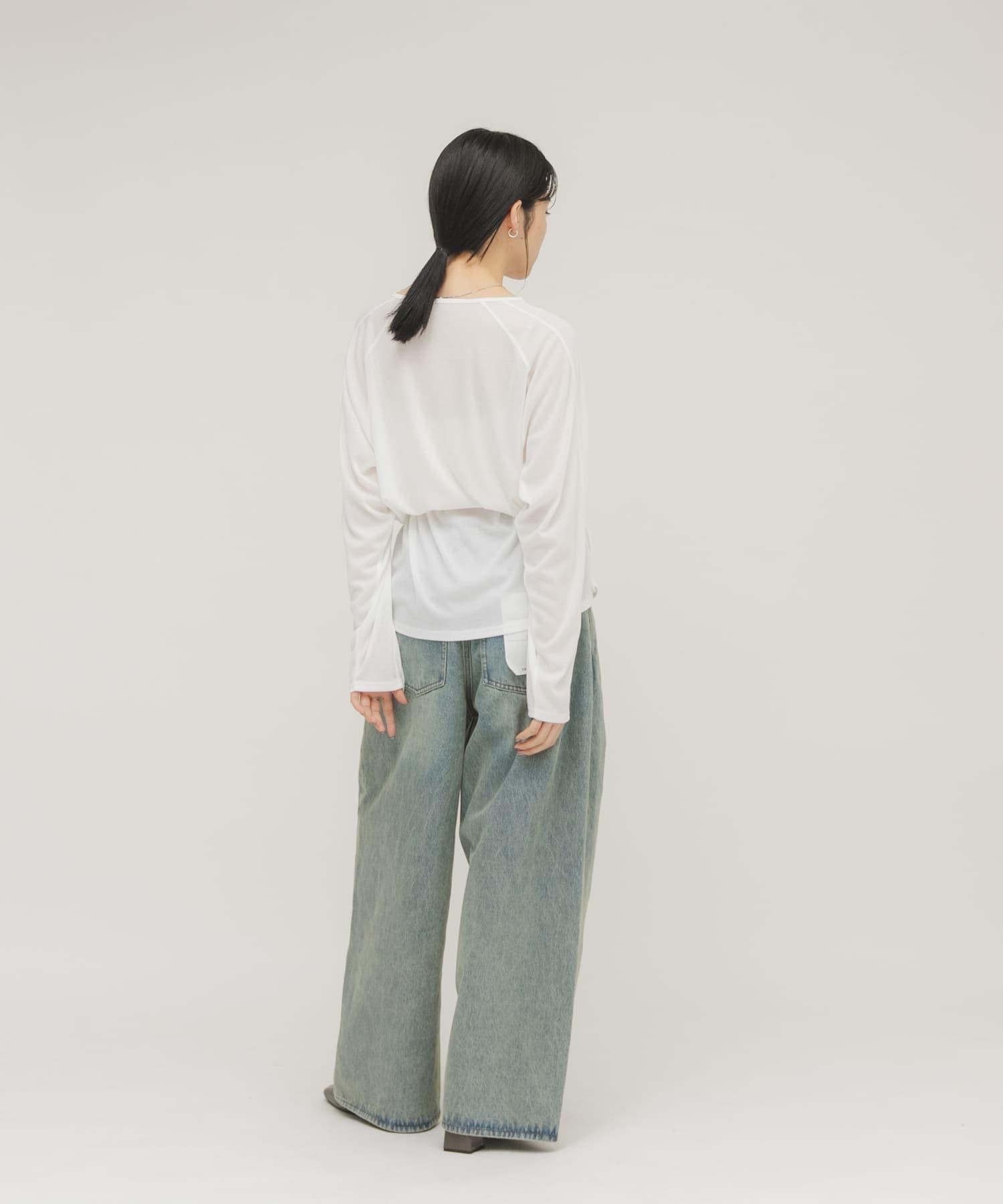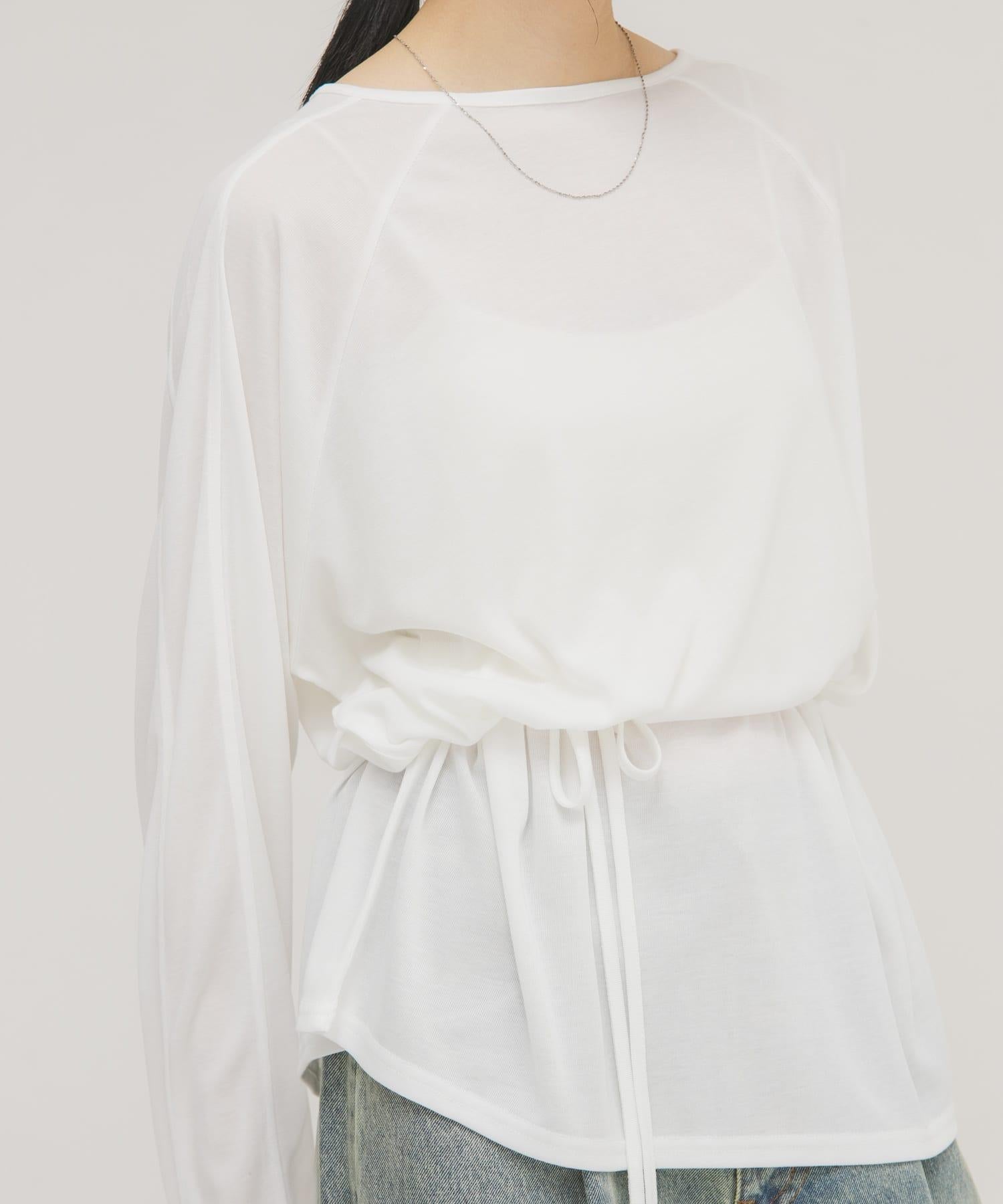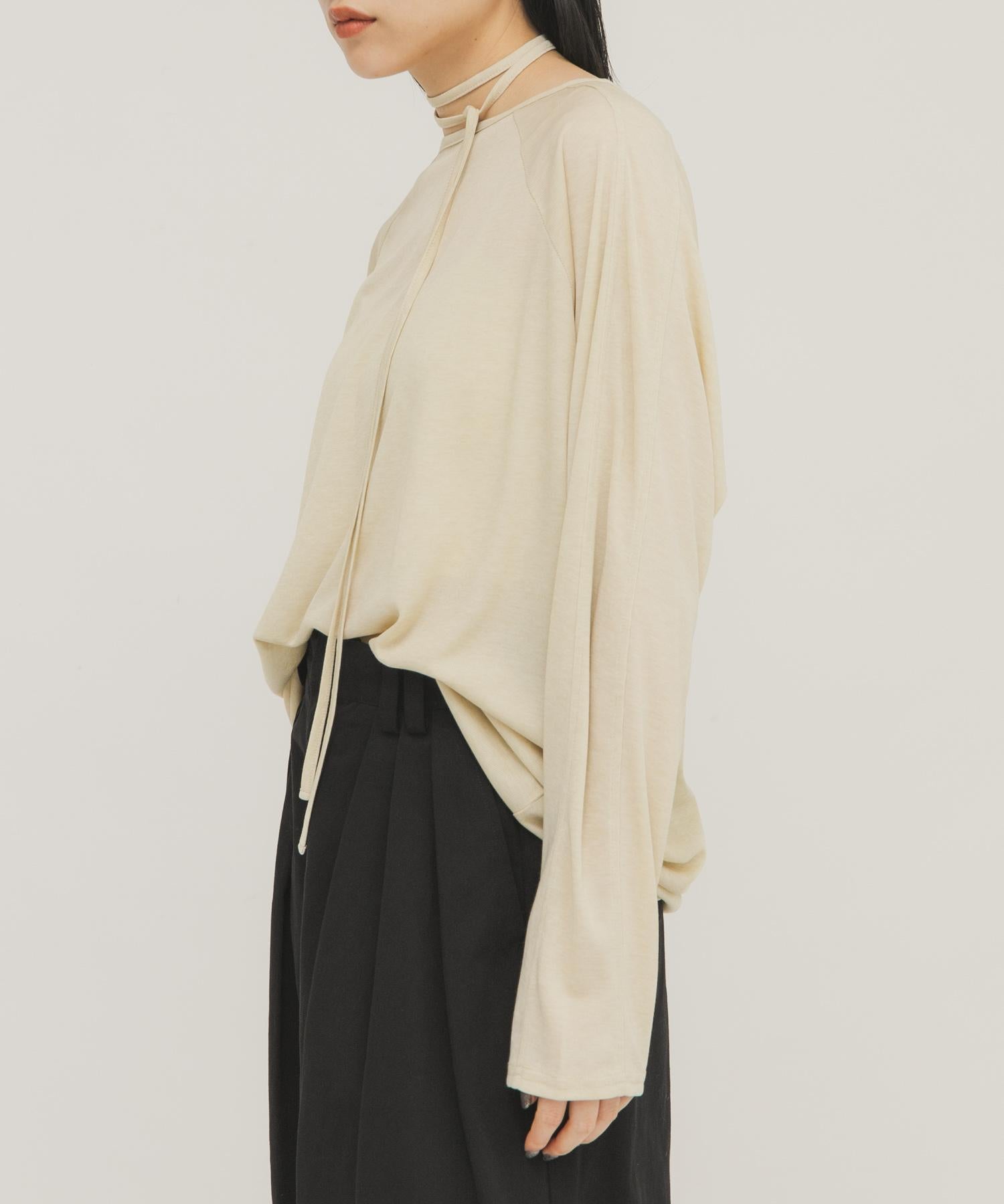 這款單品由一件透視剪接上衣和一組肩帶組成,透視剪接上衣採用輕盈怡人的面料製成。寬鬆的剪裁給人寬鬆的感覺,附帶的肩帶可以纏繞在腰間,也可以像choker一樣穿在身上。它很容易與各種下裝搭配。