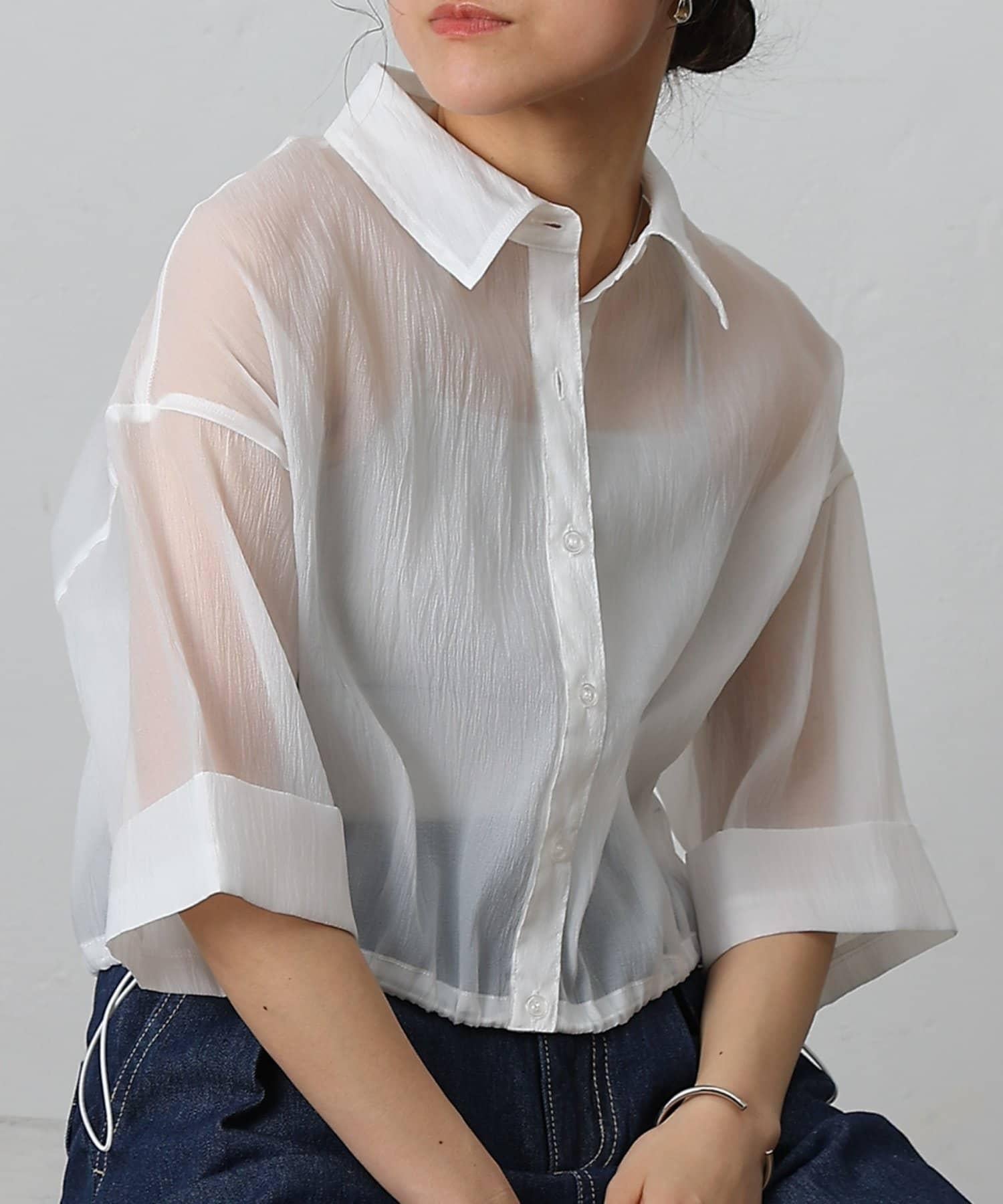 透視襯衫採用輕薄透視面料,具有微妙的清爽光澤。