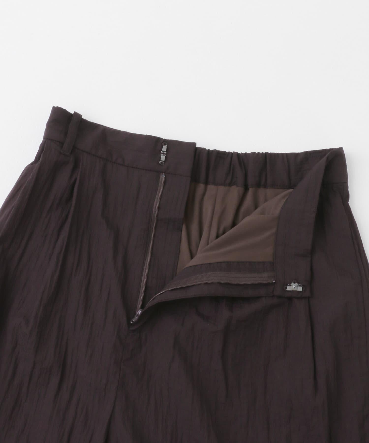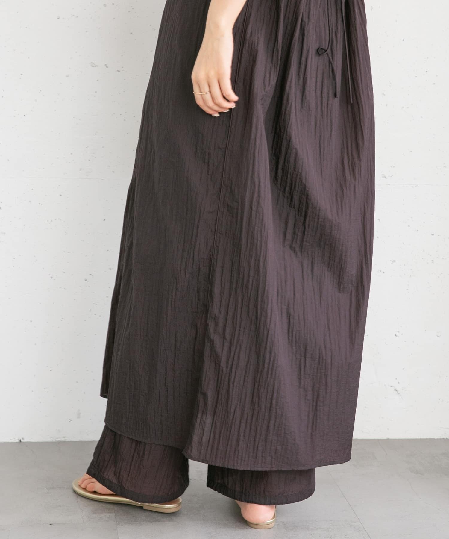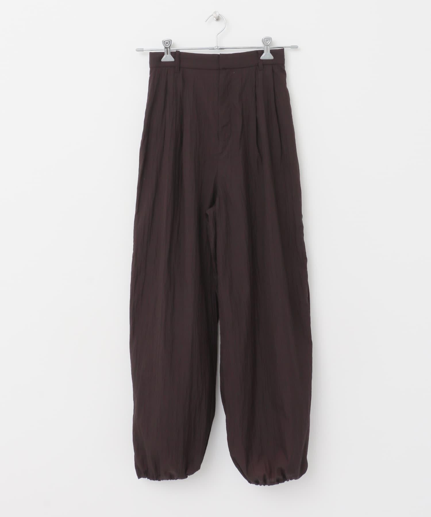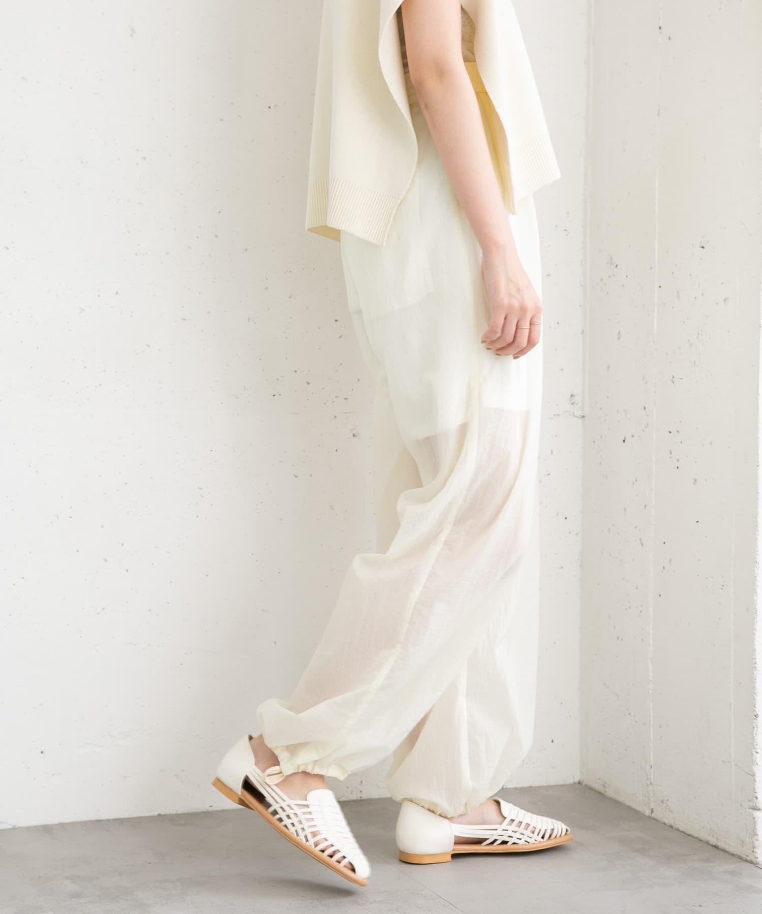 長褲採用具有表面觸感的透視面料。下襬處的抽繩可讓您改變輪廓。襯裡長度超過膝蓋,設計讓您盡享透明感。