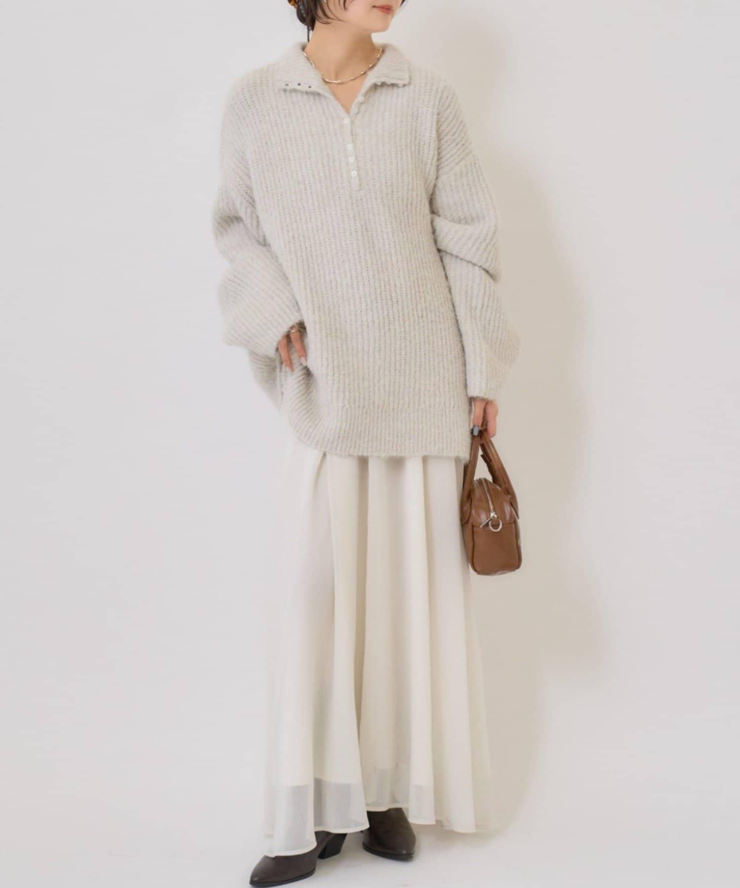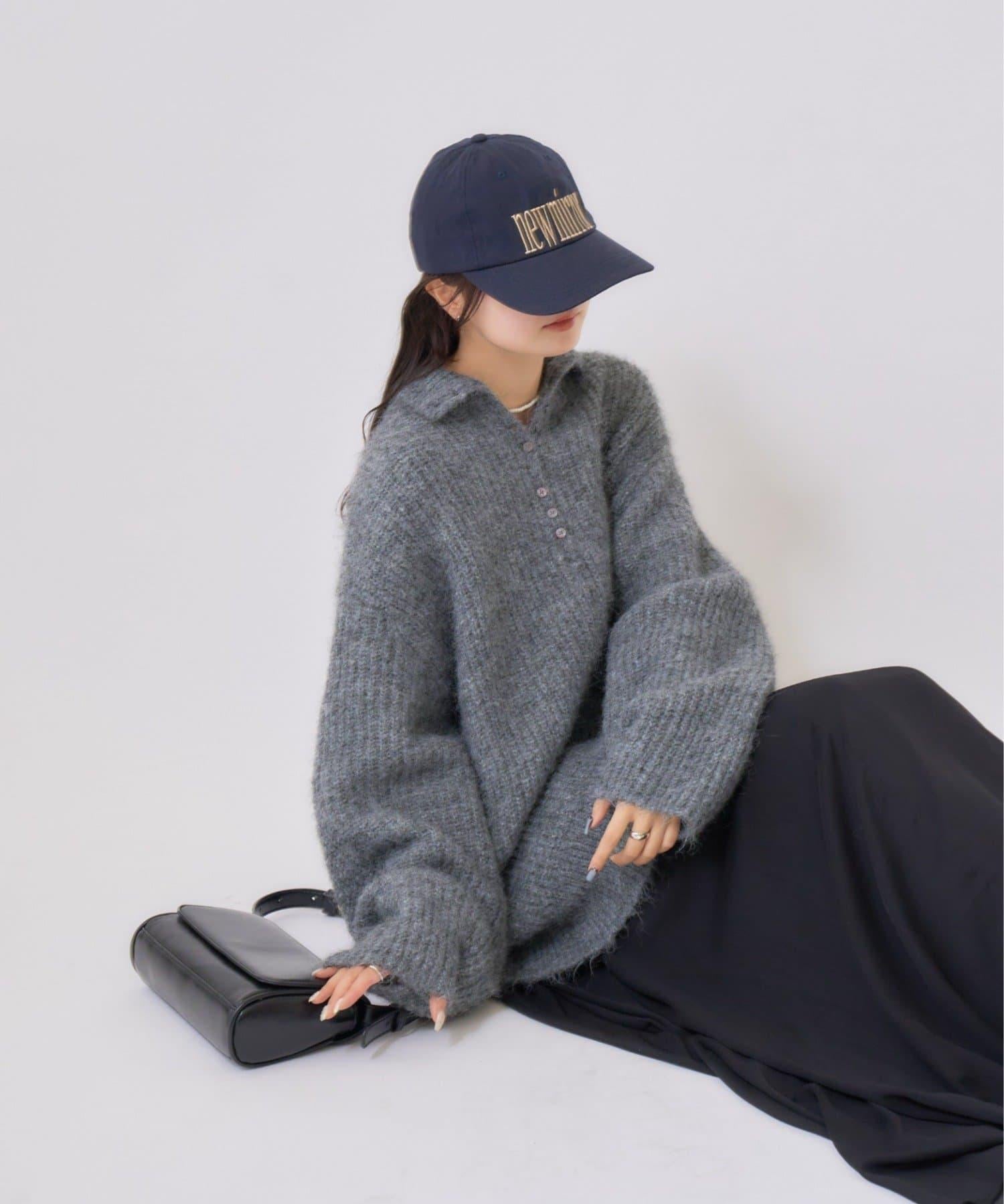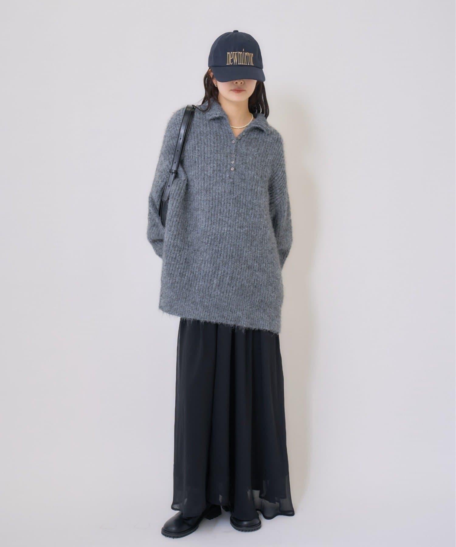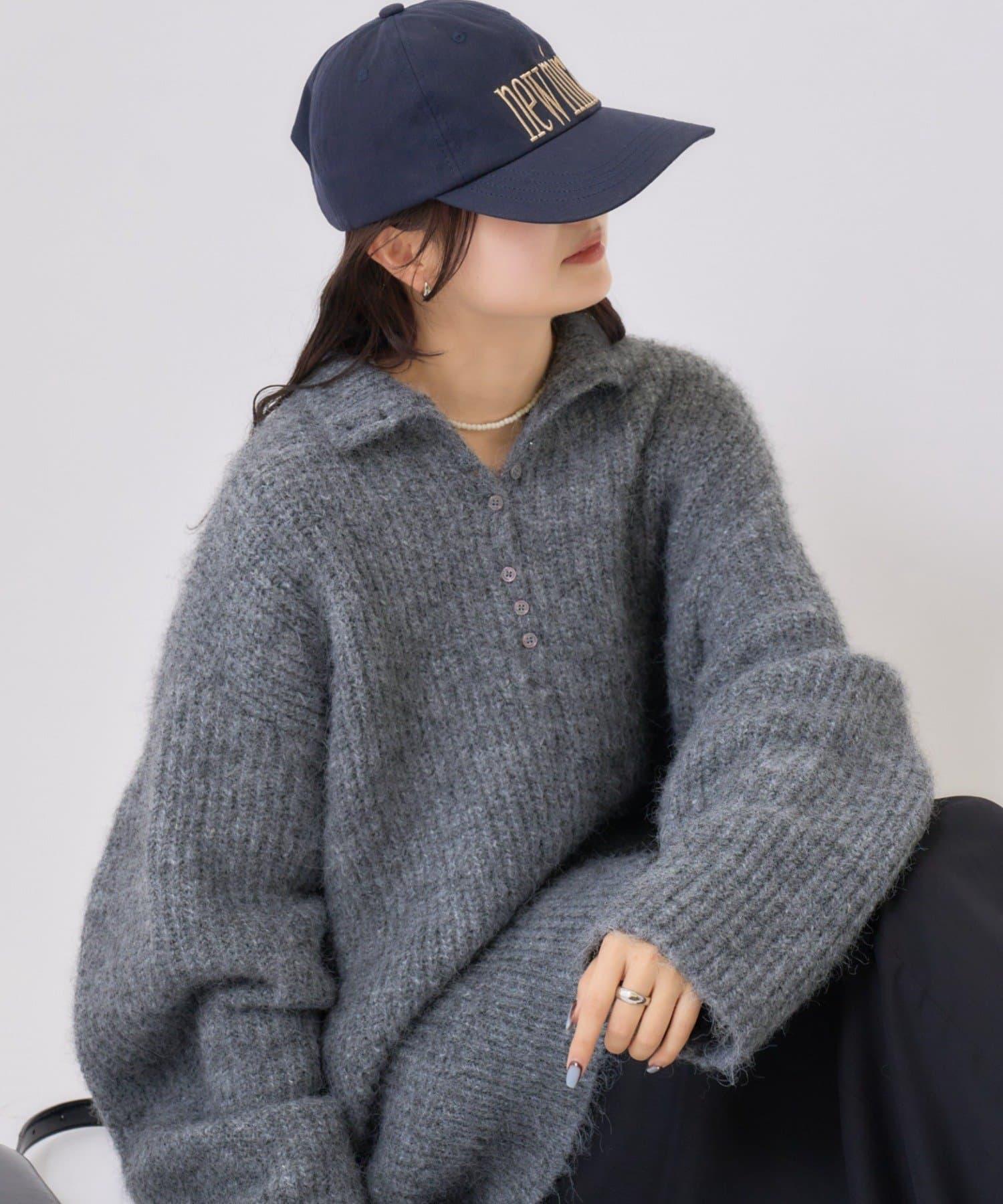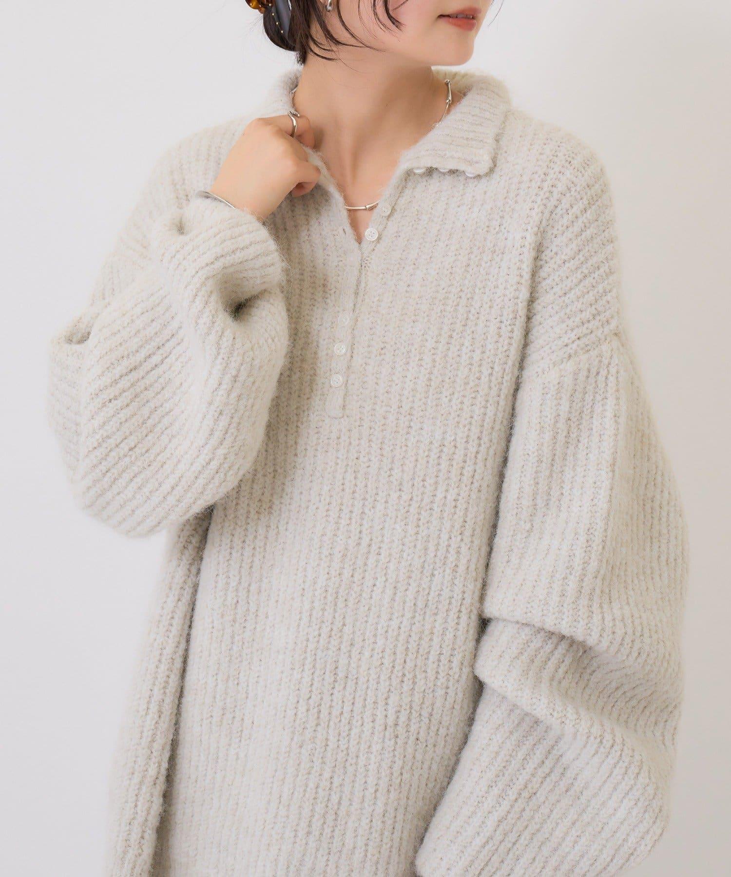 針織衫採用時髦的 polo 設計,前襟有紐扣裝飾。通過開合可以穿出不同的感覺。