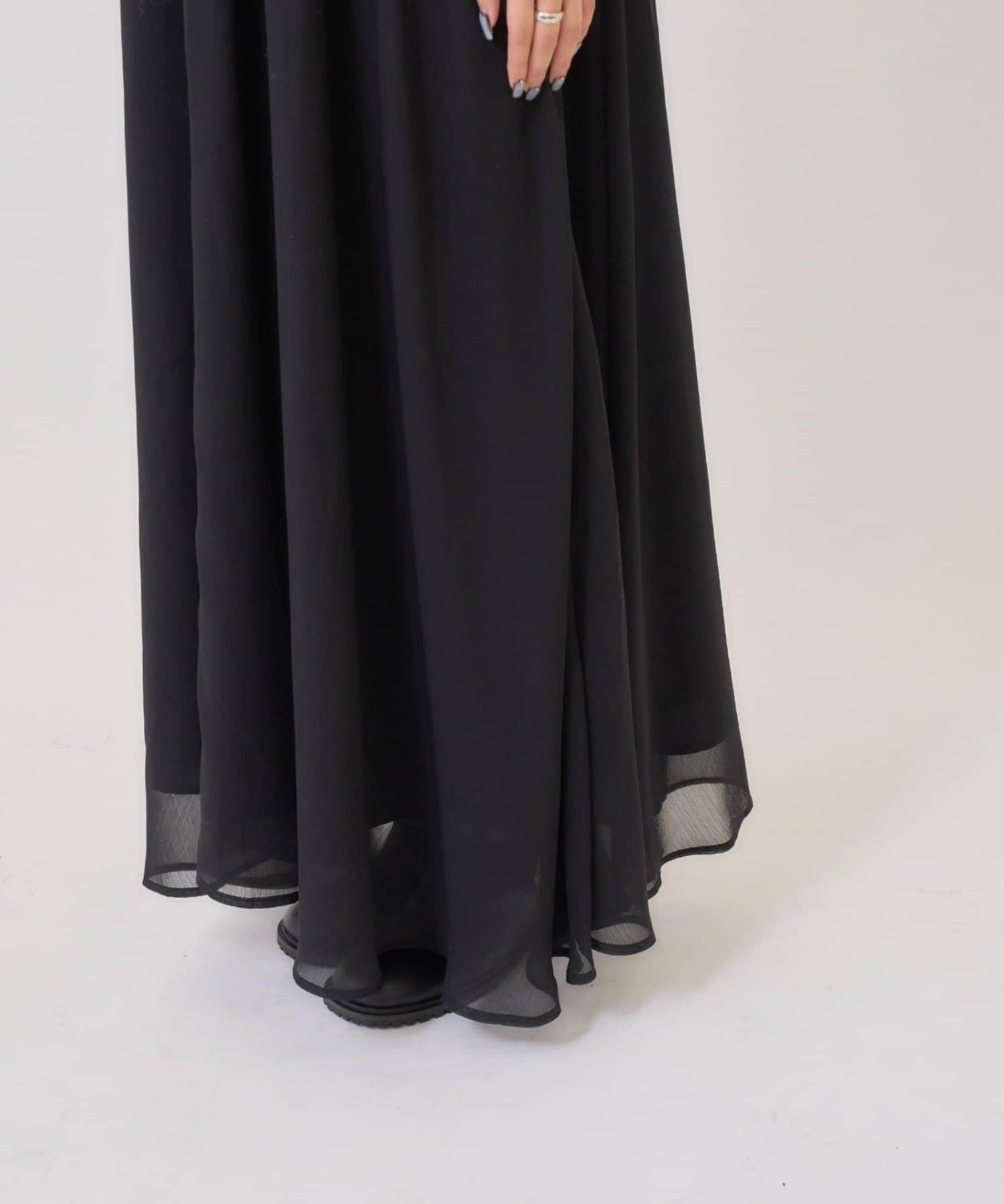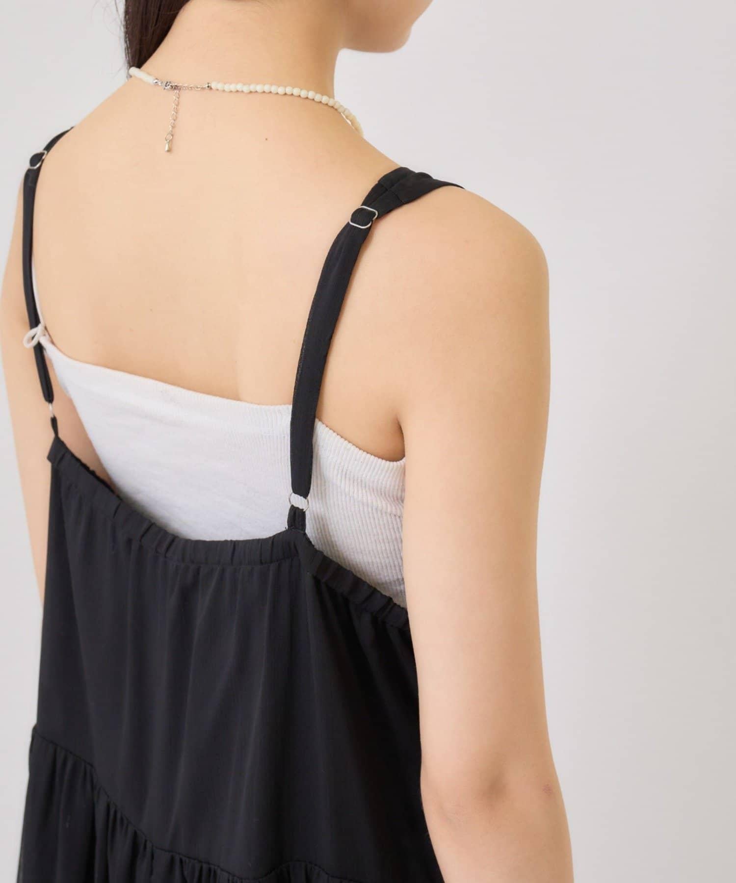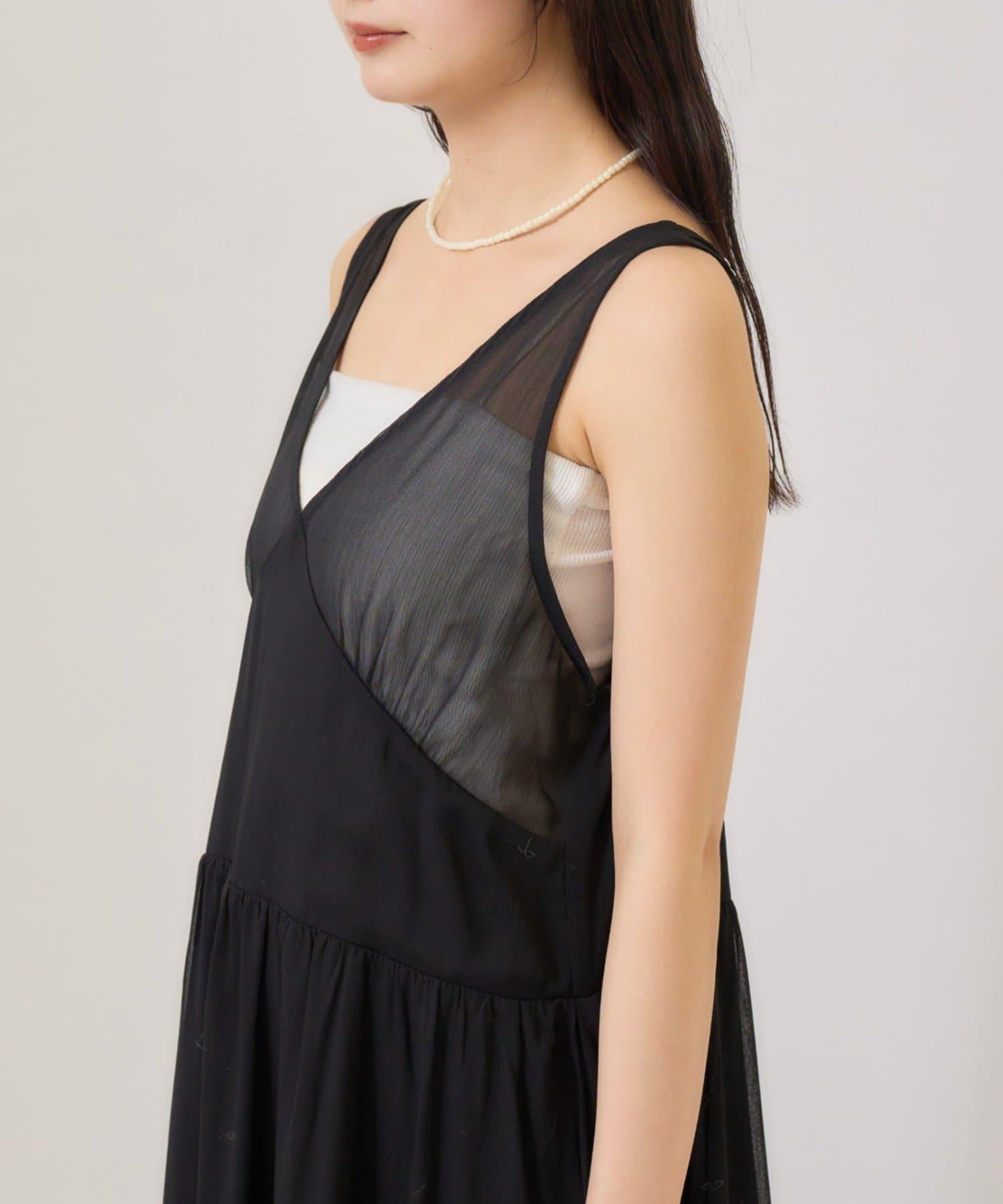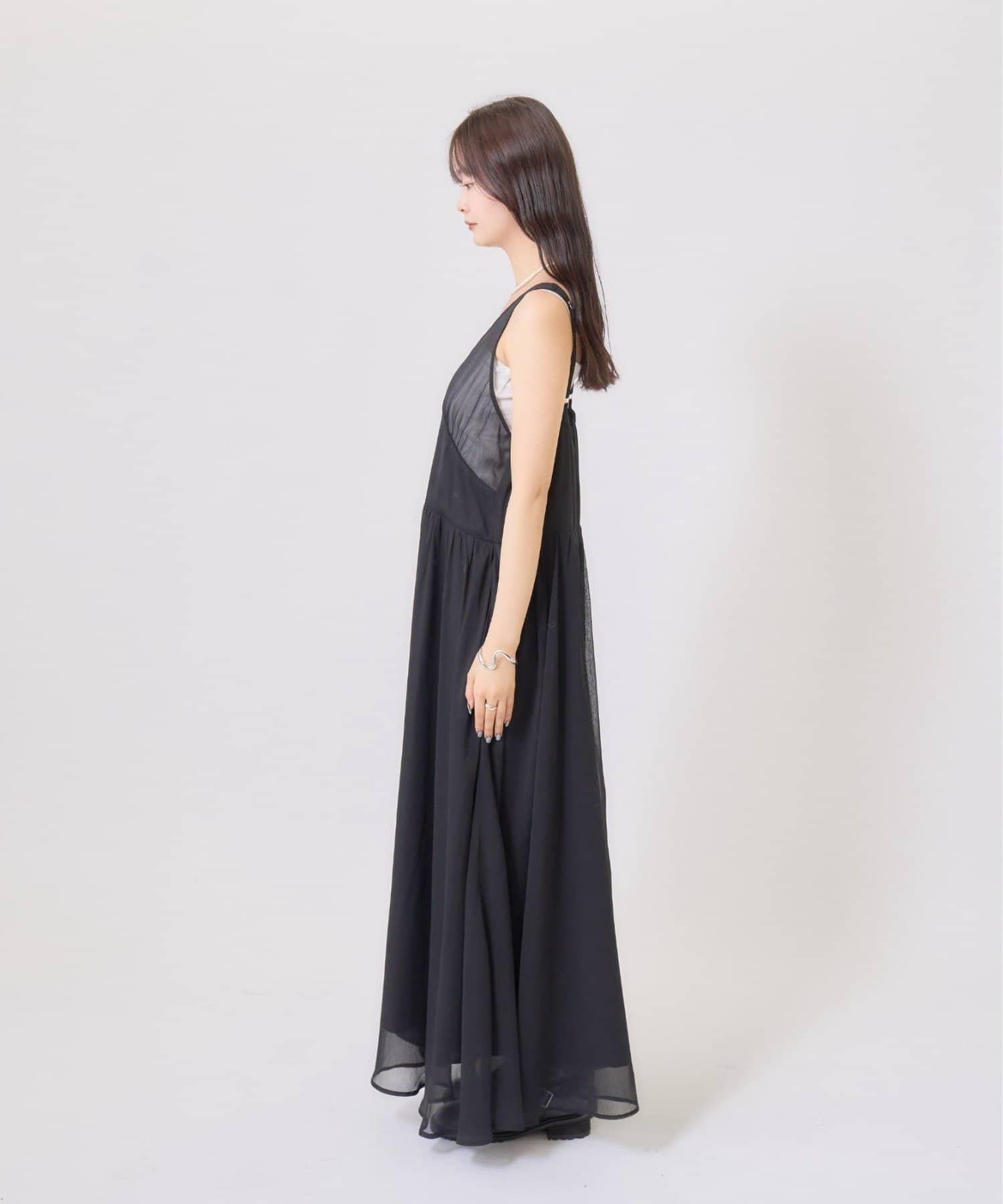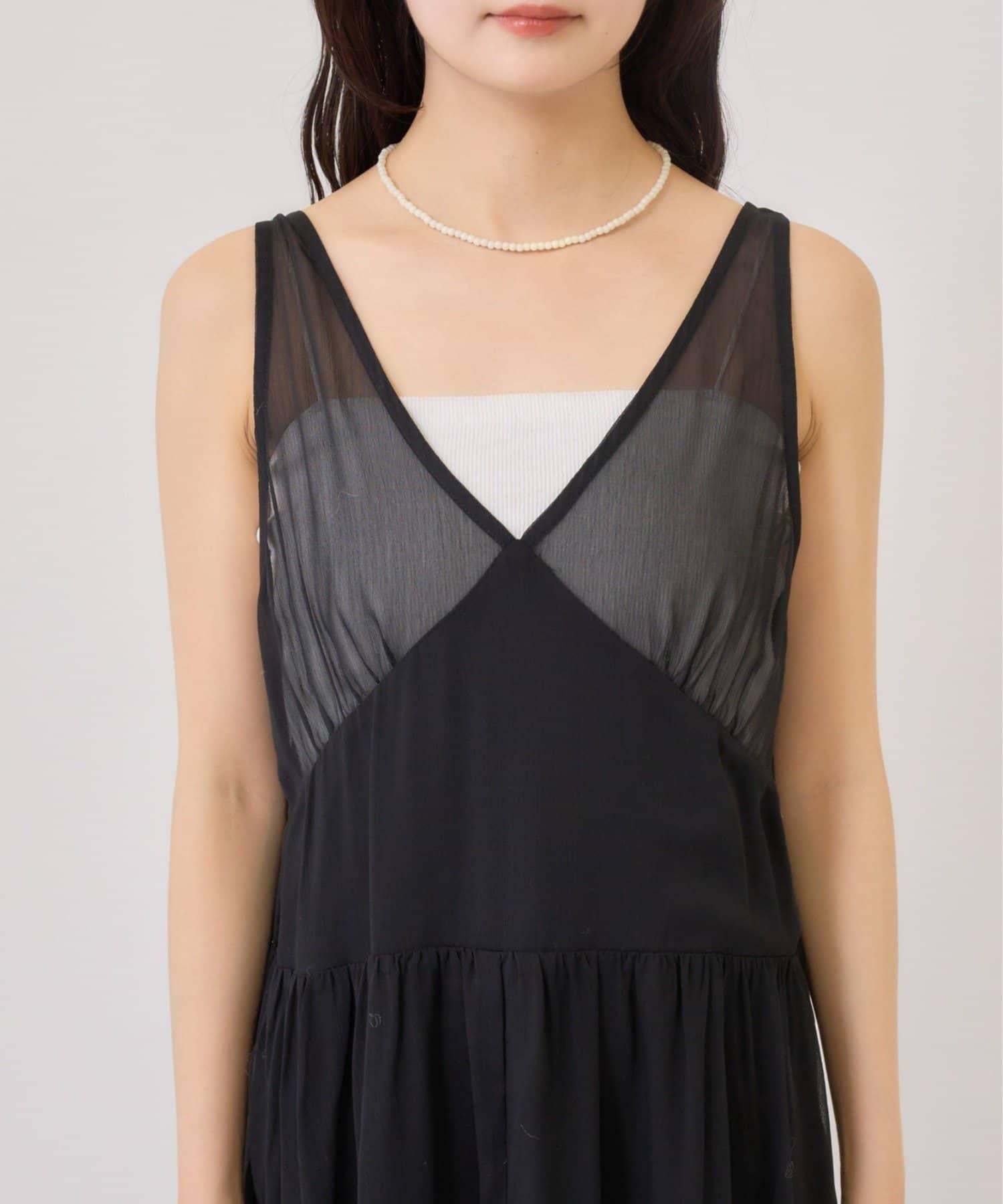 這款單品是一套輕盈蓬鬆的吊帶連衣裙,採用時下流行的透視面料和耐磨性極佳的針織面料。