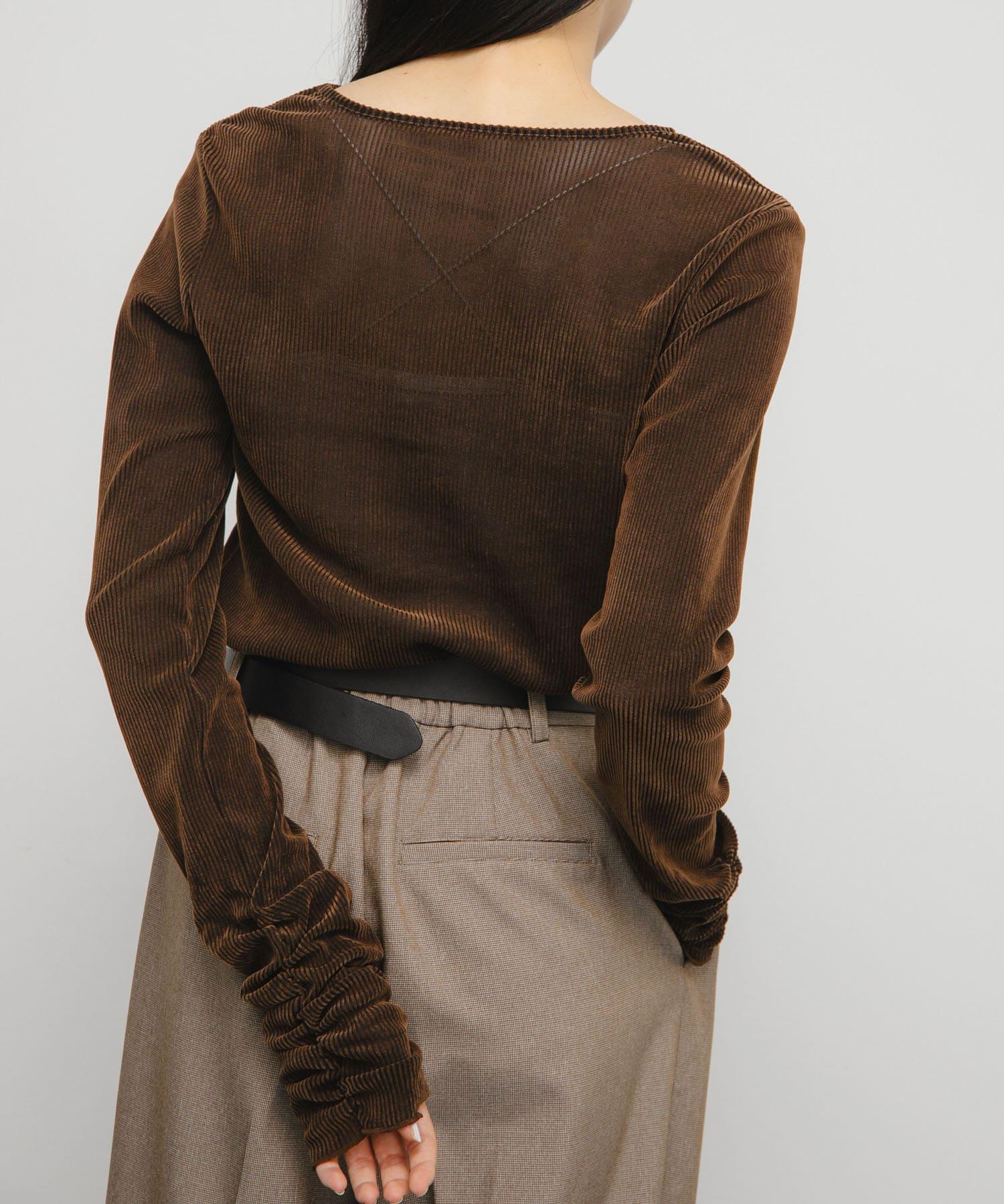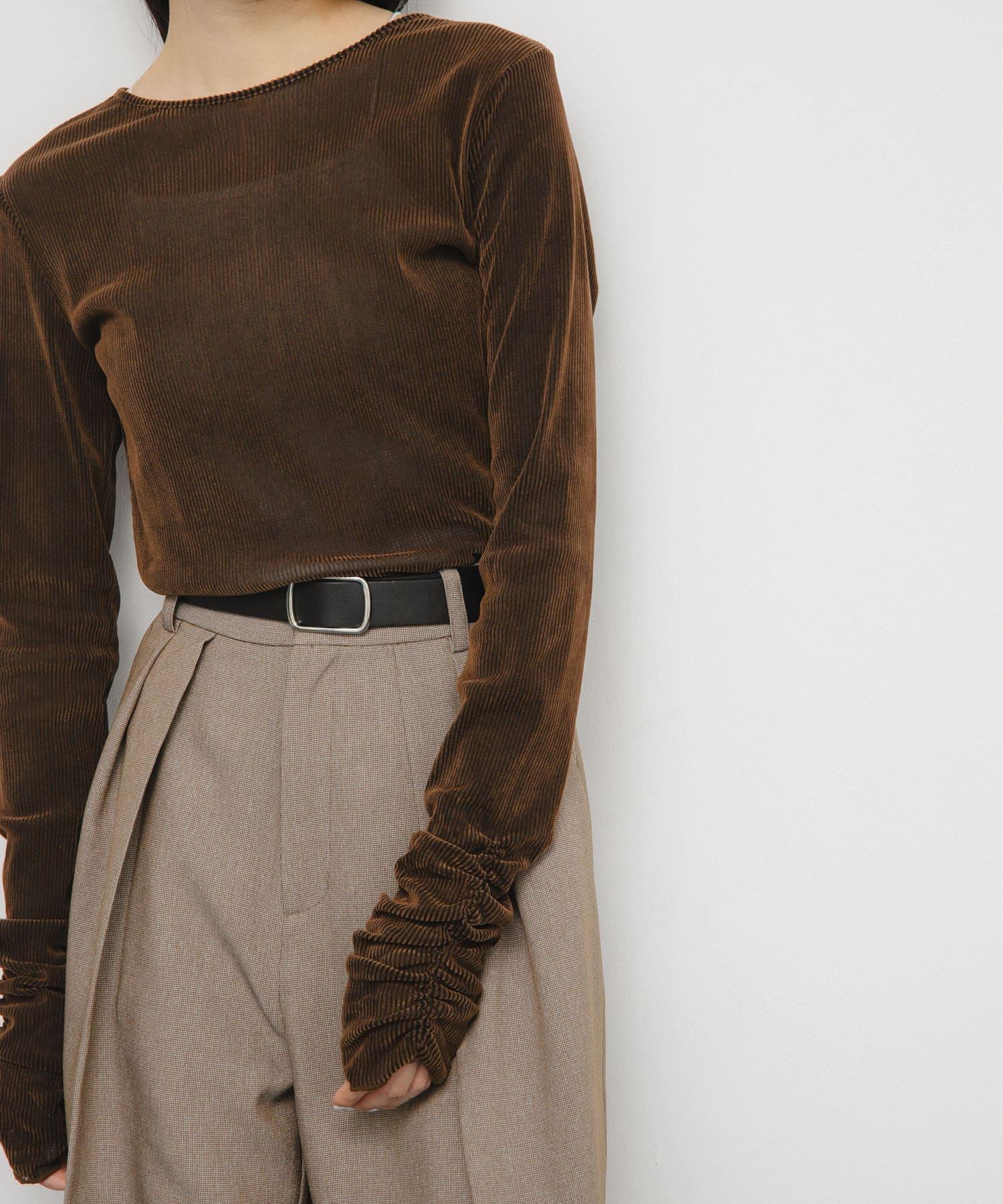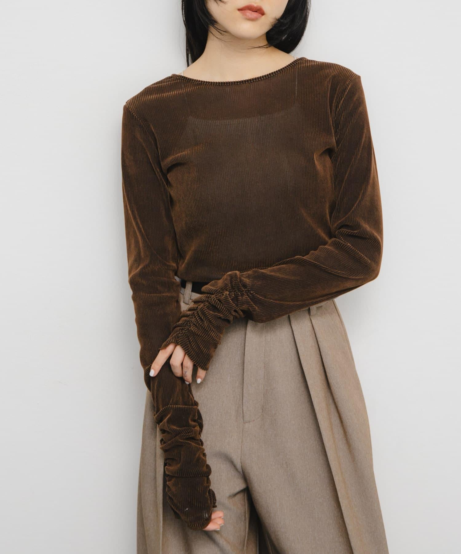 這款天鵝絨上衣袖口處的碎花是一大亮點。它是經典秋冬造型的完美選擇,採用豎線羅紋面料製成,給人一種乾淨利落的感覺。這款單品不僅可以作為主衣,還可以作為連身裙和連衣裙的內搭。