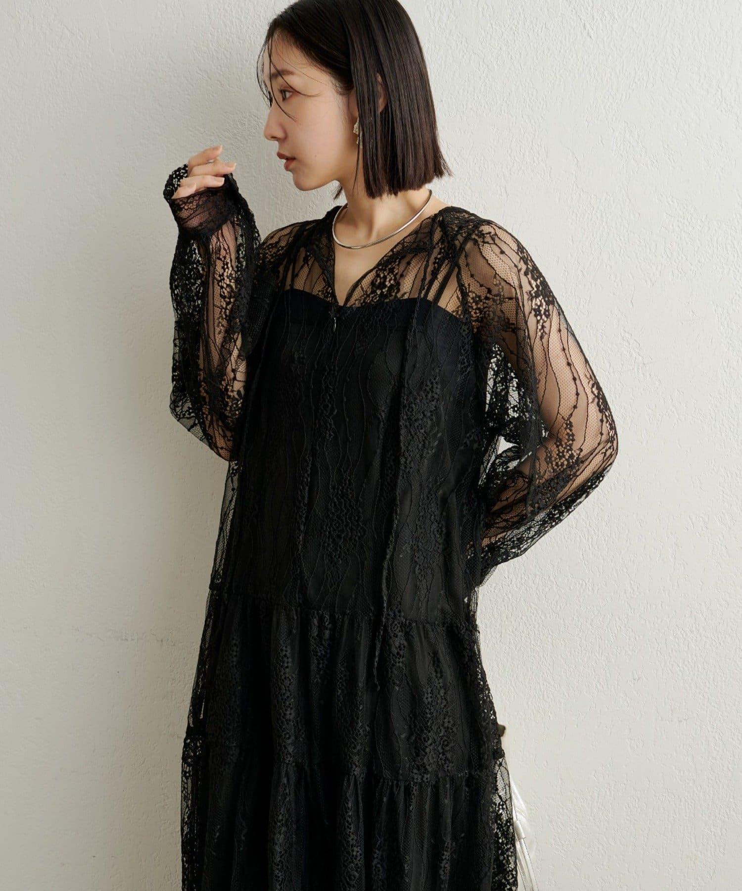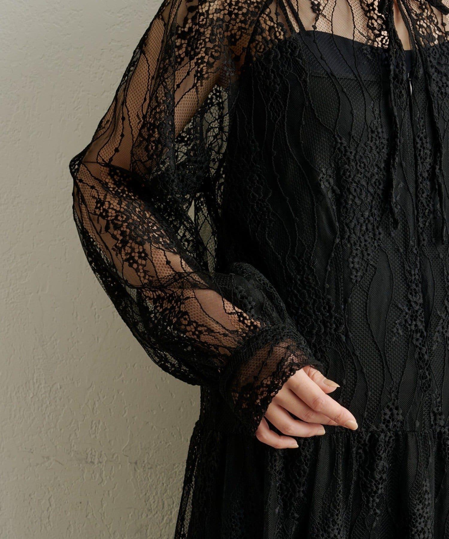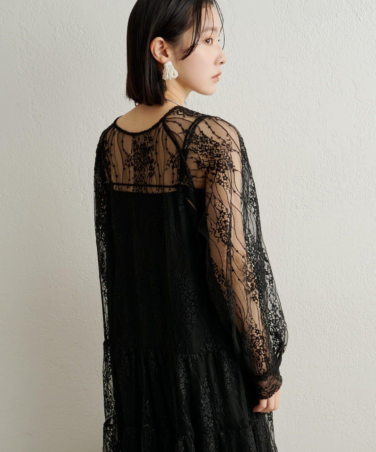 層層疊疊的透視連衣裙,採用女性化的全蕾絲設計。