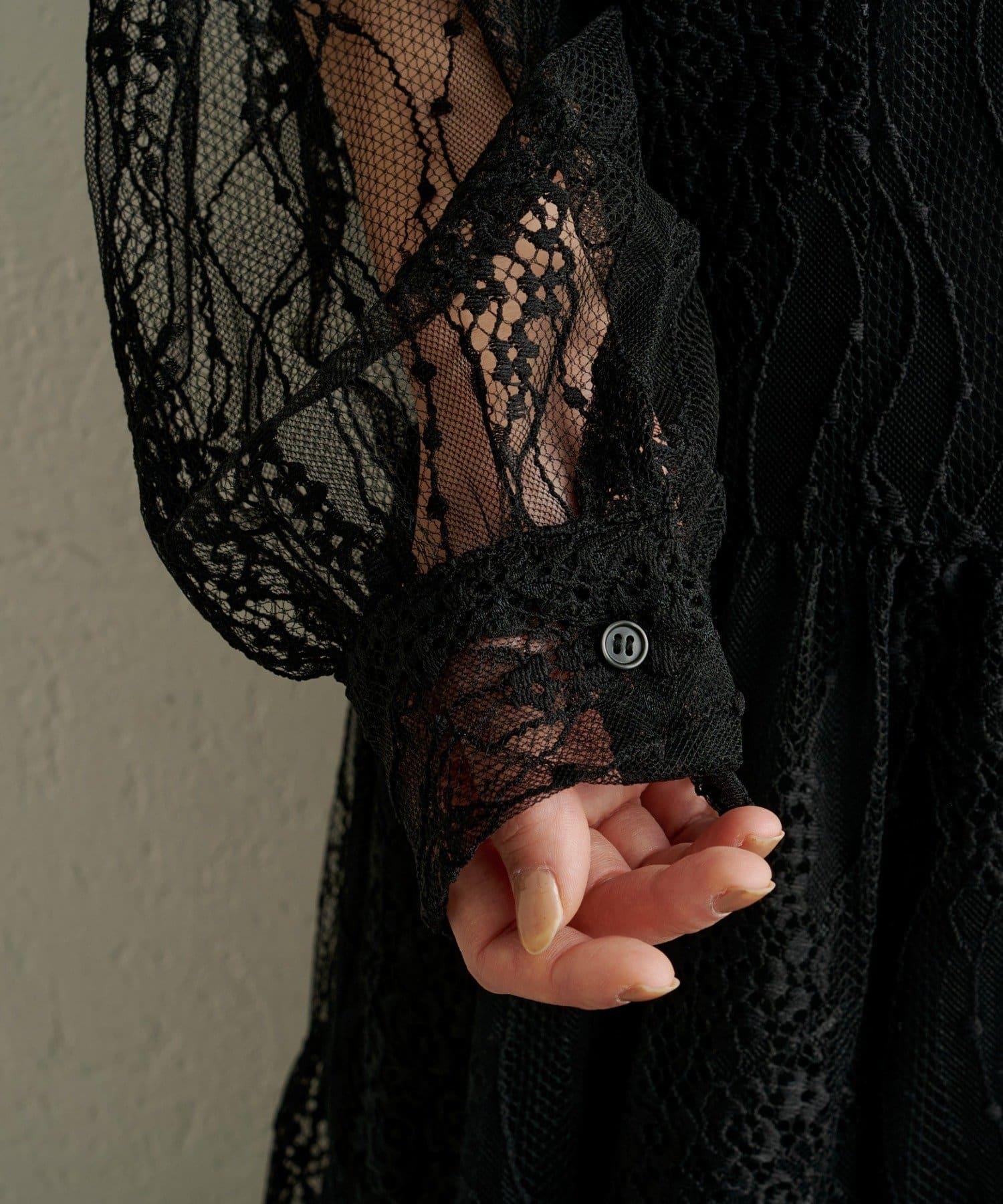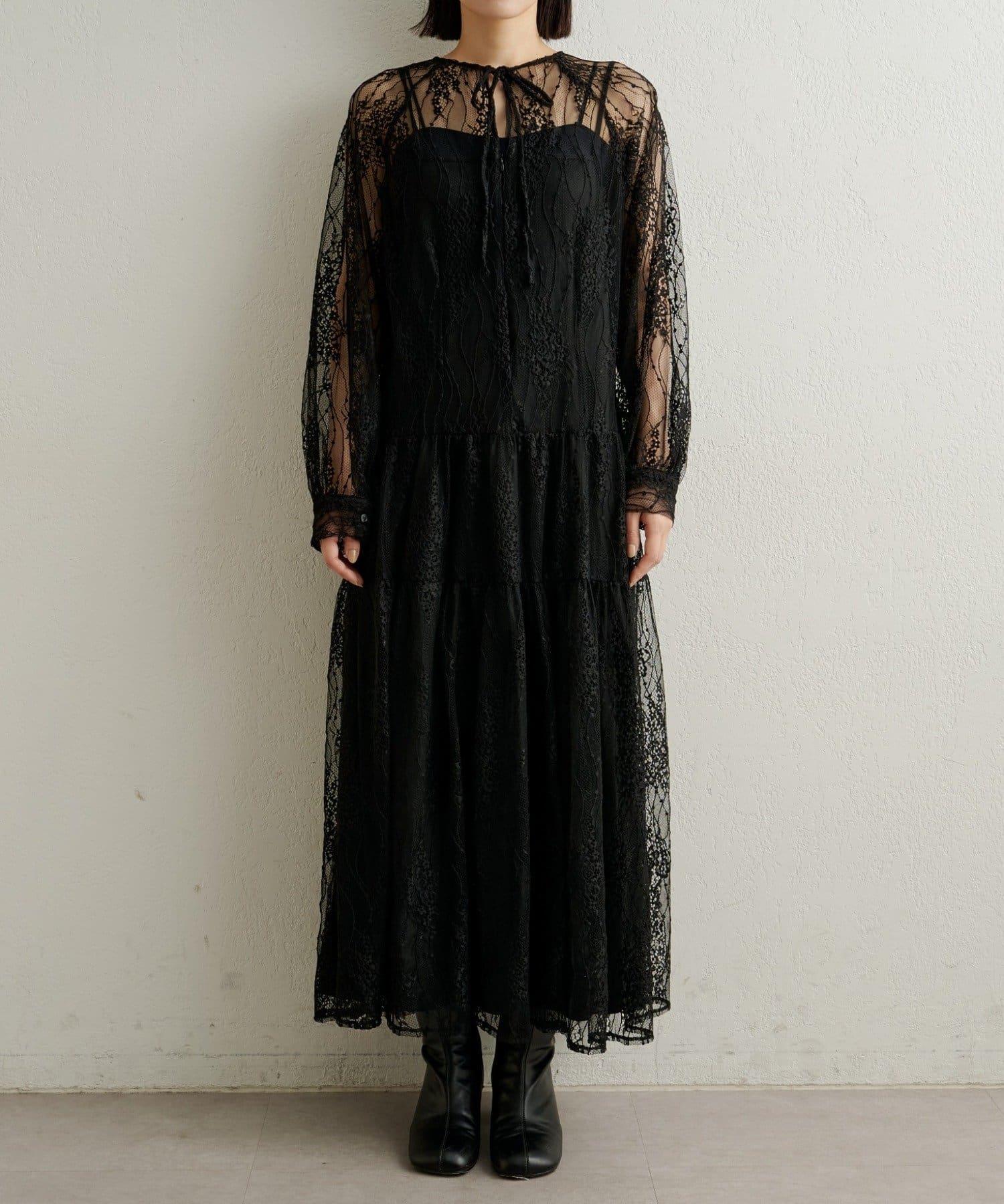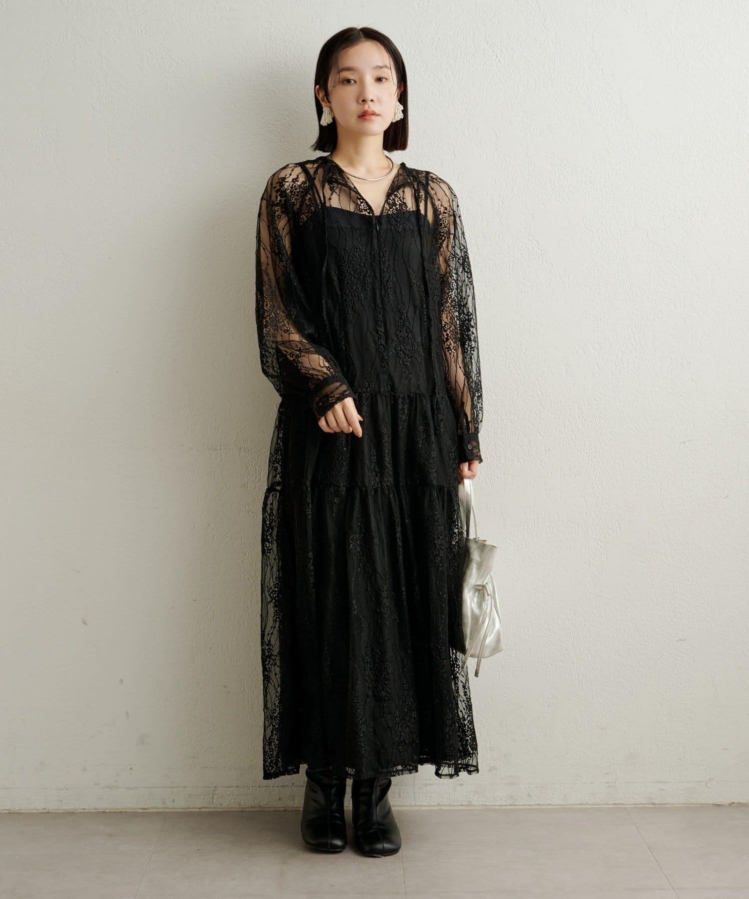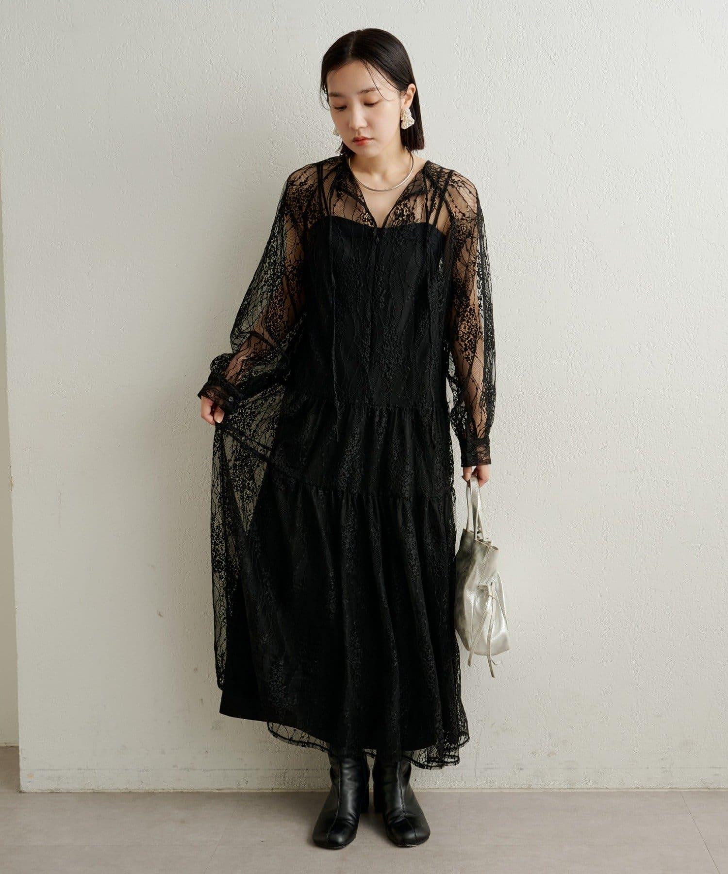 層層疊疊的透視連衣裙,採用女性化的全蕾絲設計。